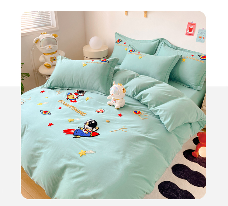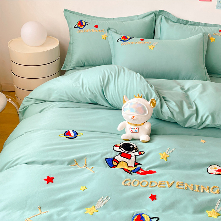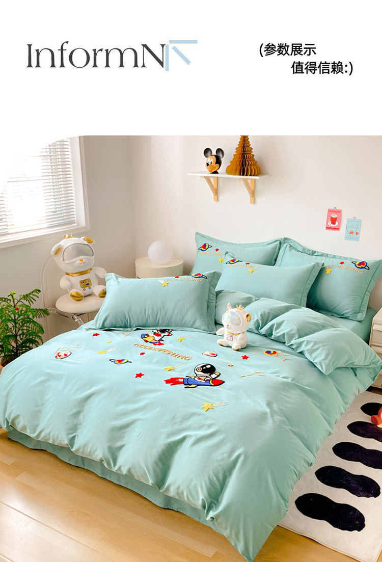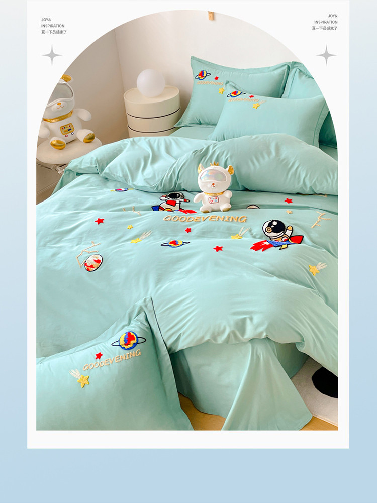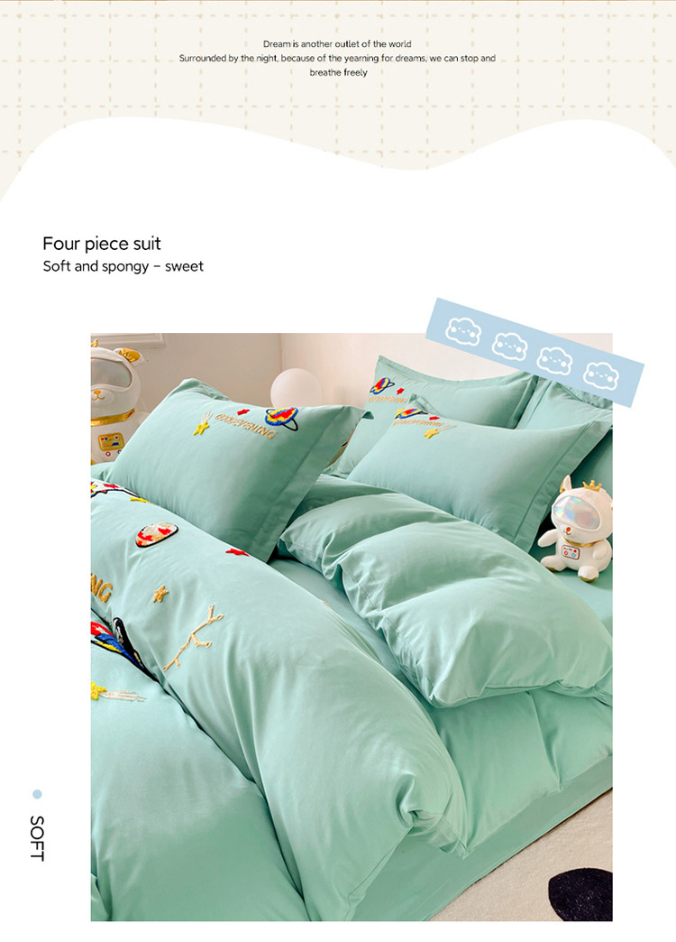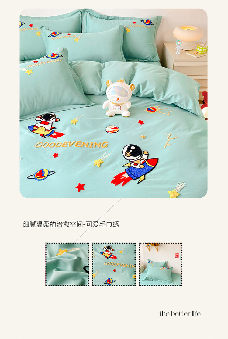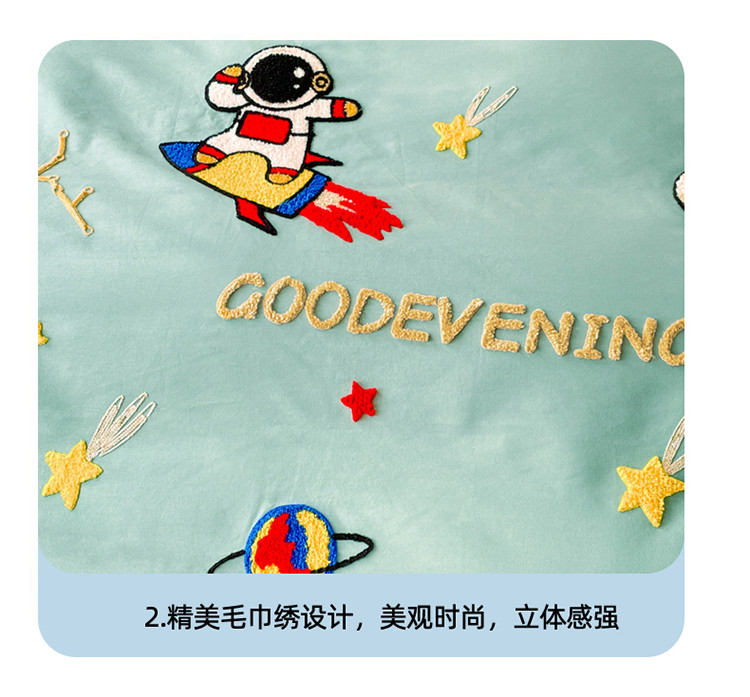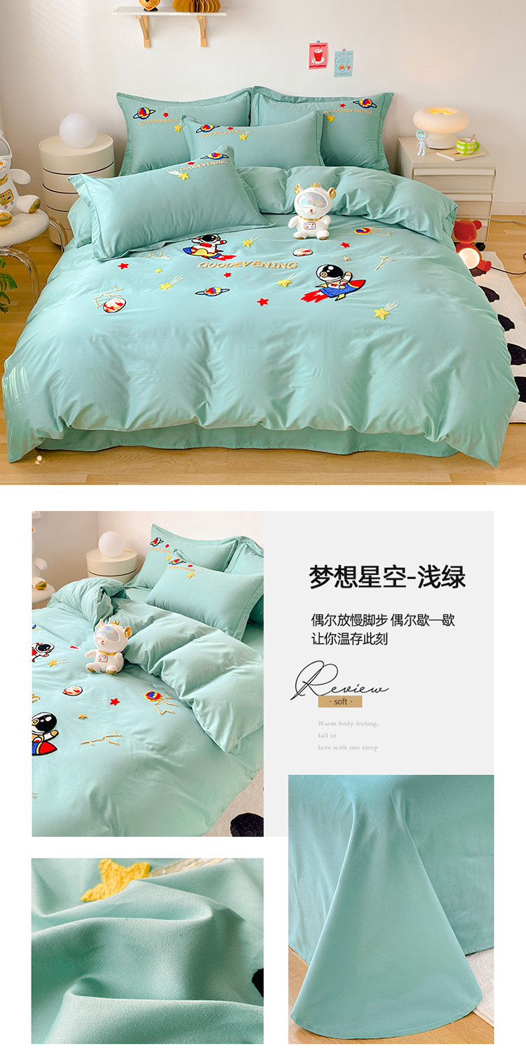 商品名称:金窝窝家纺2024新款活性精品纯棉毛巾绣四件套-梦想星空 梦想星空-浅绿