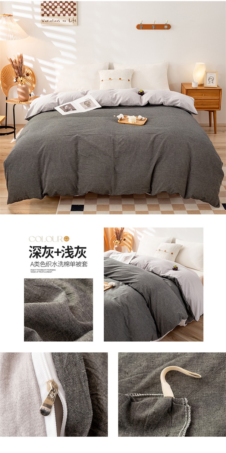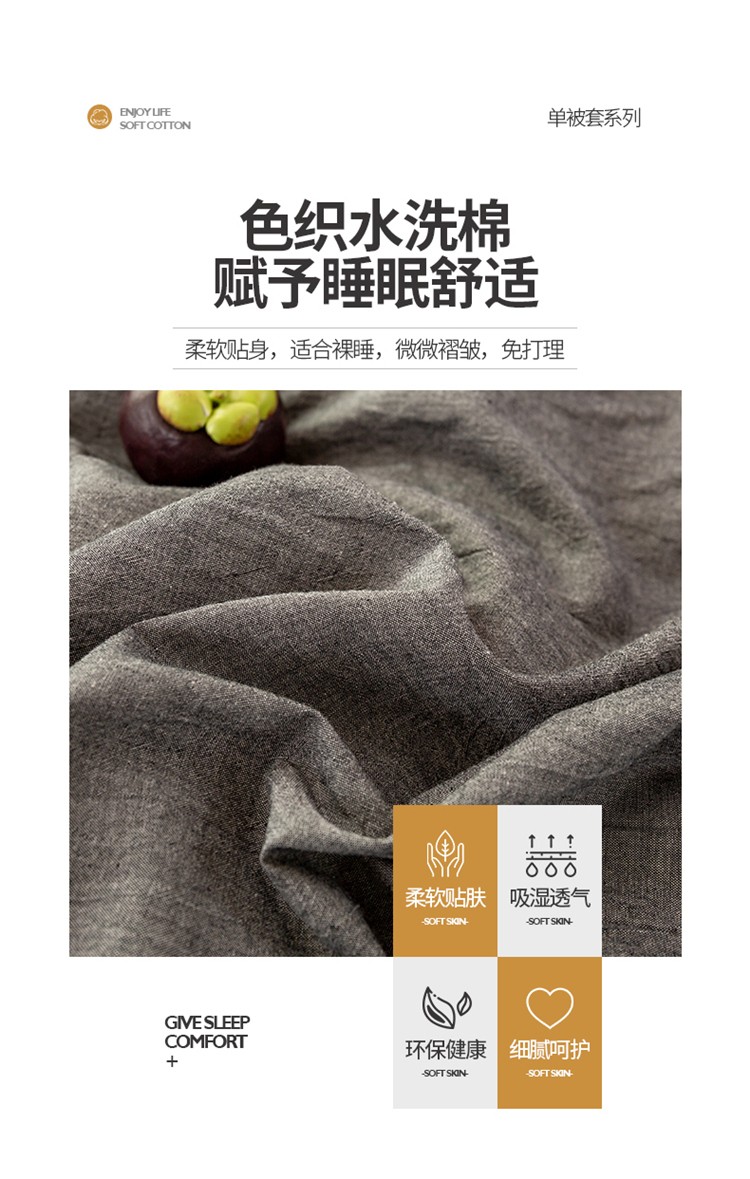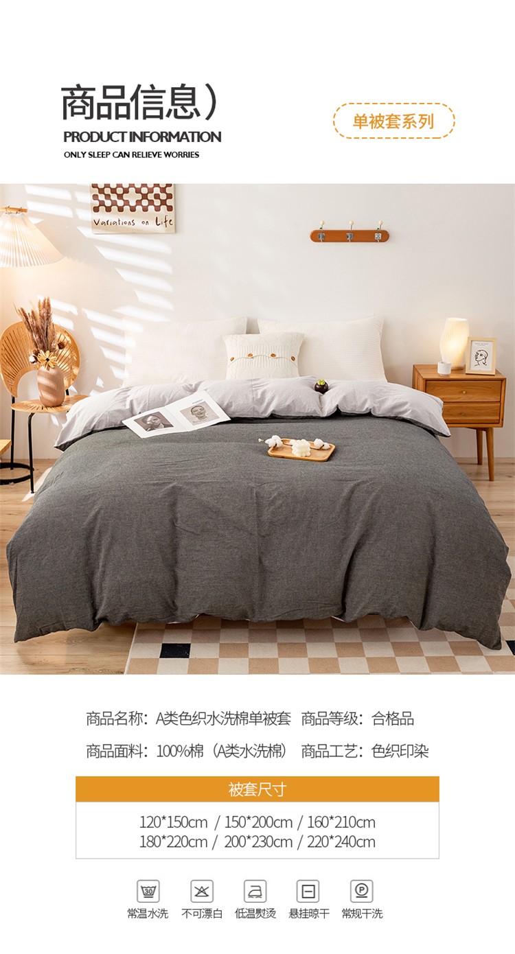 商品名称:九沐良品 新款A类色织水洗棉四件套单被套 深灰+浅灰