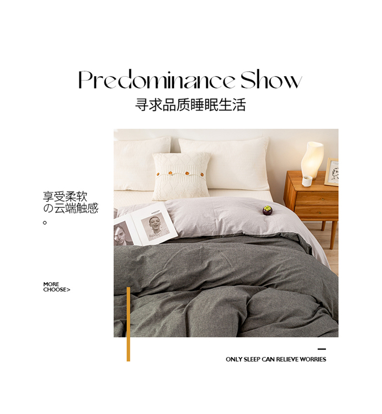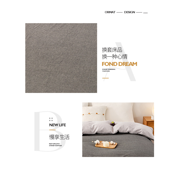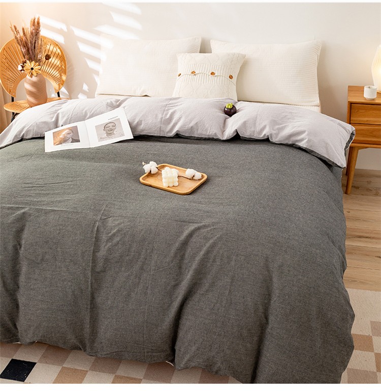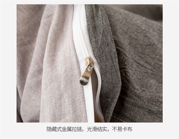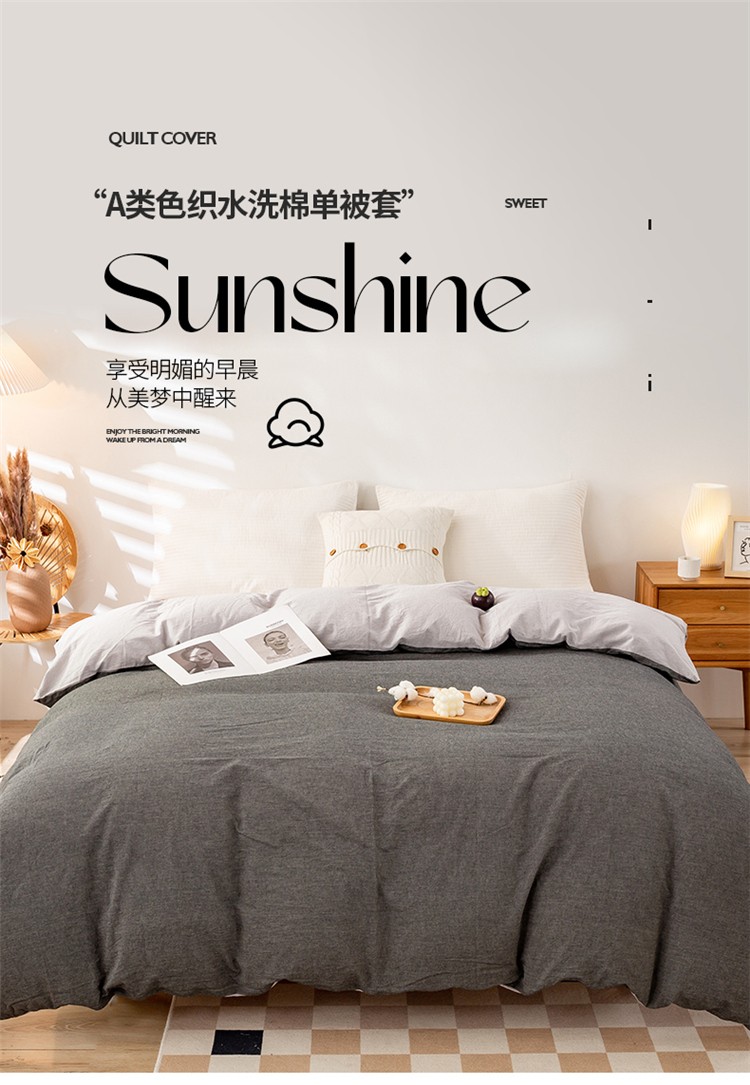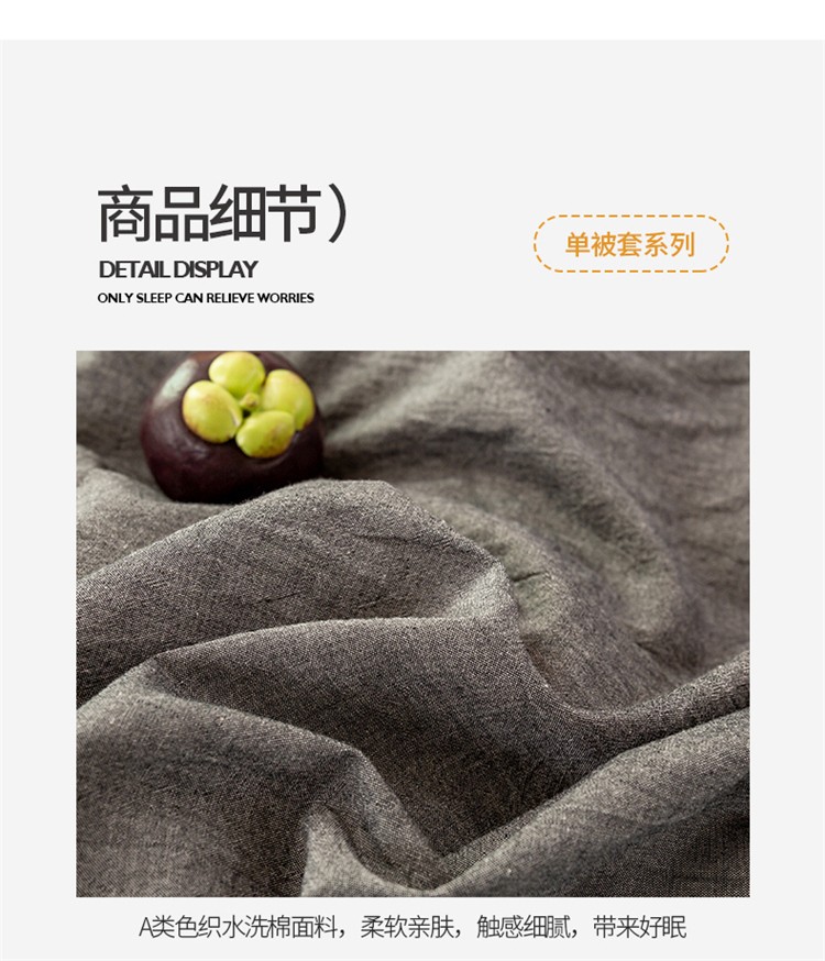 商品名称:九沐良品 新款A类色织水洗棉四件套单被套 深灰+浅灰