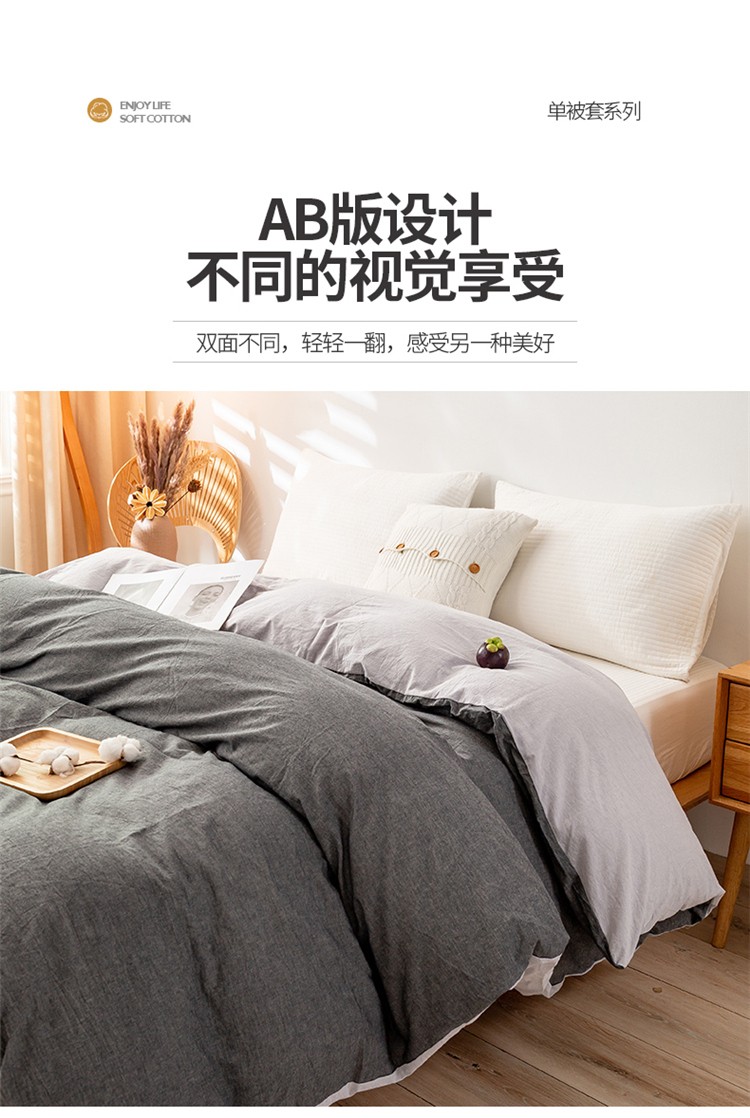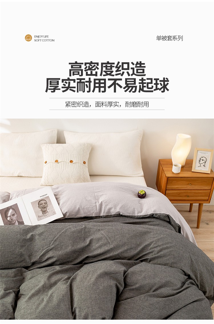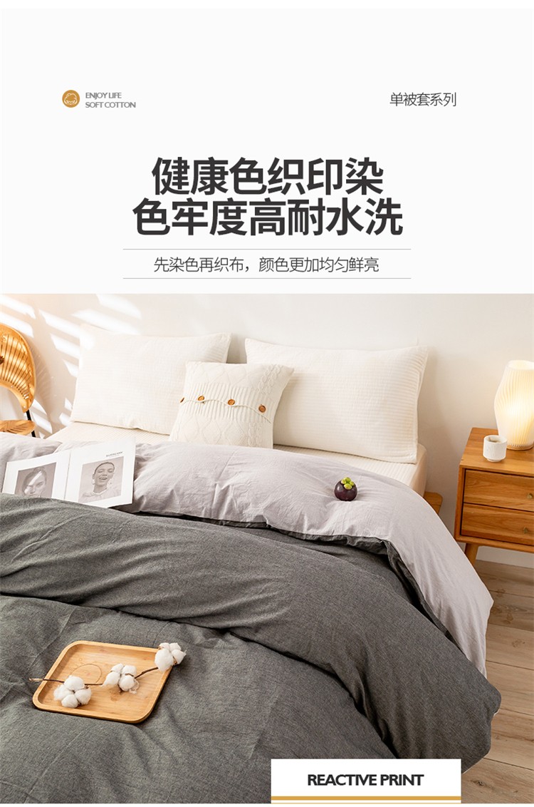 九沐良品 新款A类色织水洗棉四件套单被套 深灰+浅灰