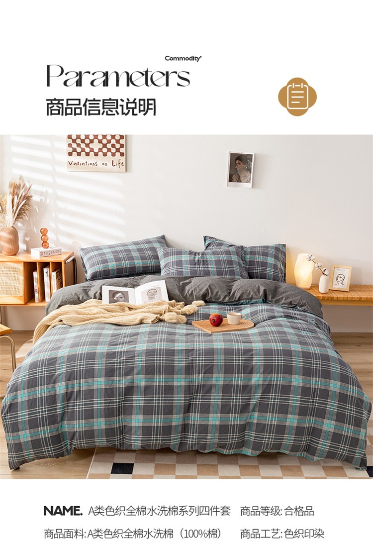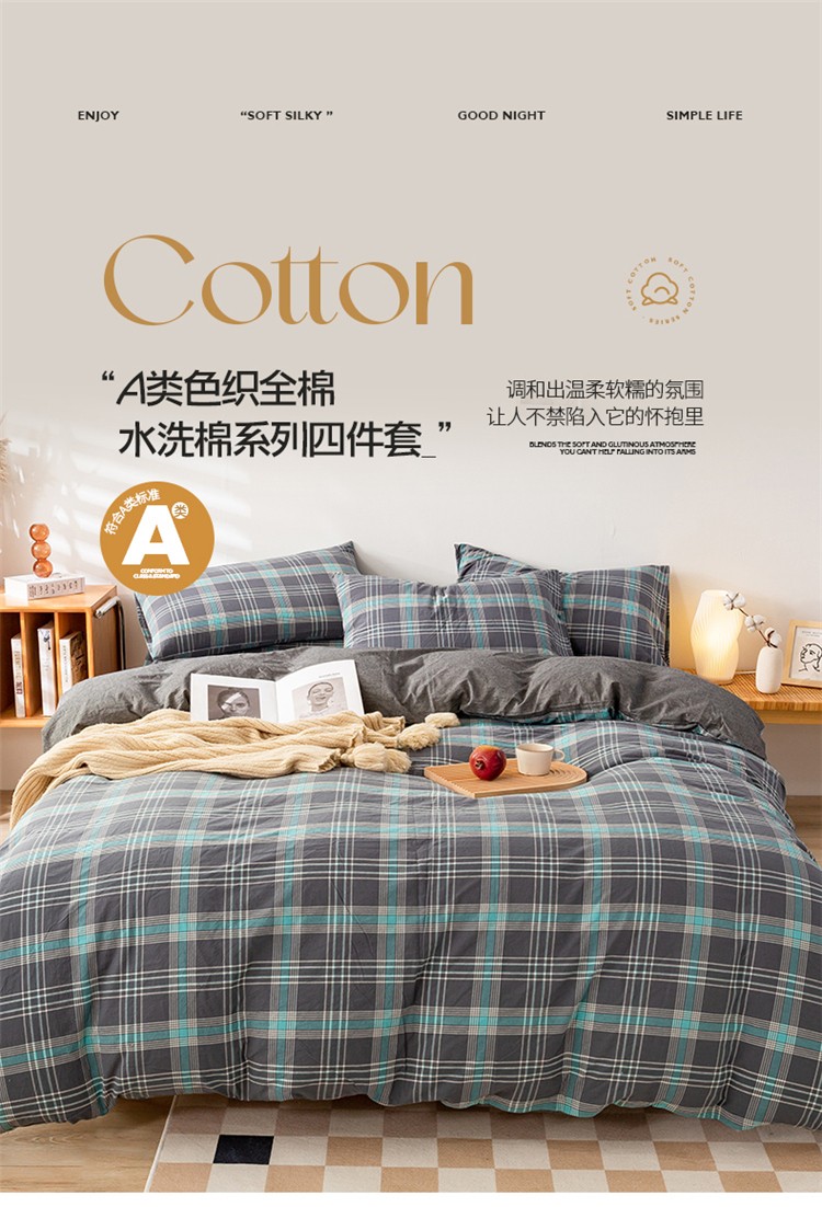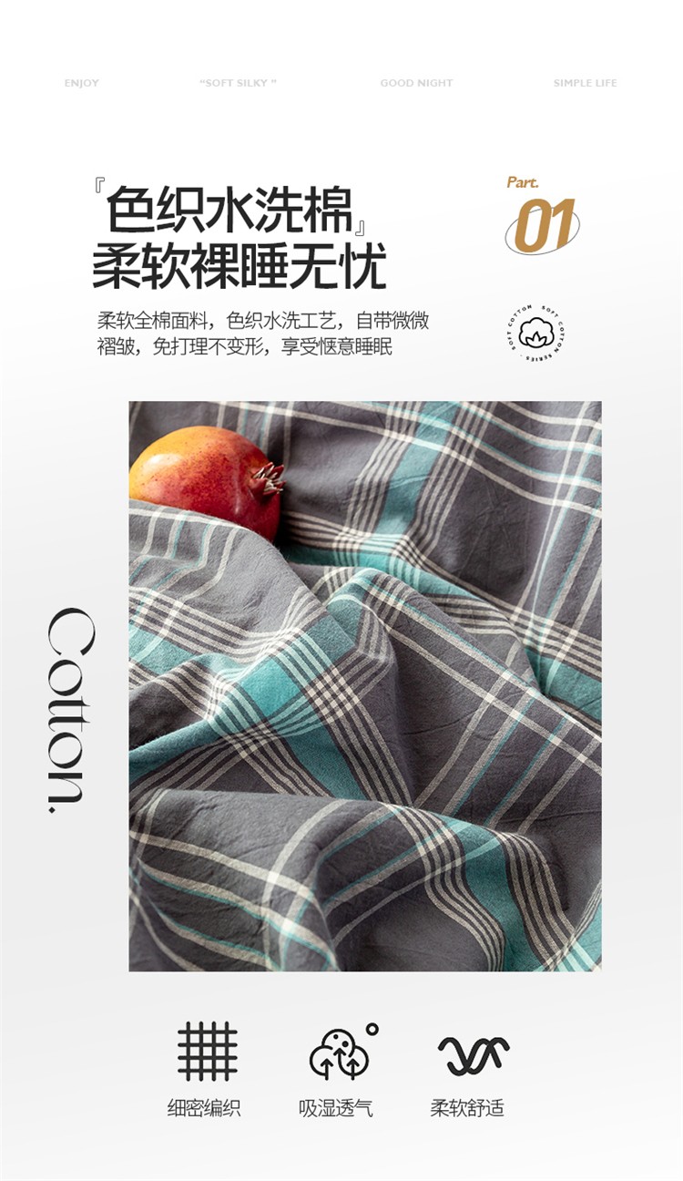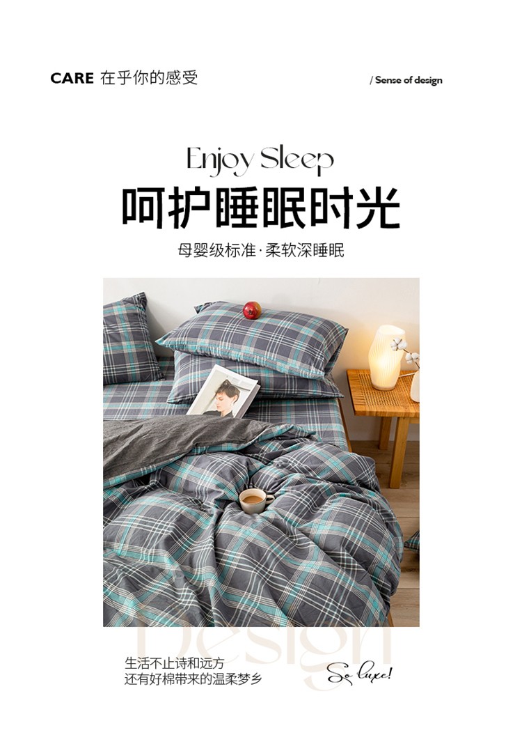 当前位置: 91家纺网 > 商品网购 > 床品套件 > 四件套 > 水洗棉四件套 > 九沐良品 新款A类色织水洗棉四件套 灰绿格