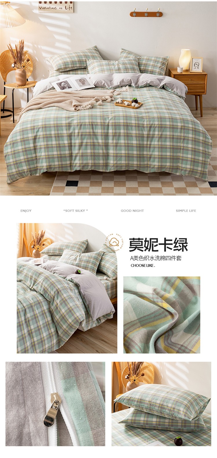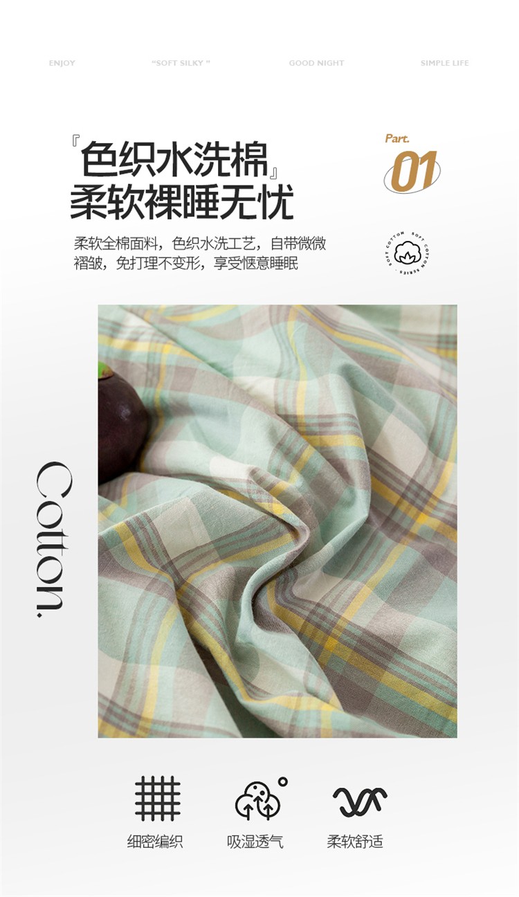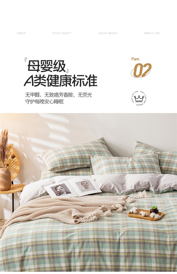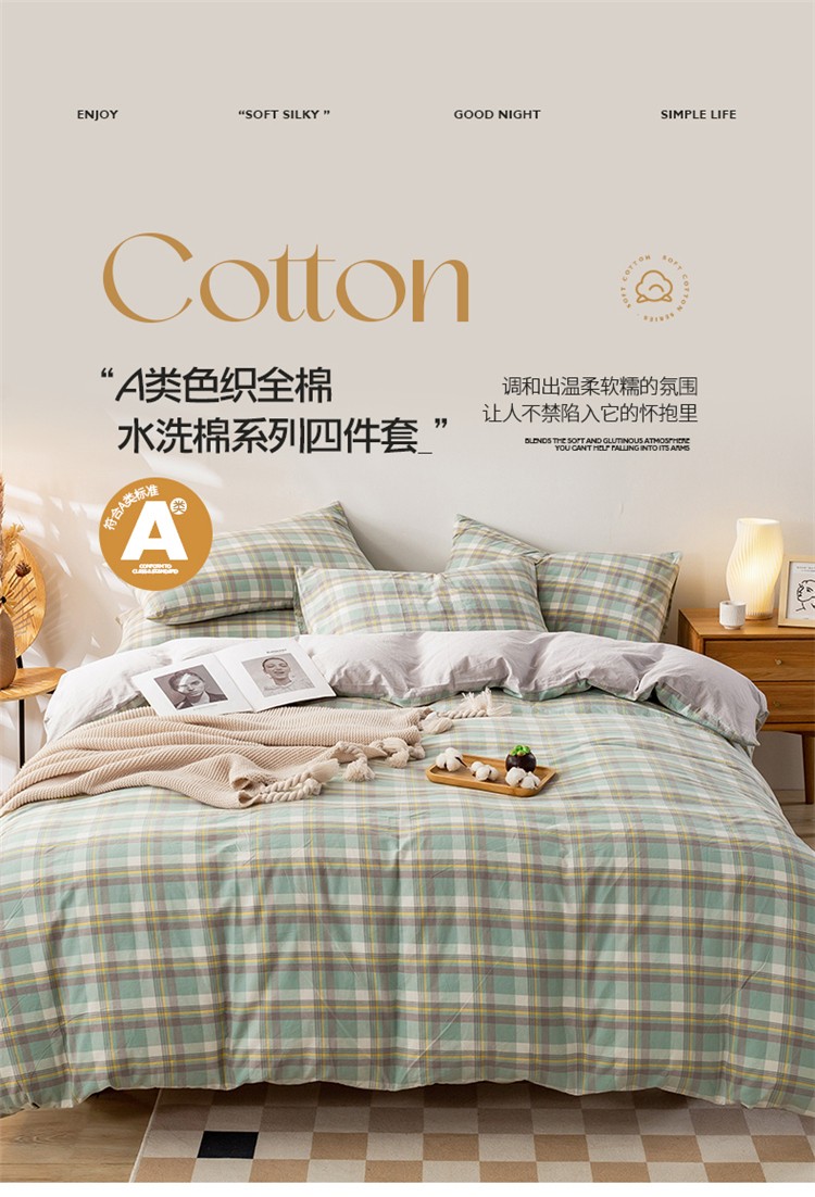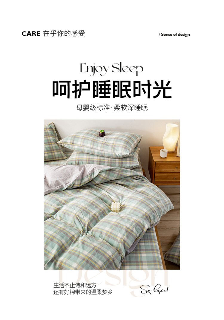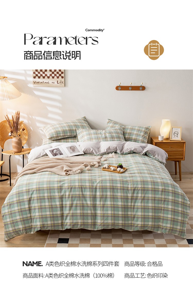 当前位置: 91家纺网 > 商品网购 > 床品套件 > 四件套 > 水洗棉四件套 > 九沐良品 新款A类色织水洗棉四件套 莫妮卡绿