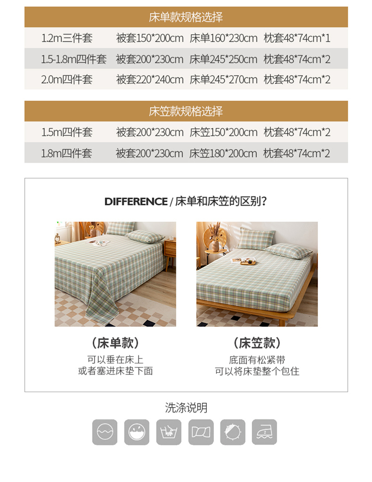 1.2m床笠款三件套 | ¥88.00 |