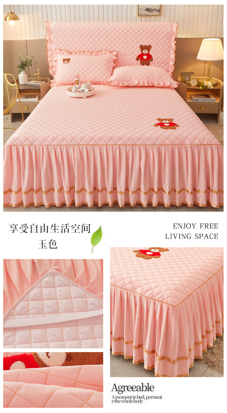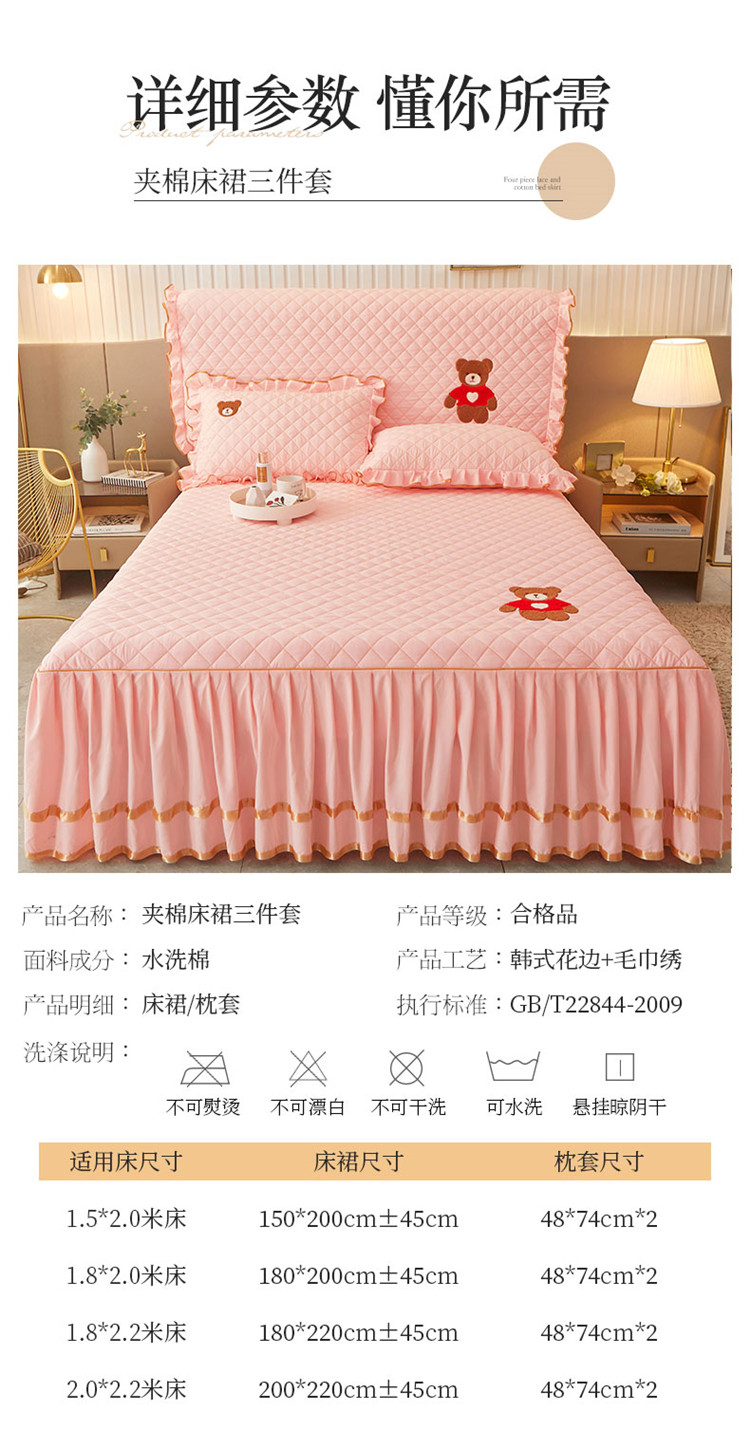 当前位置: 91家纺网 > 商品网购 > 床品套件 > 三件套 > 屹成家纺 2024年水洗棉毛巾绣款床裙三件套 玉色