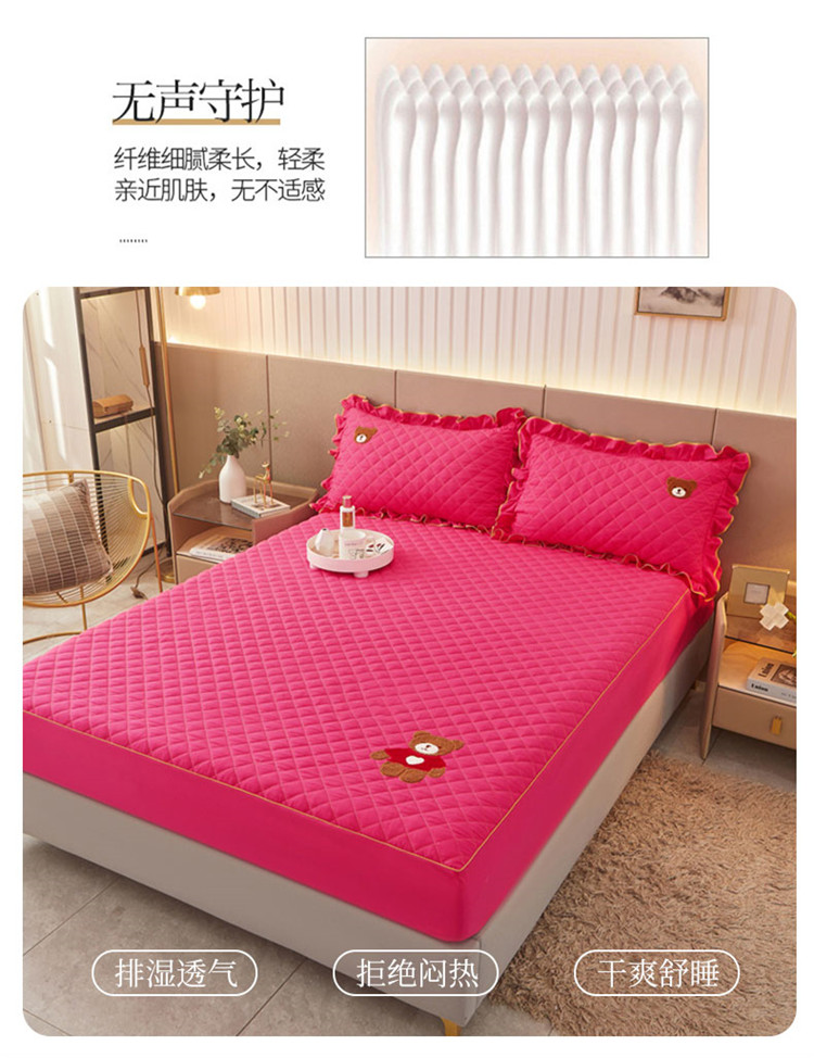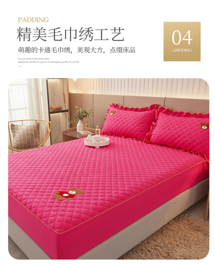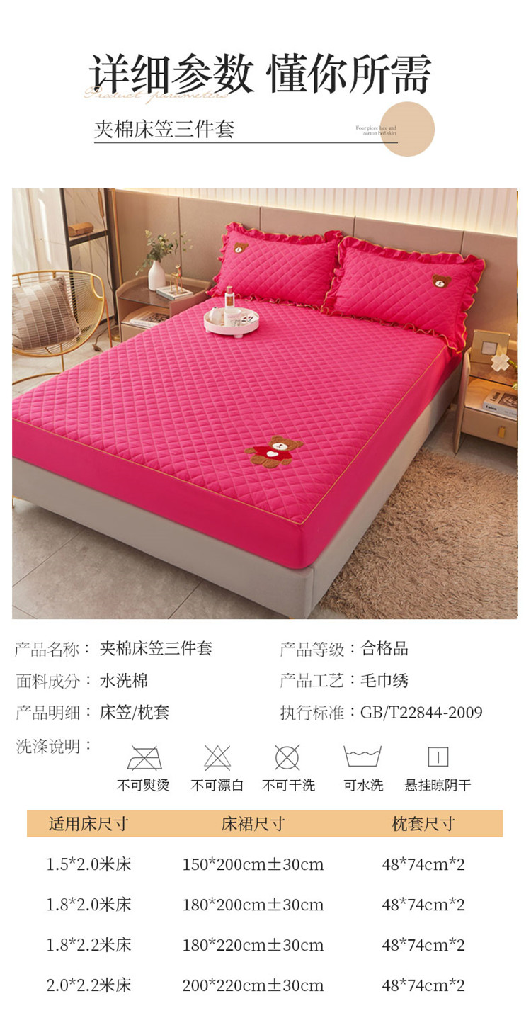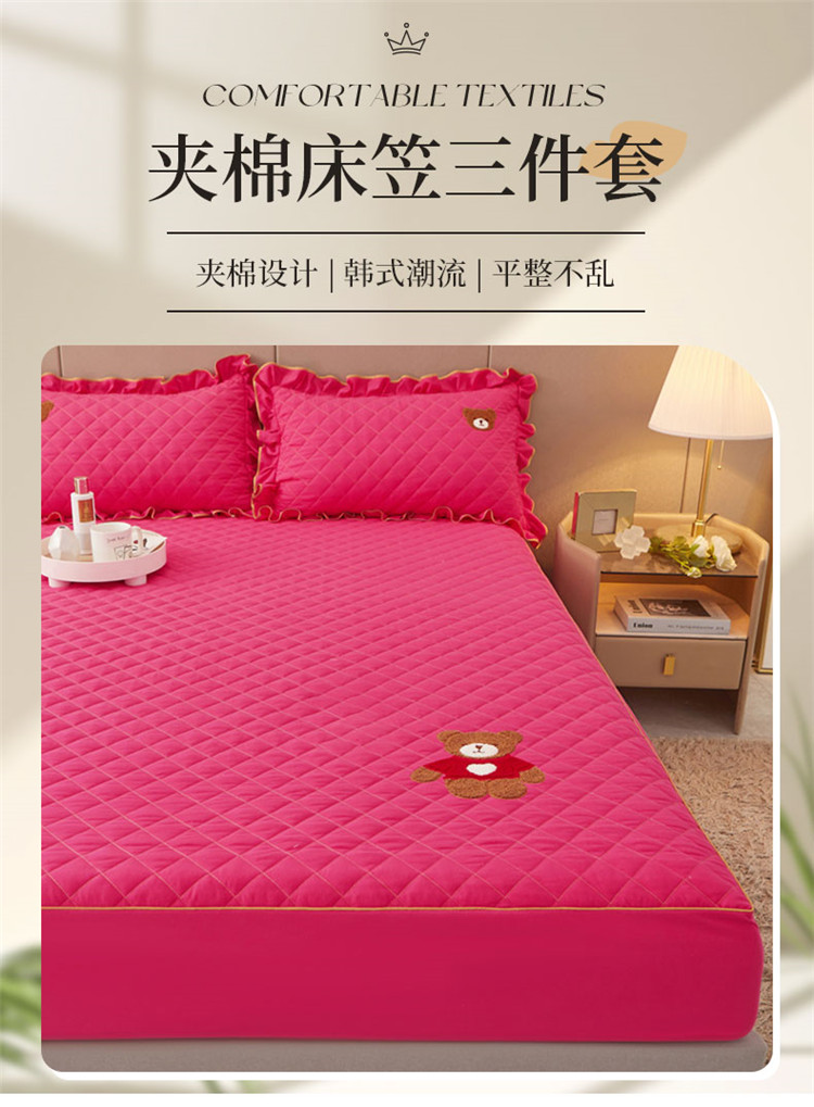 当前位置: 91家纺网 > 商品网购 > 床品套件 > 三件套 > 屹成家纺 2024年水洗棉毛巾绣款床笠三件套 玫红