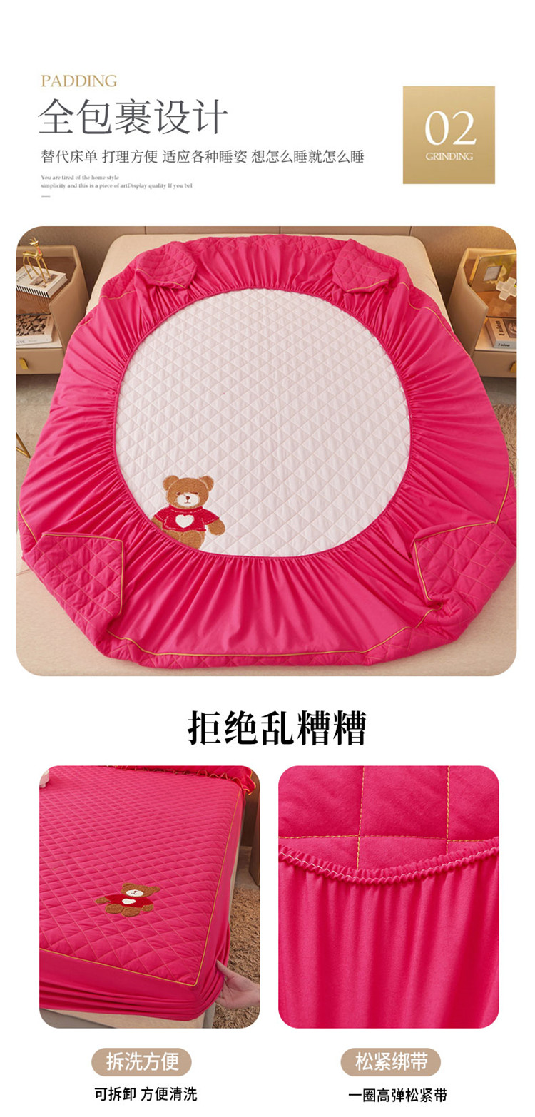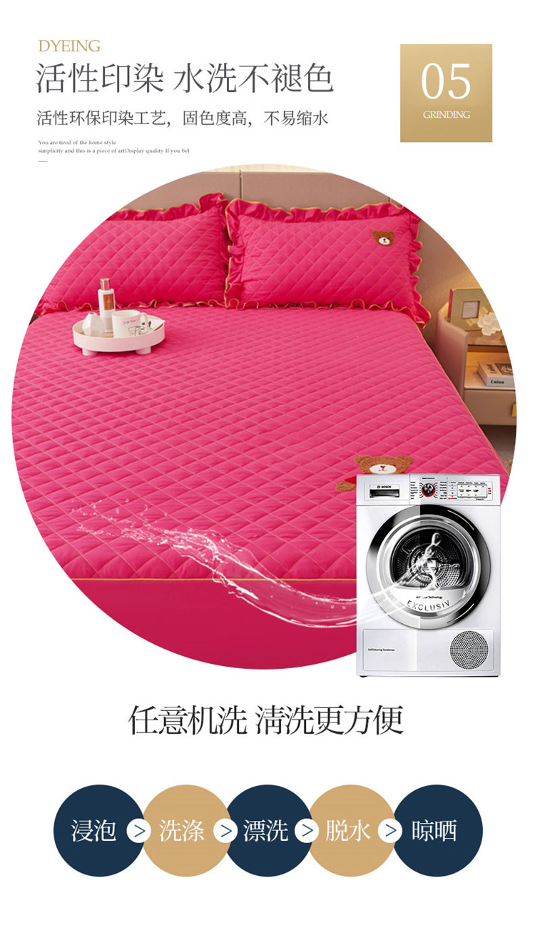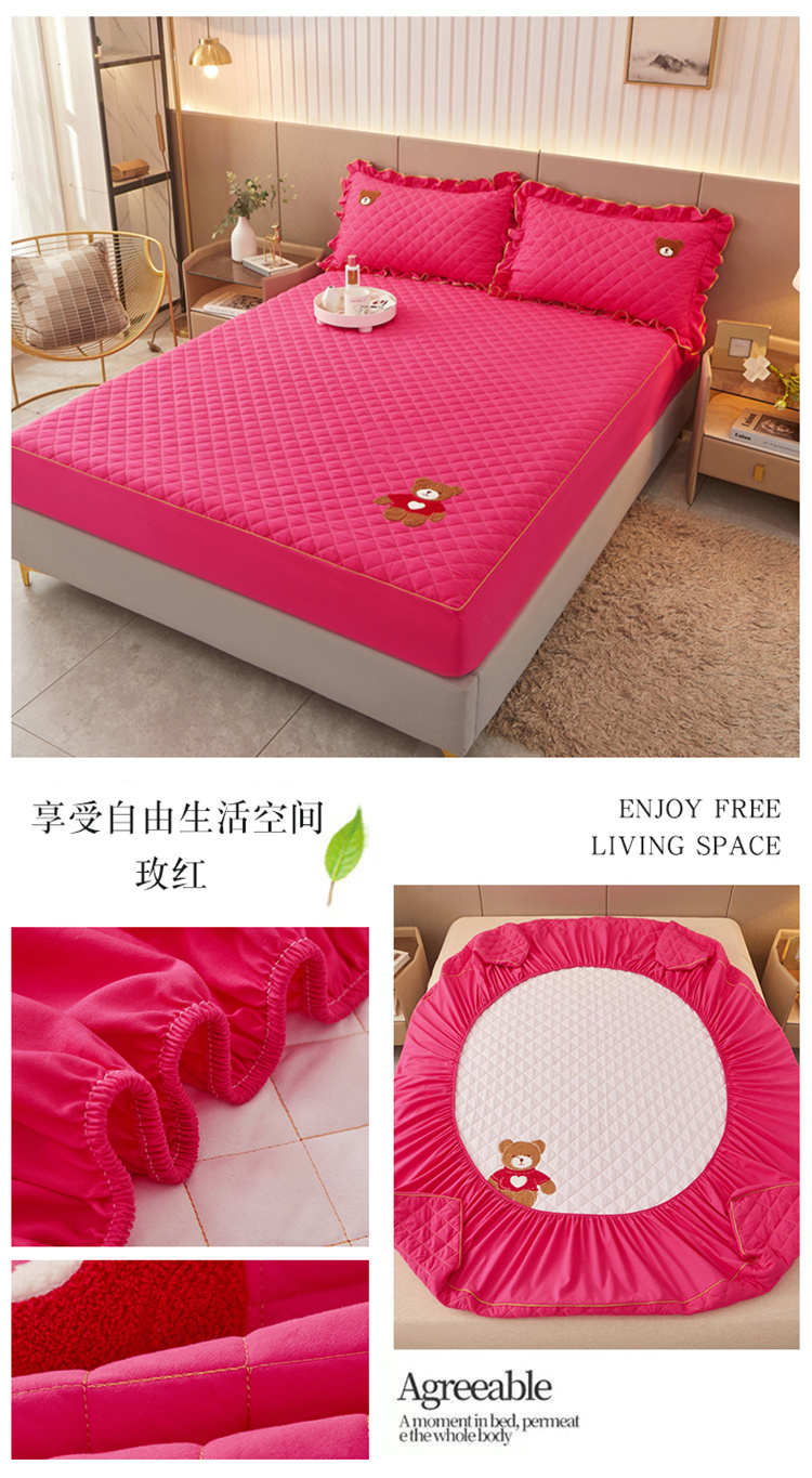当前位置: 91家纺网 > 商品网购 > 床品套件 > 三件套 > 屹成家纺 2024年水洗棉毛巾绣款床笠三件套 玫红