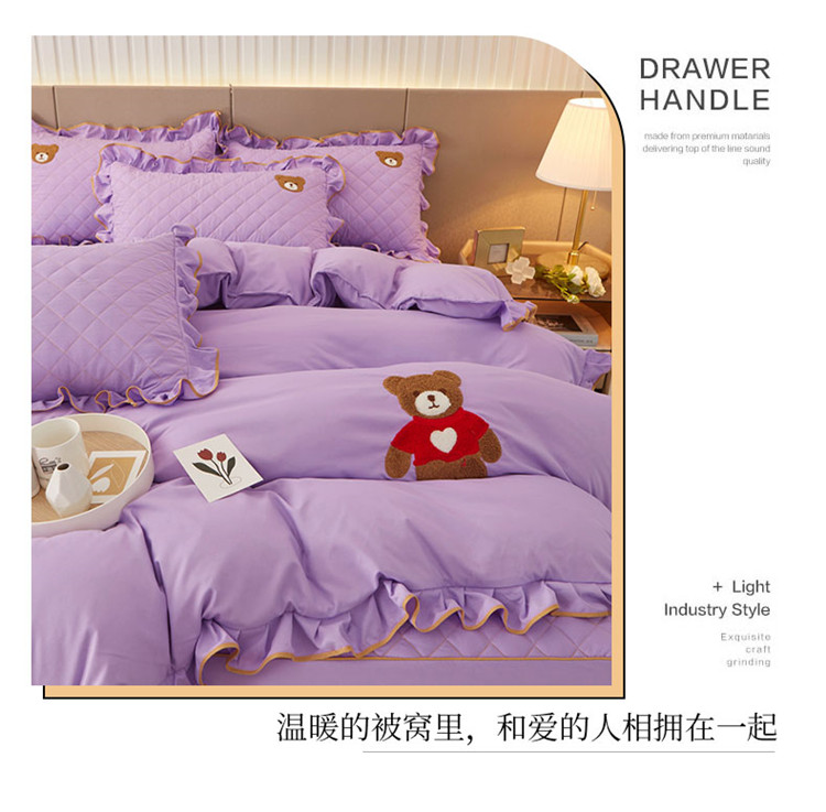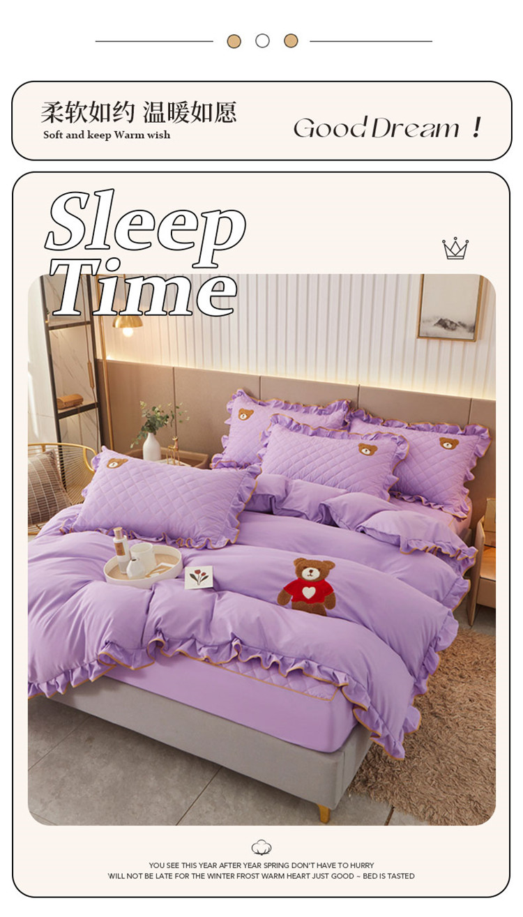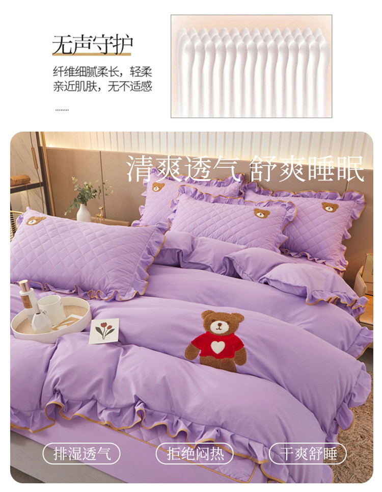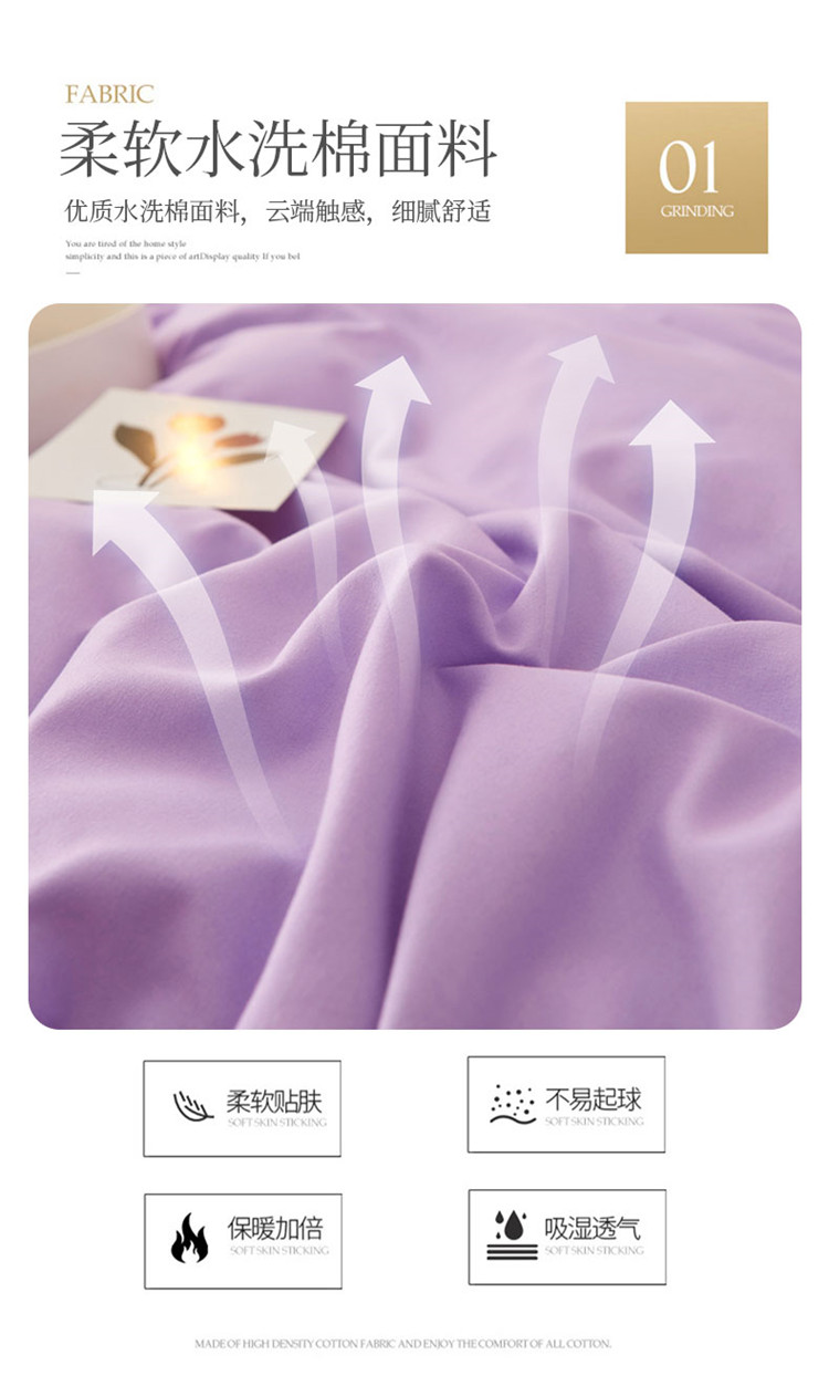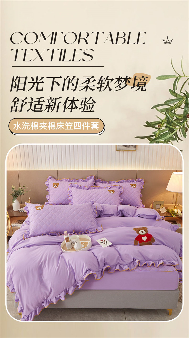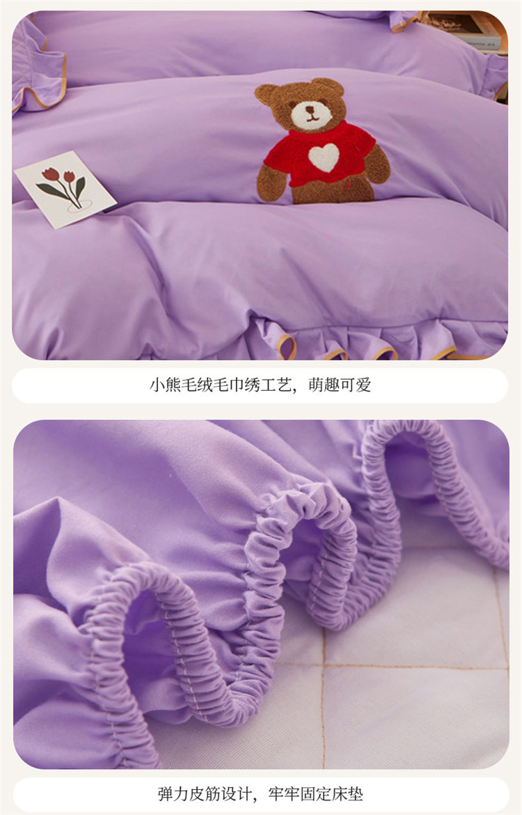 当前位置: 91家纺网 > 商品网购 > 床品套件 > 四件套 > 水洗棉四件套 > 屹成家纺 2024年水洗棉毛巾绣款床笠四件套 浅紫