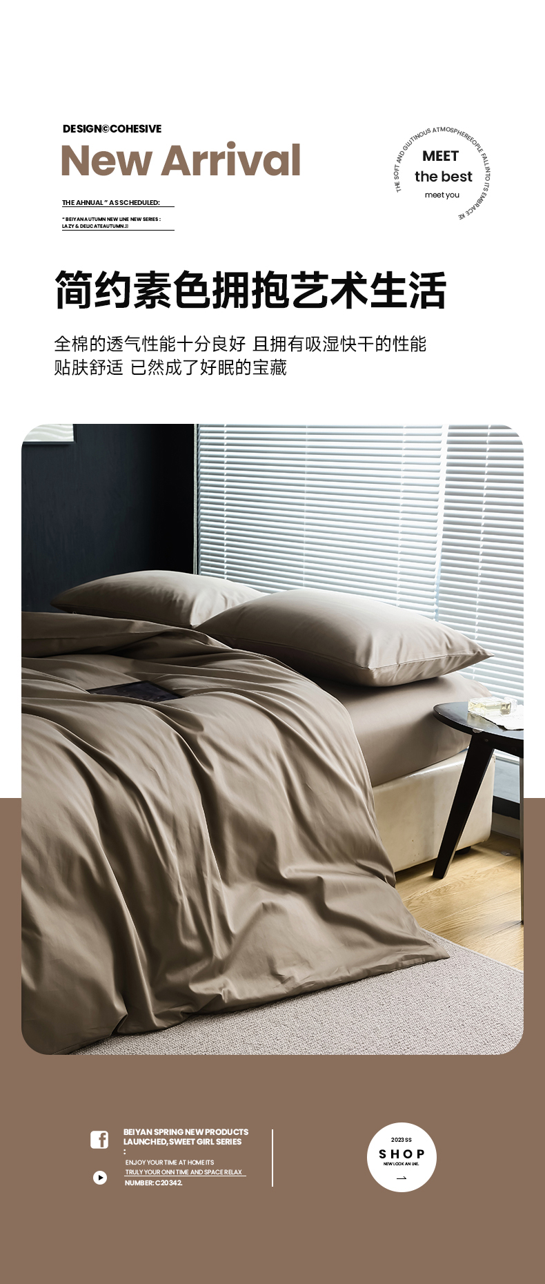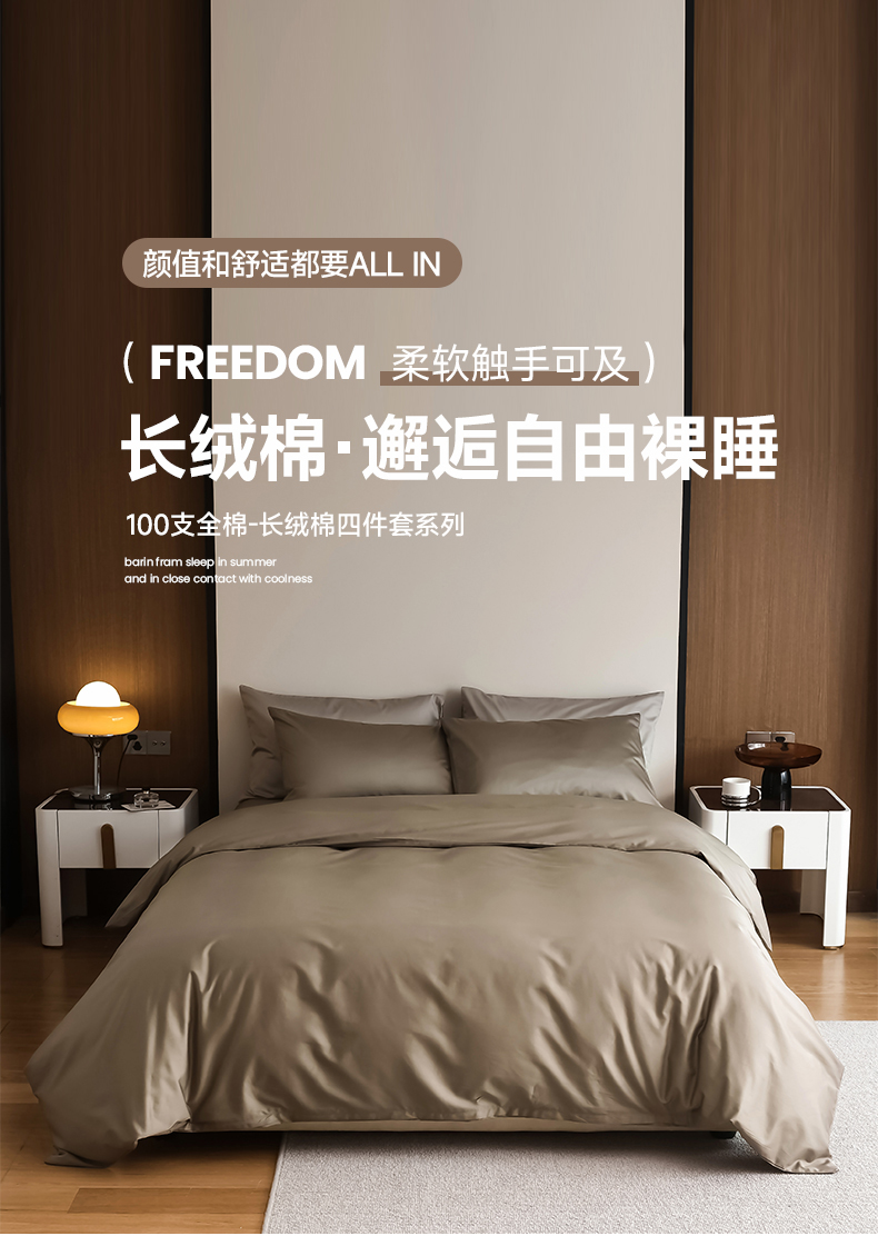 当前位置: 91家纺网 > 商品网购 > 床品套件 > 四件套 > 长绒棉四件套 > 寐眠-豫皖 2023新款100支全棉长绒棉四件套 时光棕