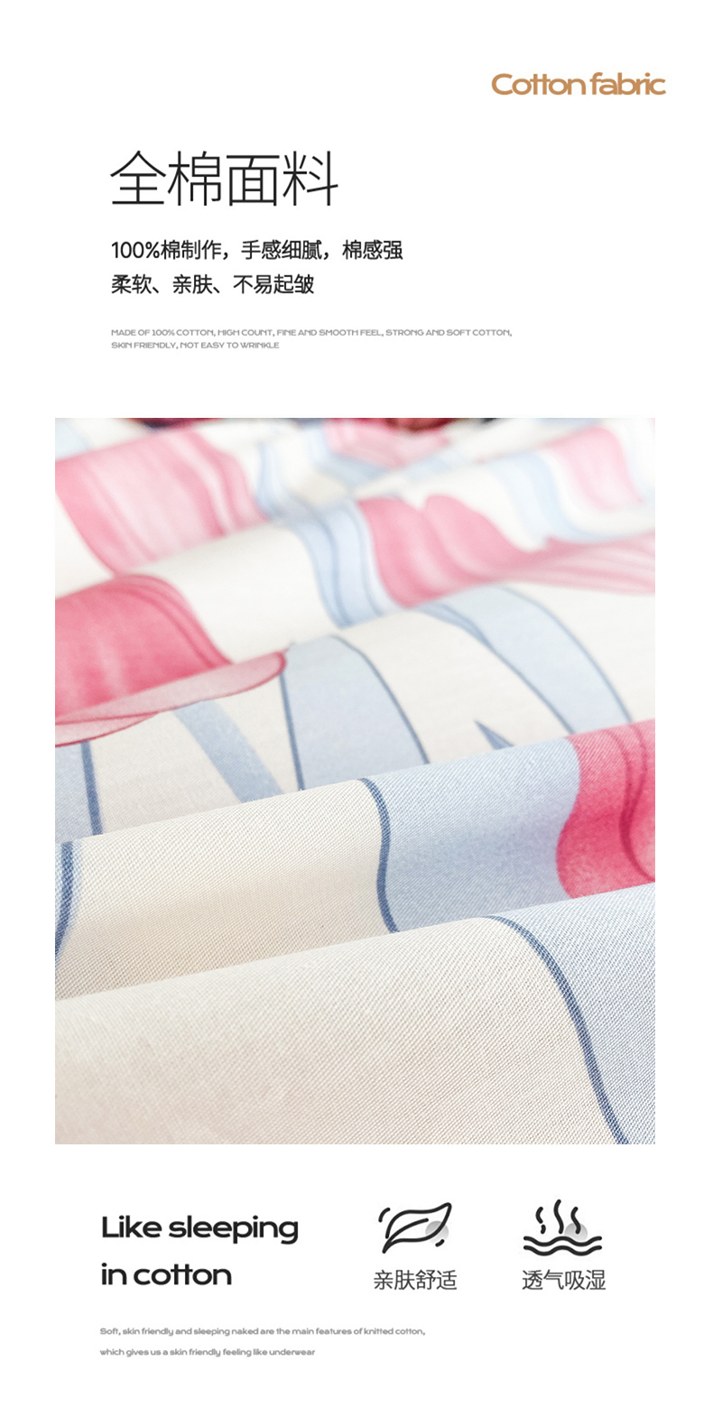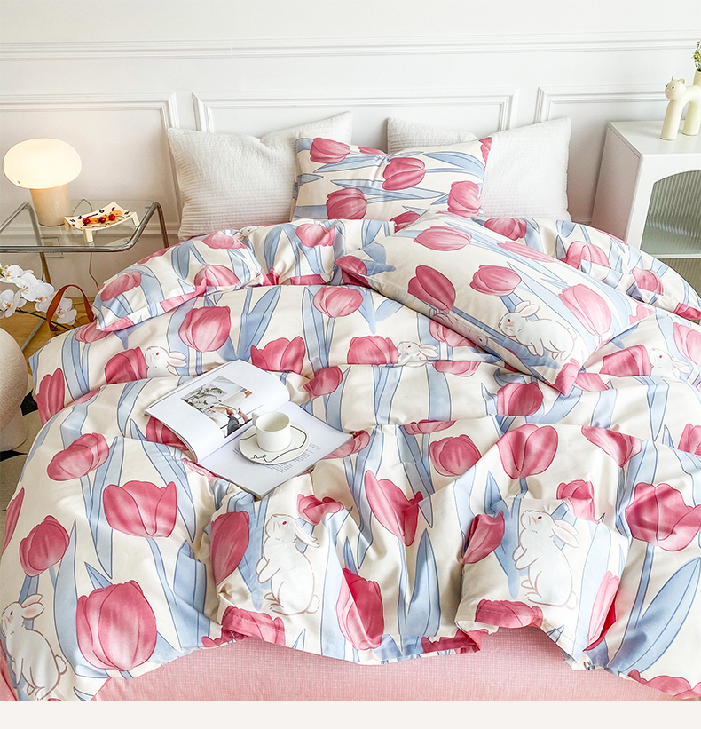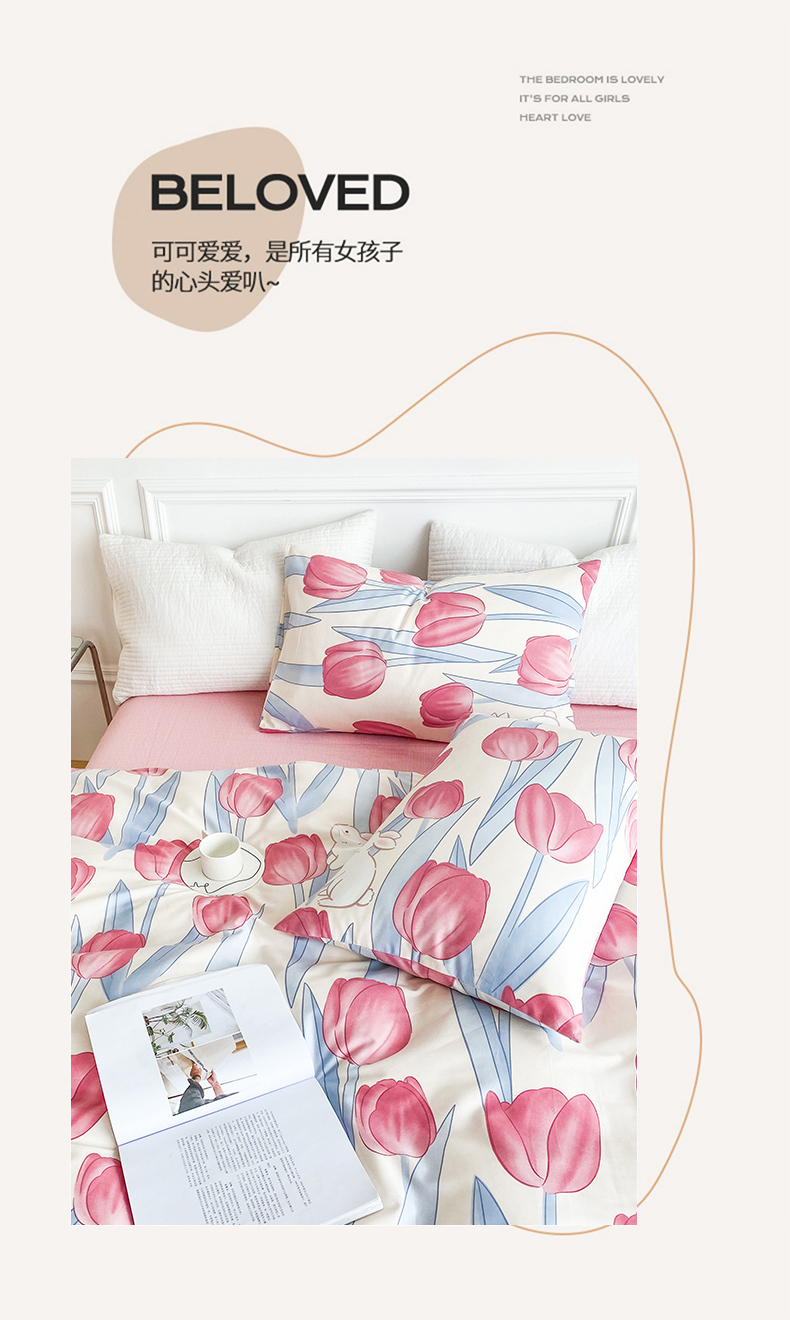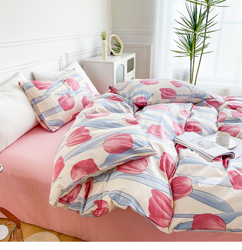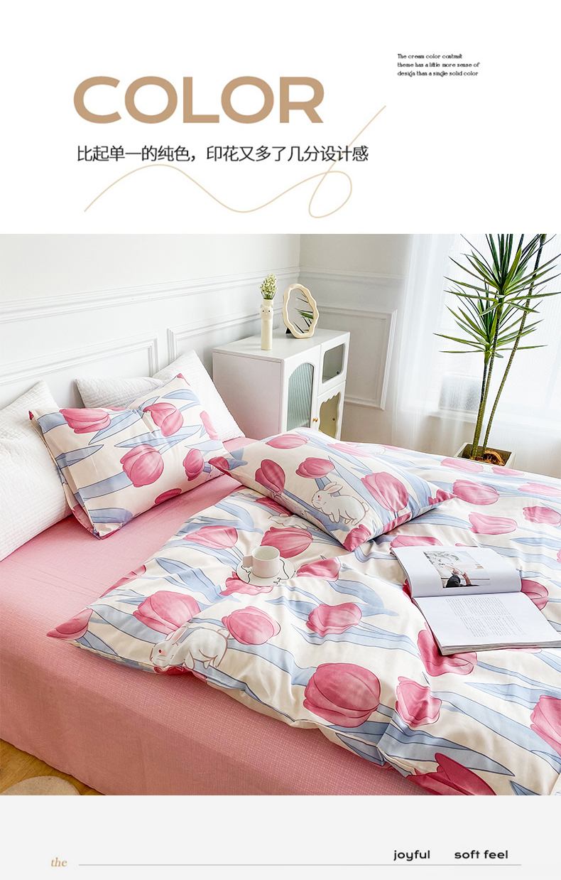 珺柔家纺 2023新款13372全棉印花四件套 粉色郁金香