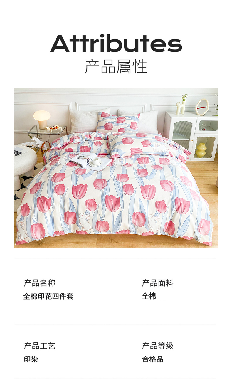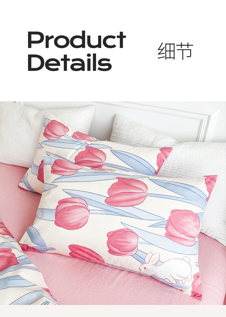 商品名称:珺柔家纺 2023新款13372全棉印花四件套 粉色郁金香