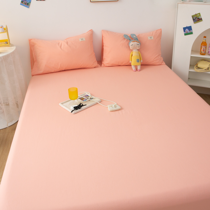 芬晴 2023新款纯棉水洗棉单层床笠 桃粉