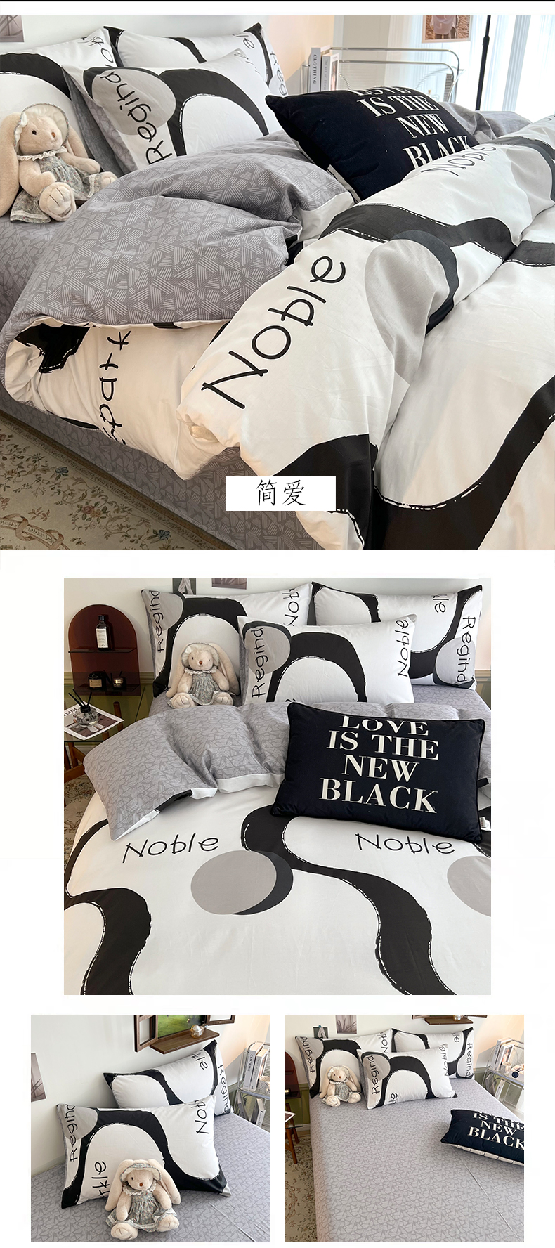 (总)HL原创 2025新款兔毛绒单品被套单件被套,繁花,狗狗线条,焦糖爱心,洛可可,魔法学院,绅士,时尚斑马,晚霞,五彩缤纷,喜乐,自由-黑