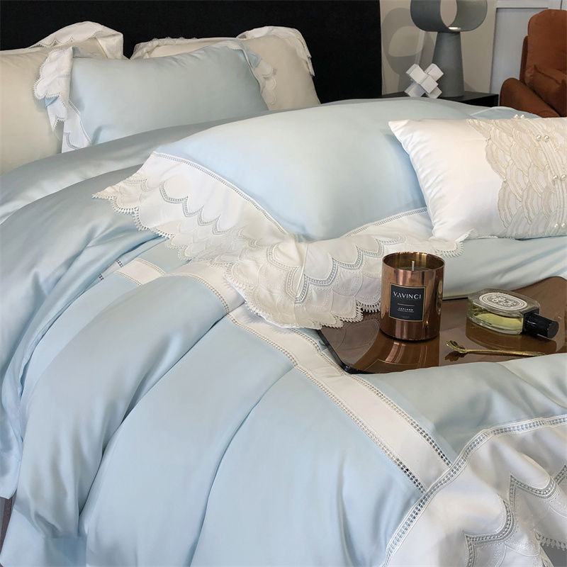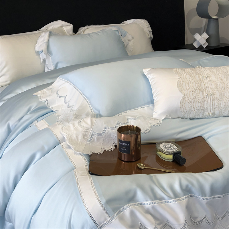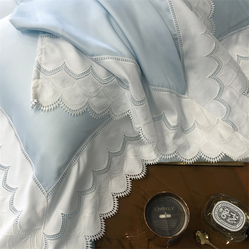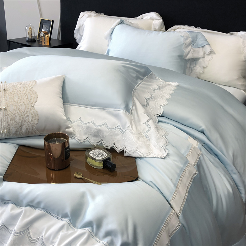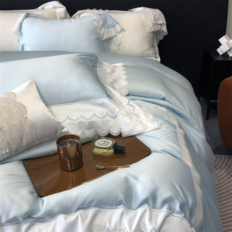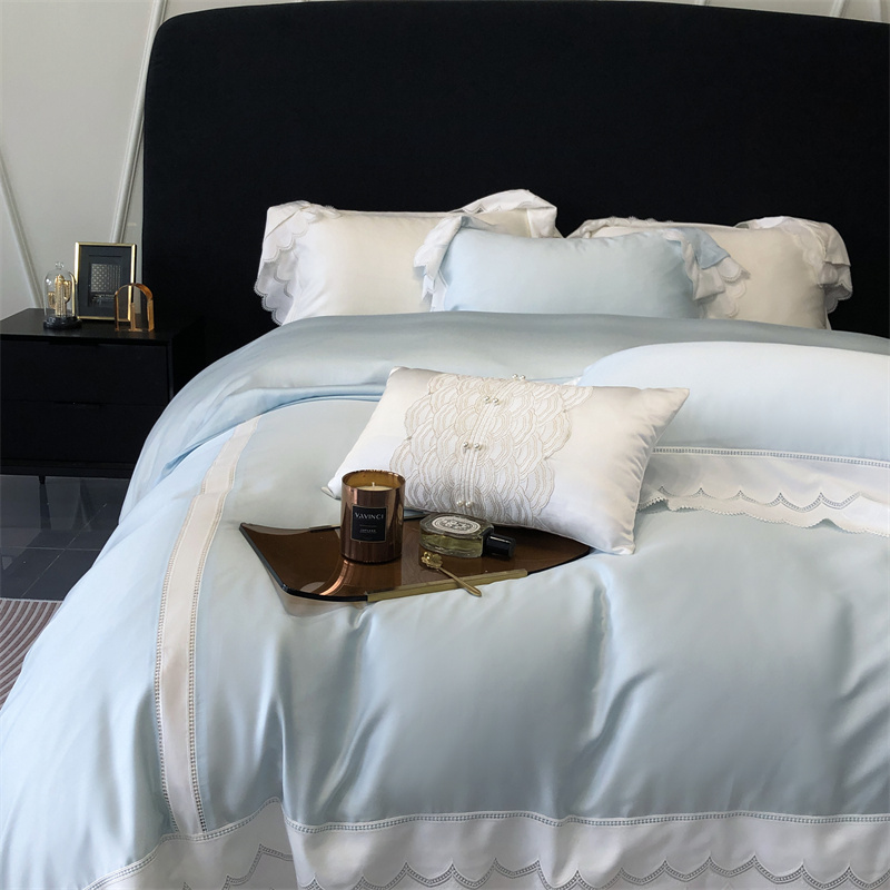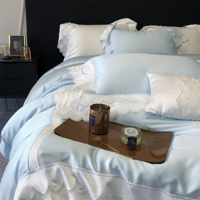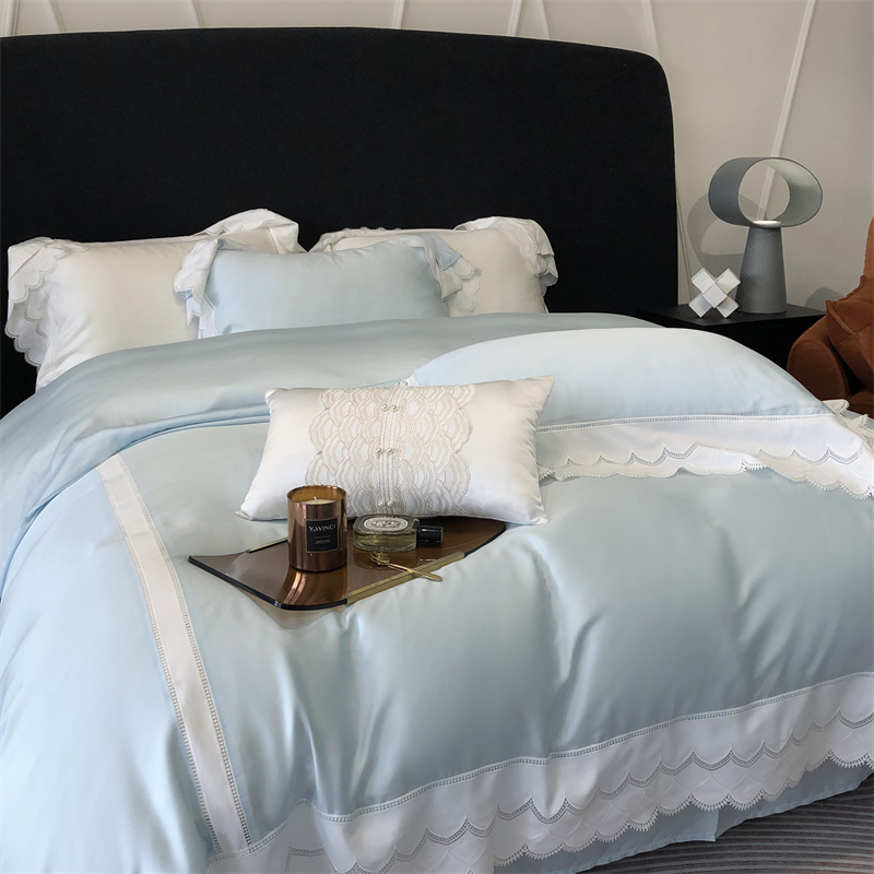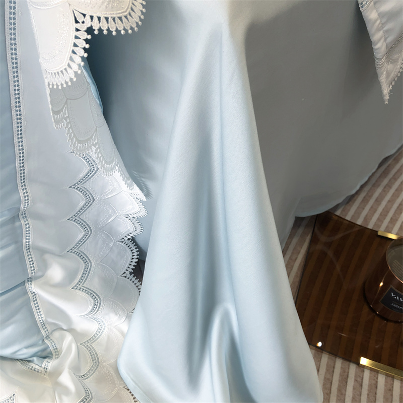 商品名称:馨蕊家居 2023新款80支兰精天丝四件套-天丝卡曼丝 风格一 卡曼丝-北卡蓝
