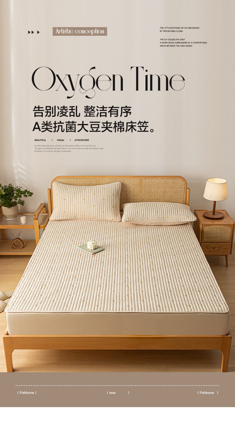 芬晴 2023新款A类抗菌大豆夹棉床笠 心恋-卡其