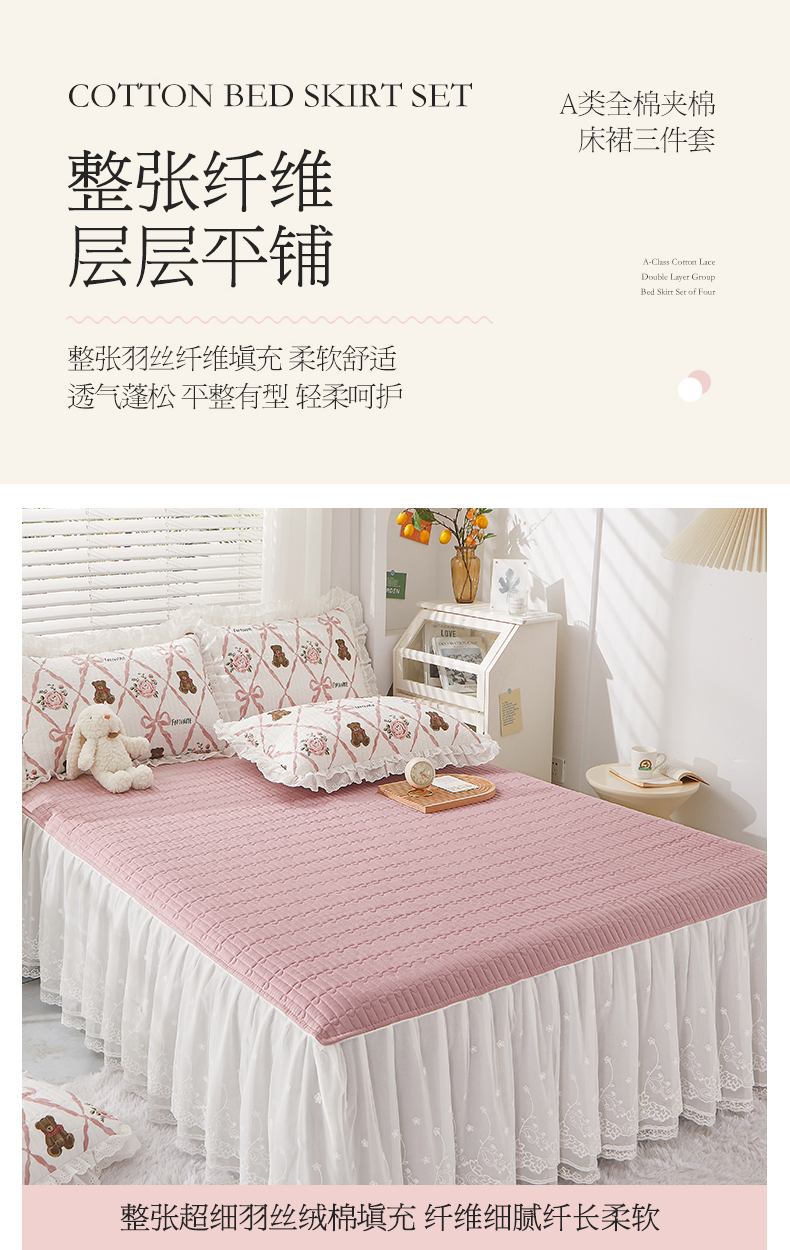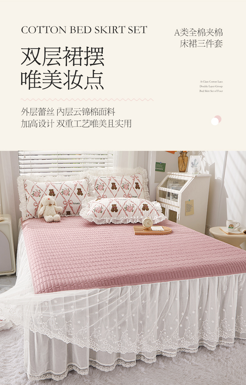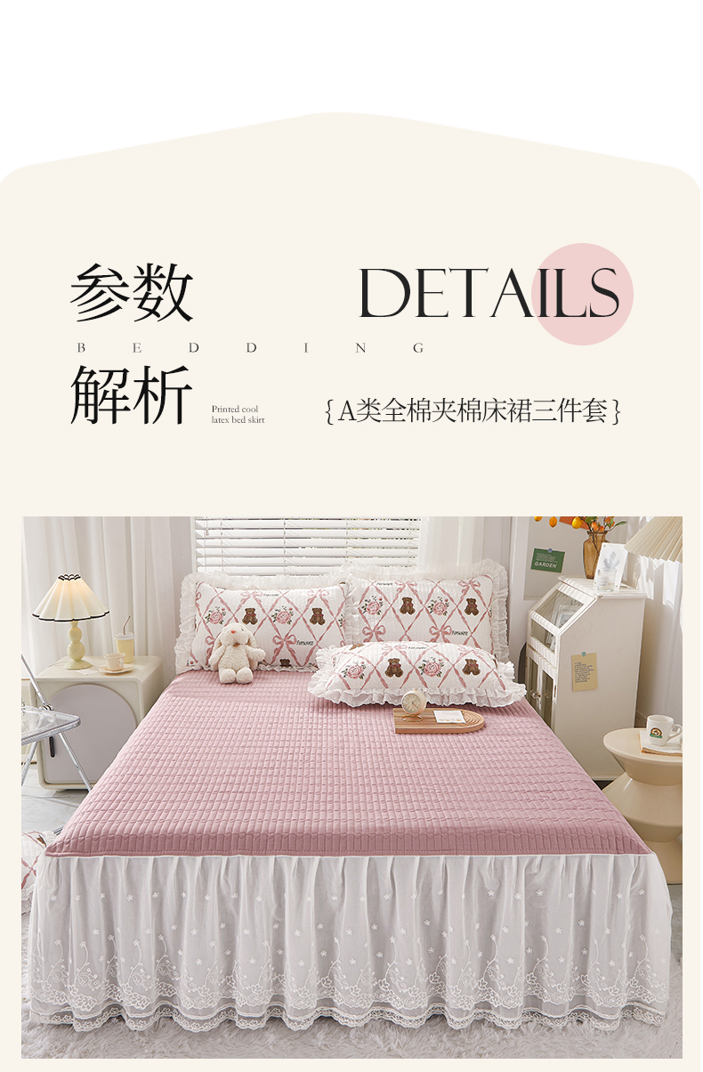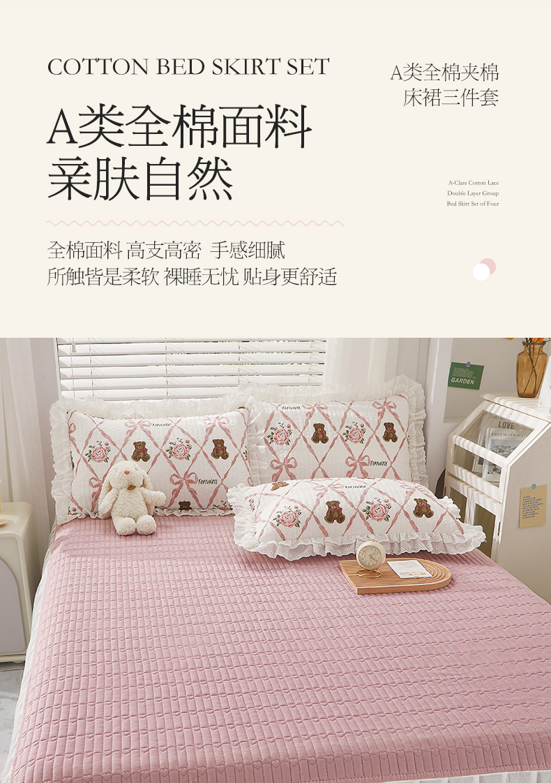 商品名称:(总)宜凡家纺2023新款A类全棉夹棉床裙三件套
