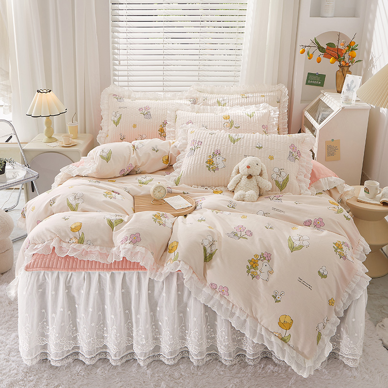 (总)宜凡家纺 2023新款A类全棉夹棉床裙四件套