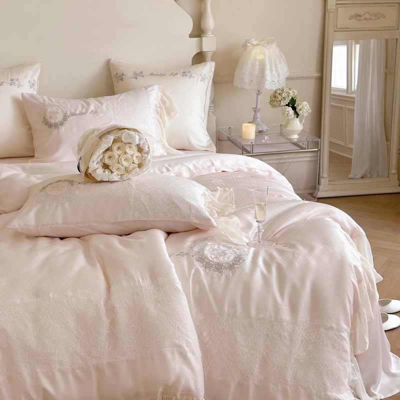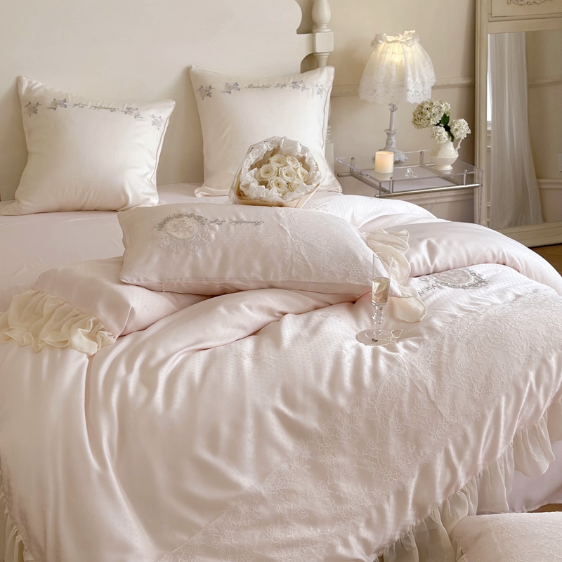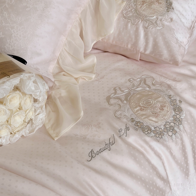 (总)MIU缪家居 2025春夏新款60支兰精天丝四件套-爱莎,爱莎-浅粉,爱莎-乳白