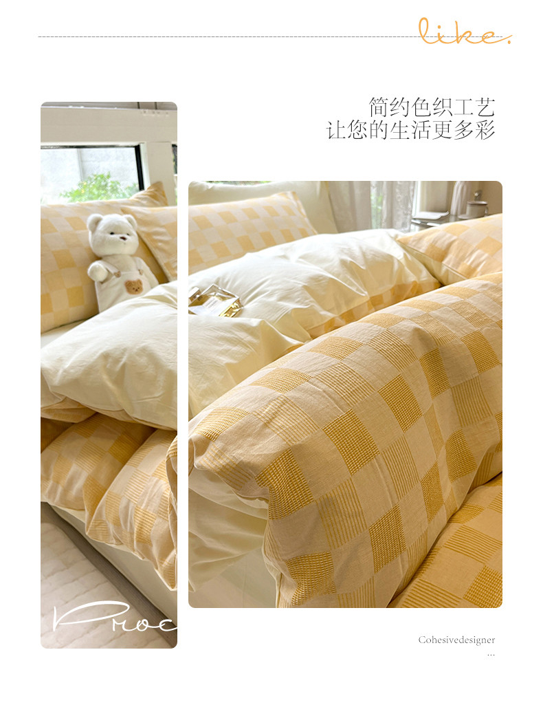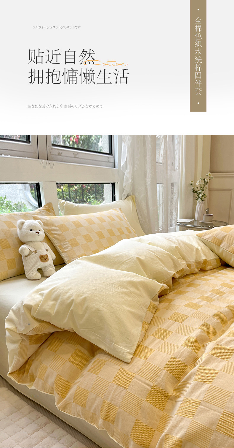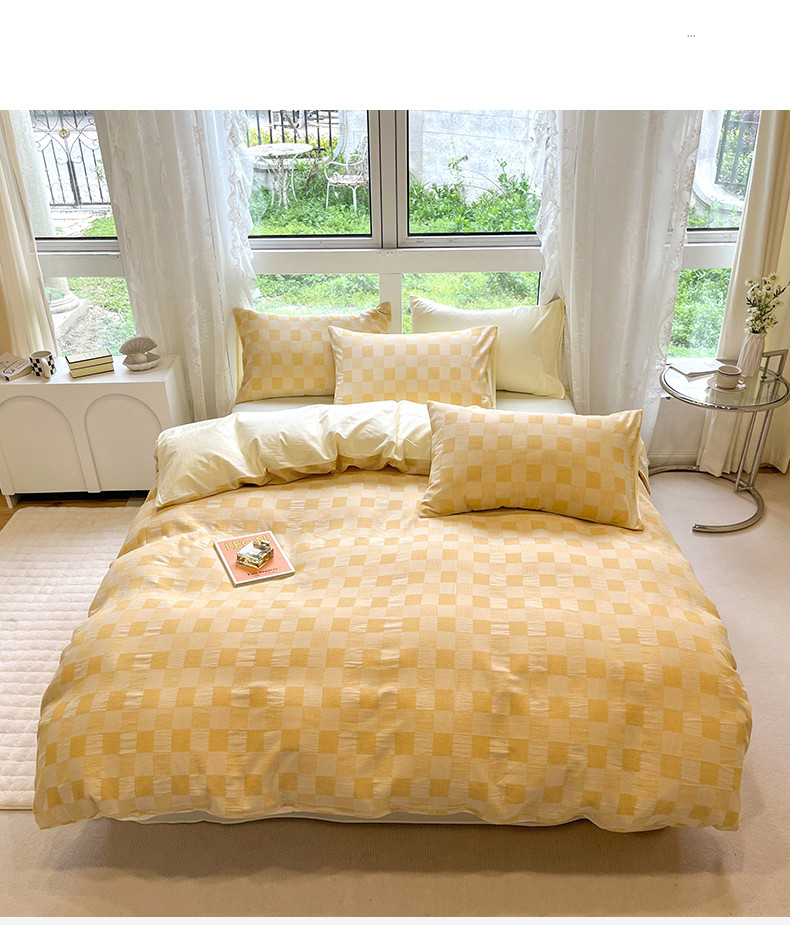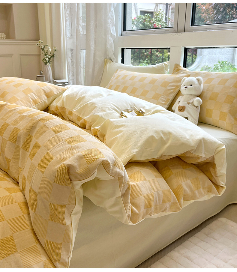 商品名称:小懒猪 2023新款全棉色织水洗棉华夫格轻奢简约床品四件套 华夫格香槟
