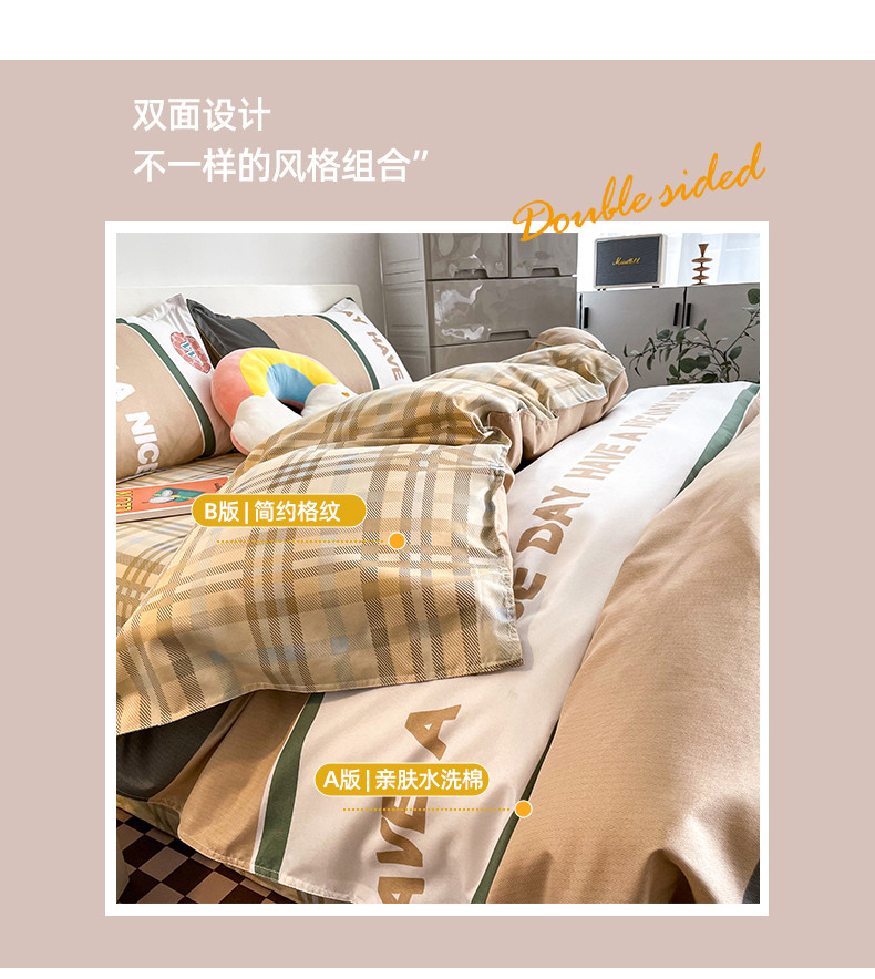 (总)宏源 2023新款日系简约风格子水洗冰丝双层纱四件套,格里灰,格里绿,简尚灰,简尚蓝,简尚绿,简尚驼,乔南桔,乔南蓝