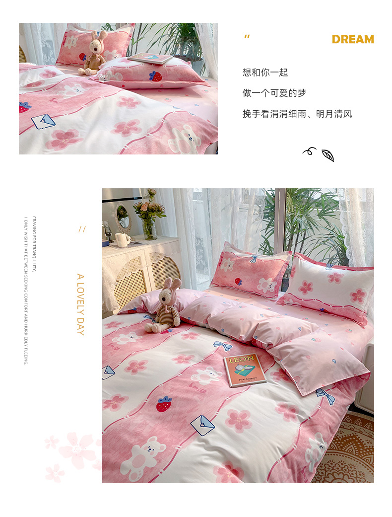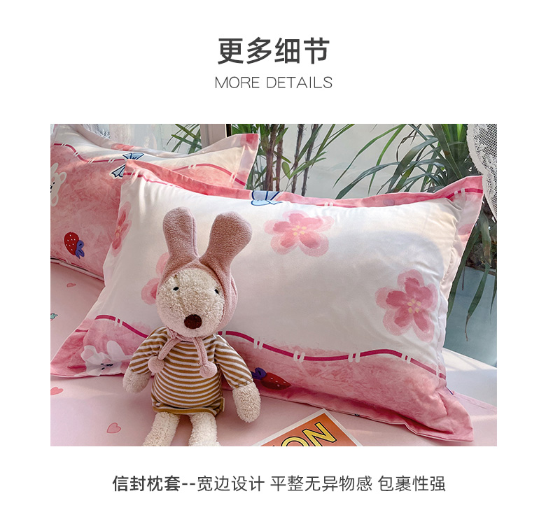 (总)宏源家纺 2023年4月新款芦荟棉亲肤印花四件套,宝藏,星黛兔,格韵,玫红黑条,粉心兔,绿黑条,花园兔