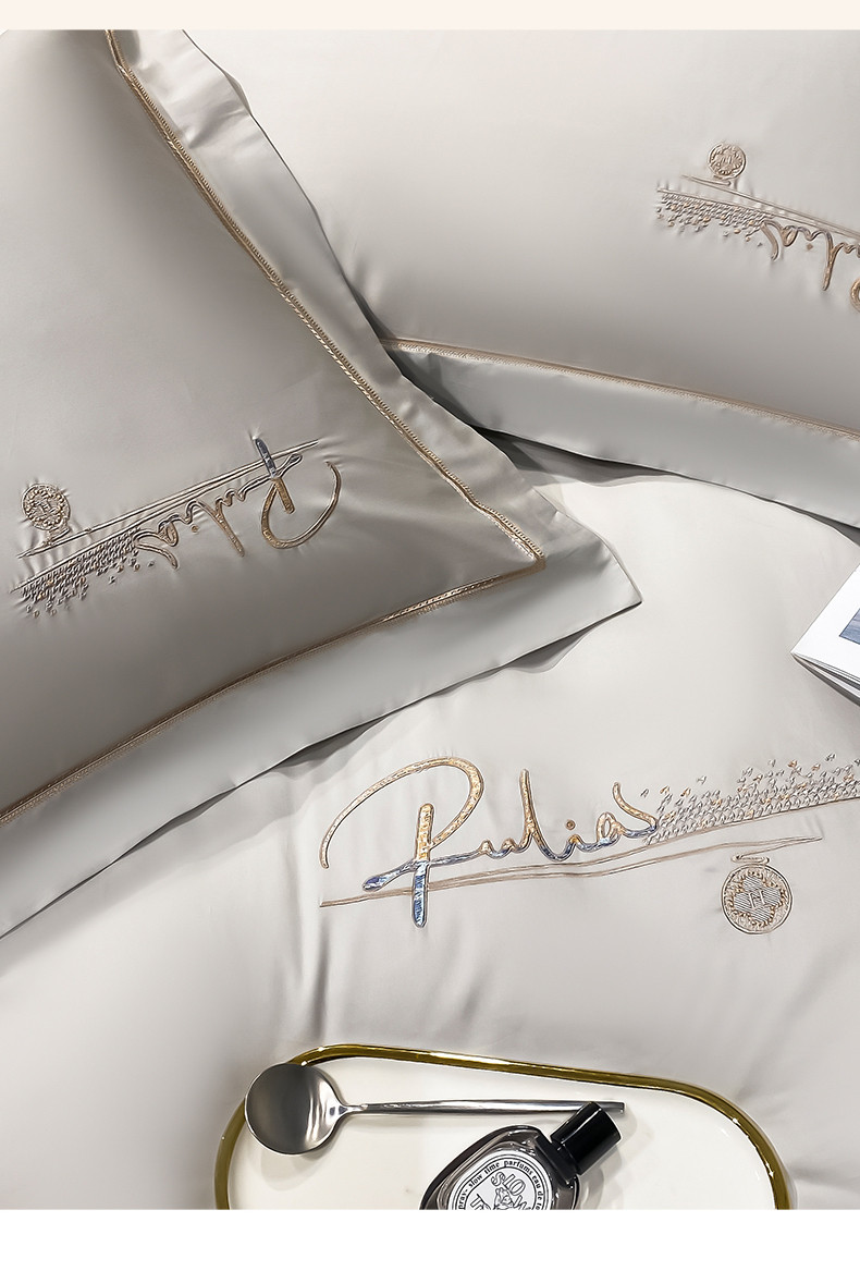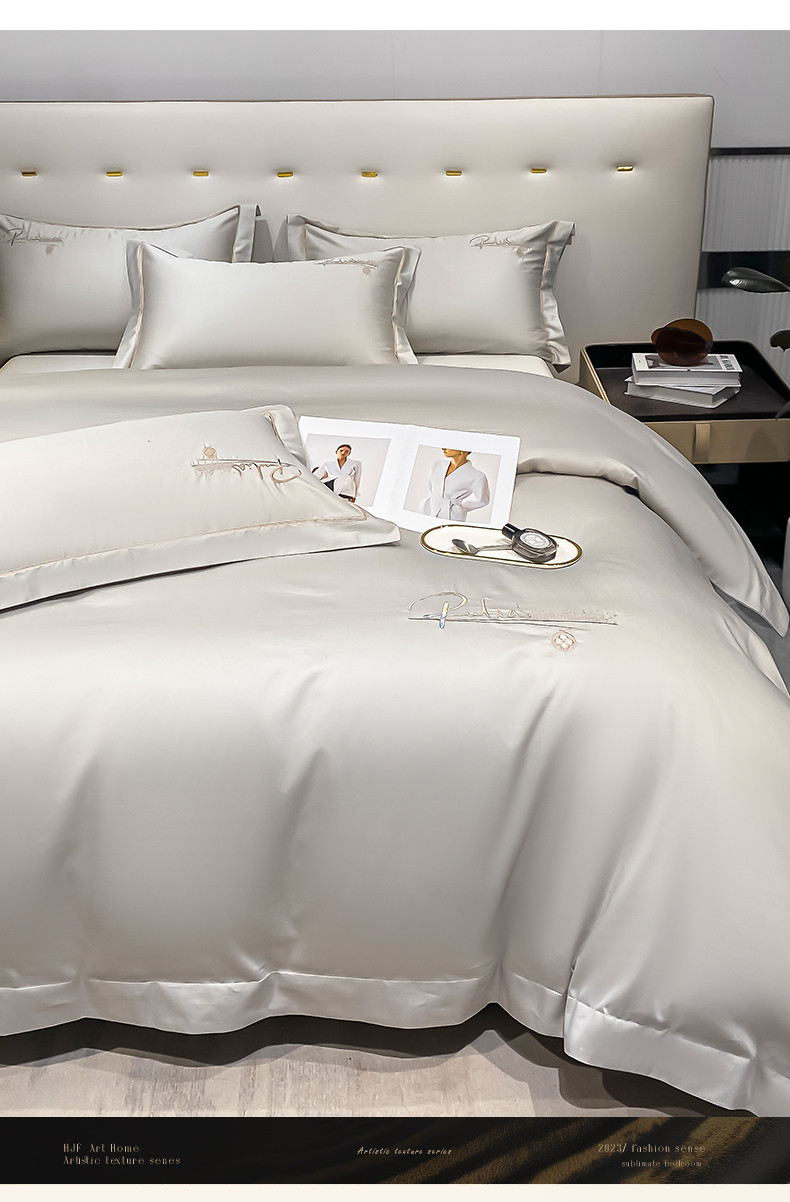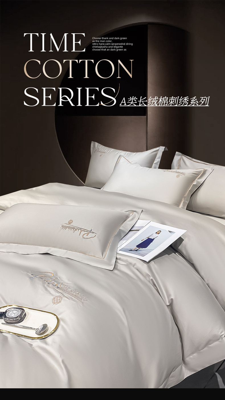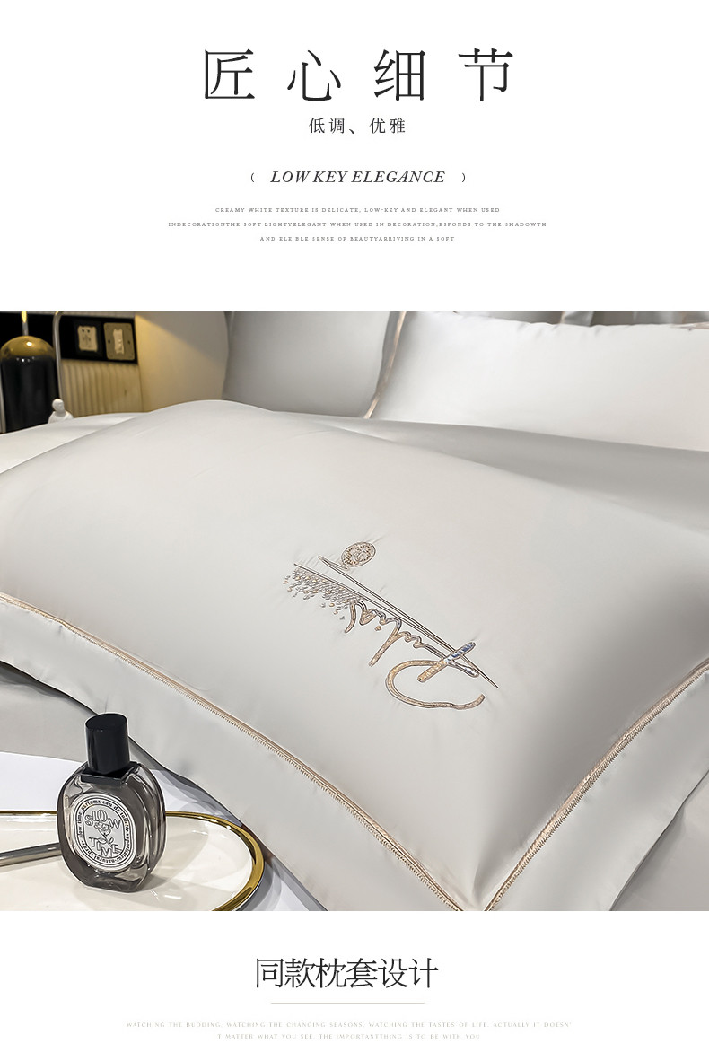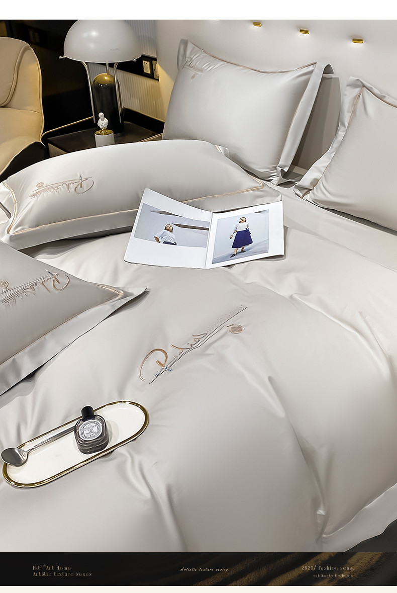 曼秀琳 2023新款A类60s长绒棉刺绣款四件套-爱尚系列 爱尚-芝士灰