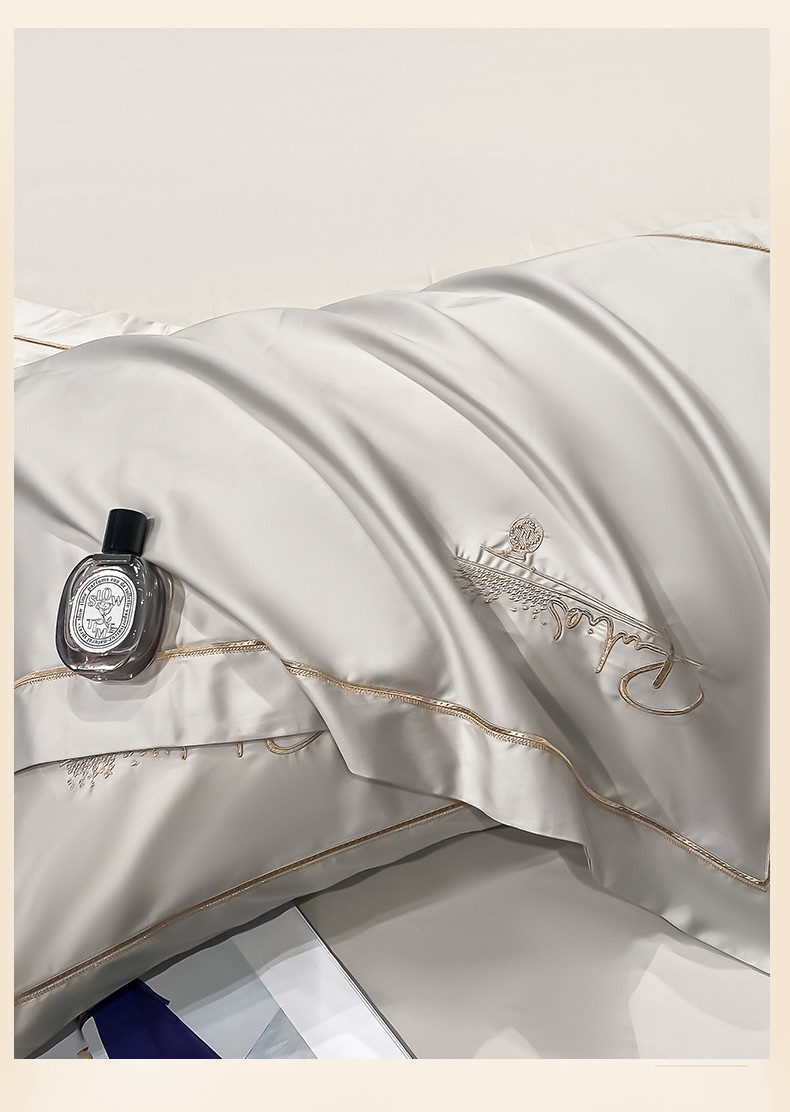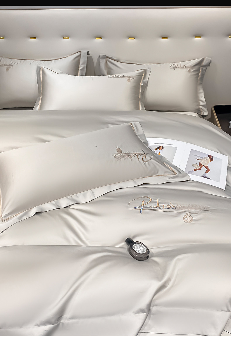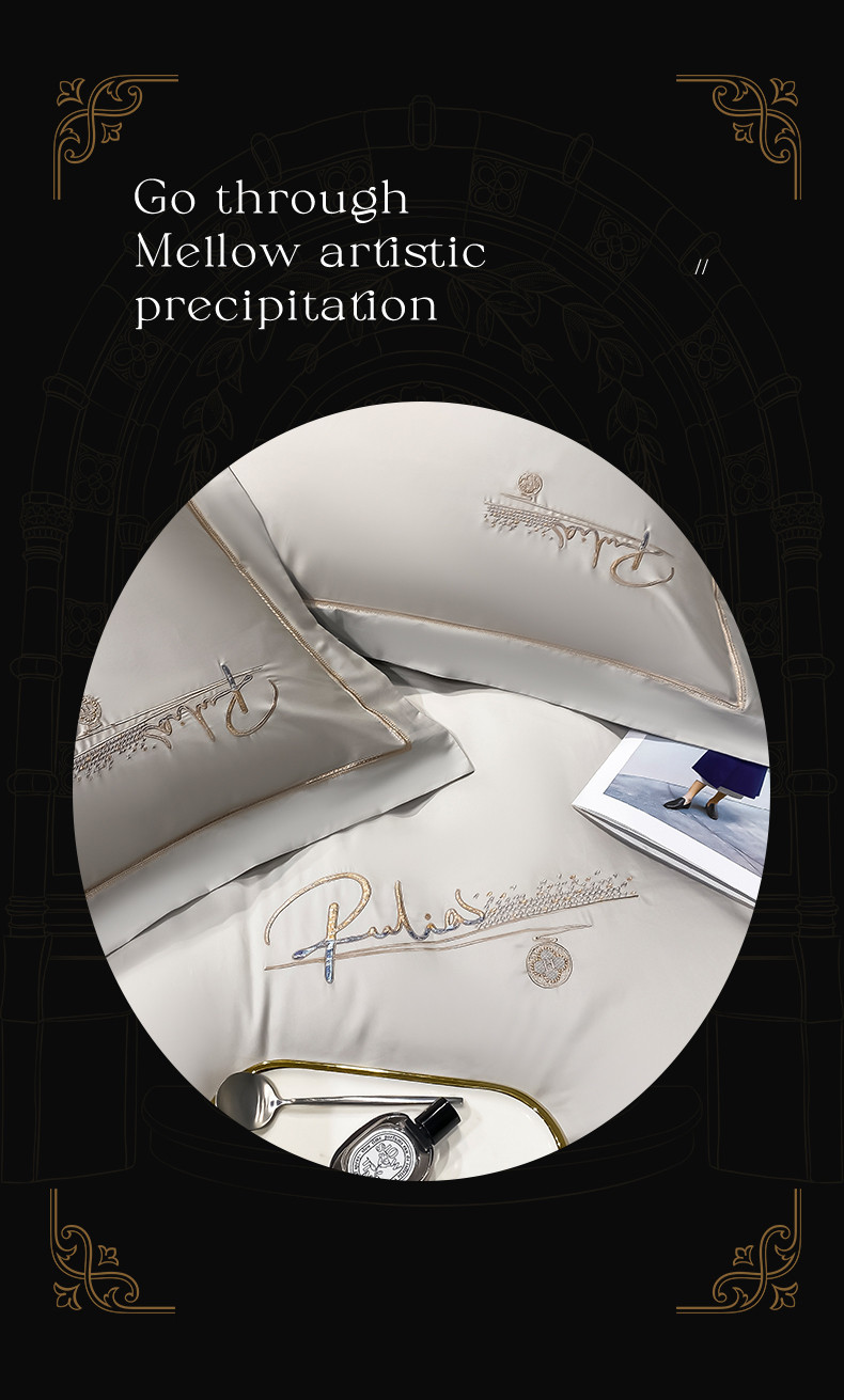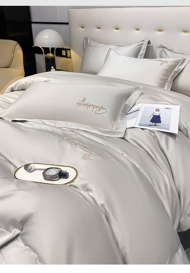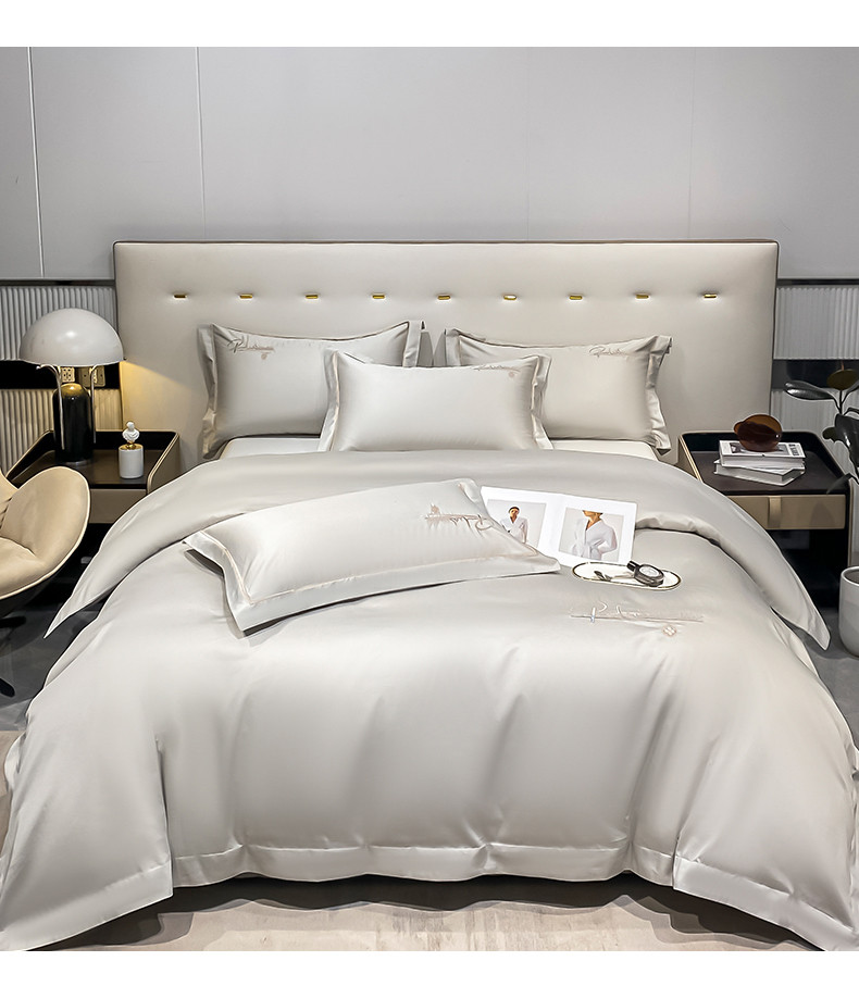 曼秀琳 2023新款A类60s长绒棉刺绣款四件套-爱尚系列 爱尚-芝士灰