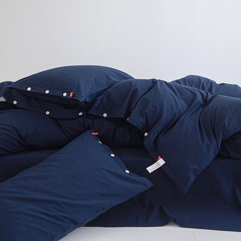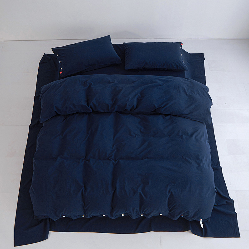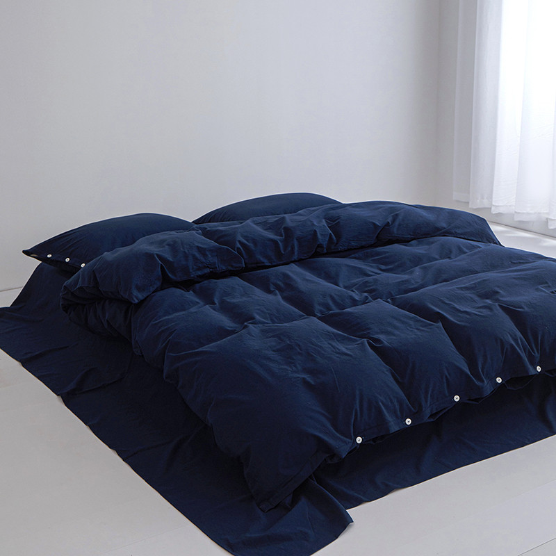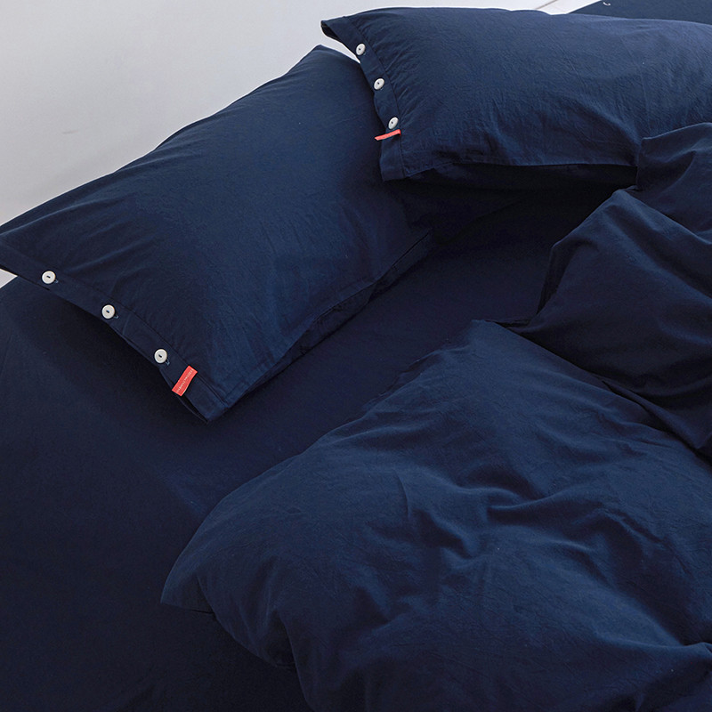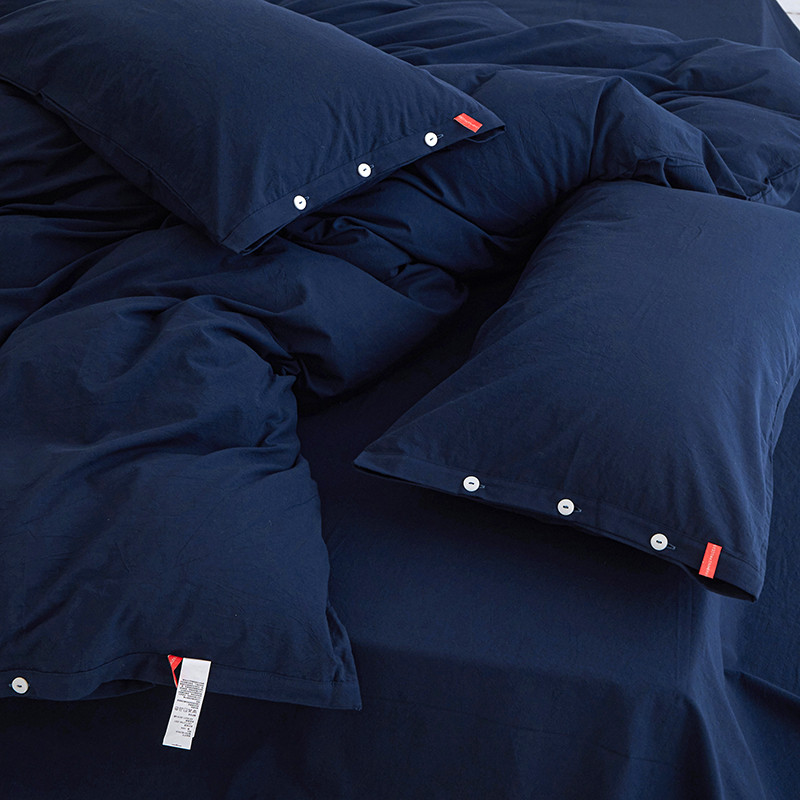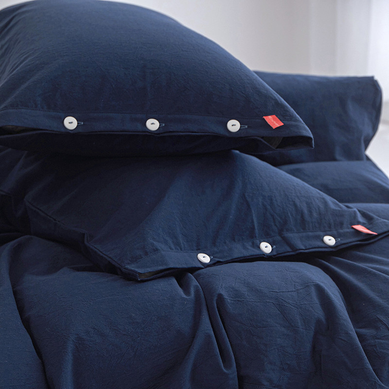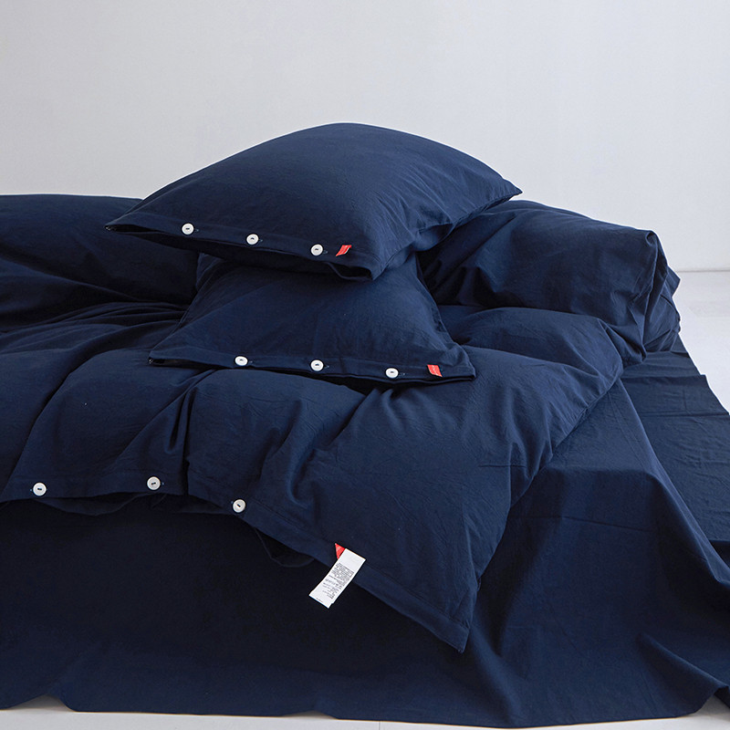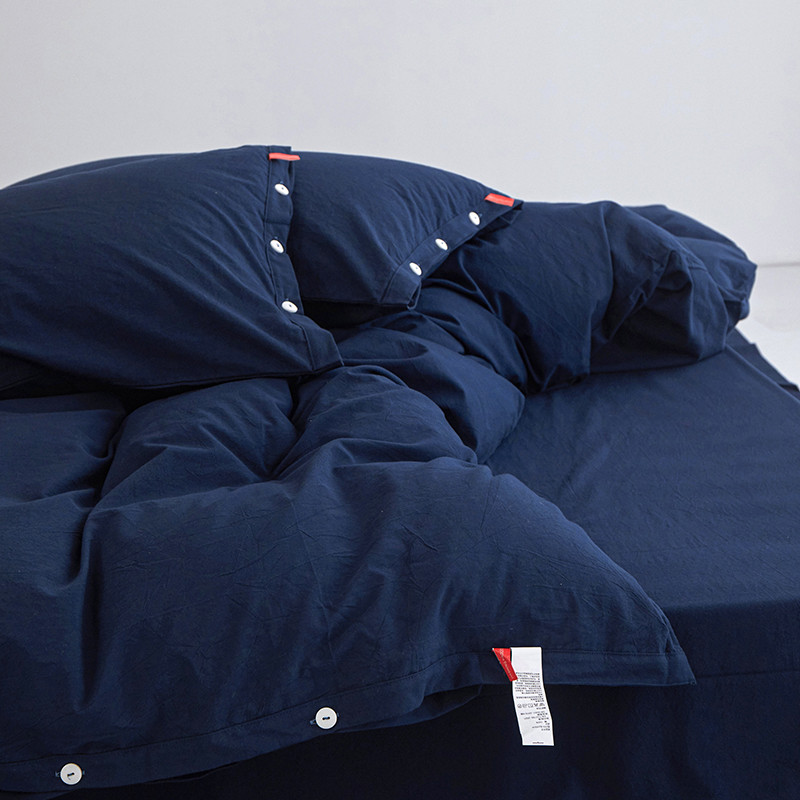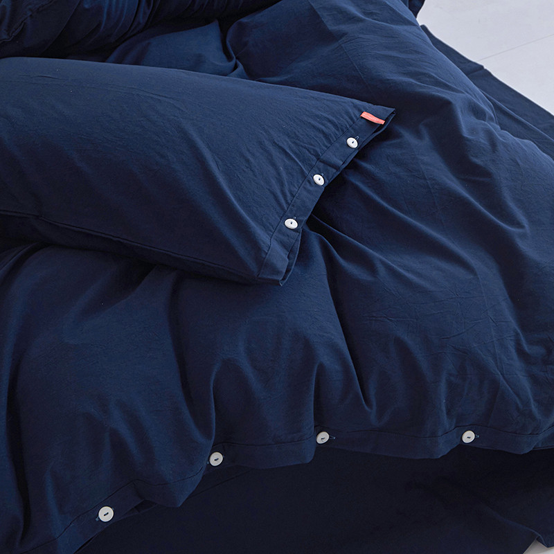 当前位置: 91家纺网 > 商品网购 > 床品套件 > 四件套 > 全棉普通四件套 > 安莱生活 2023年水洗棉全棉色经色纬高支高密纽扣款工艺四件套 藏青