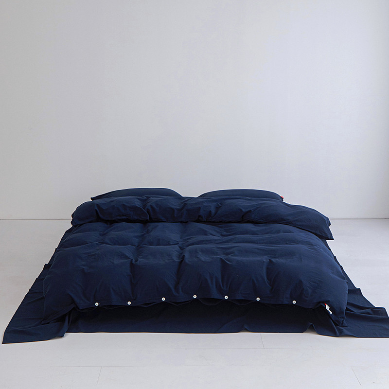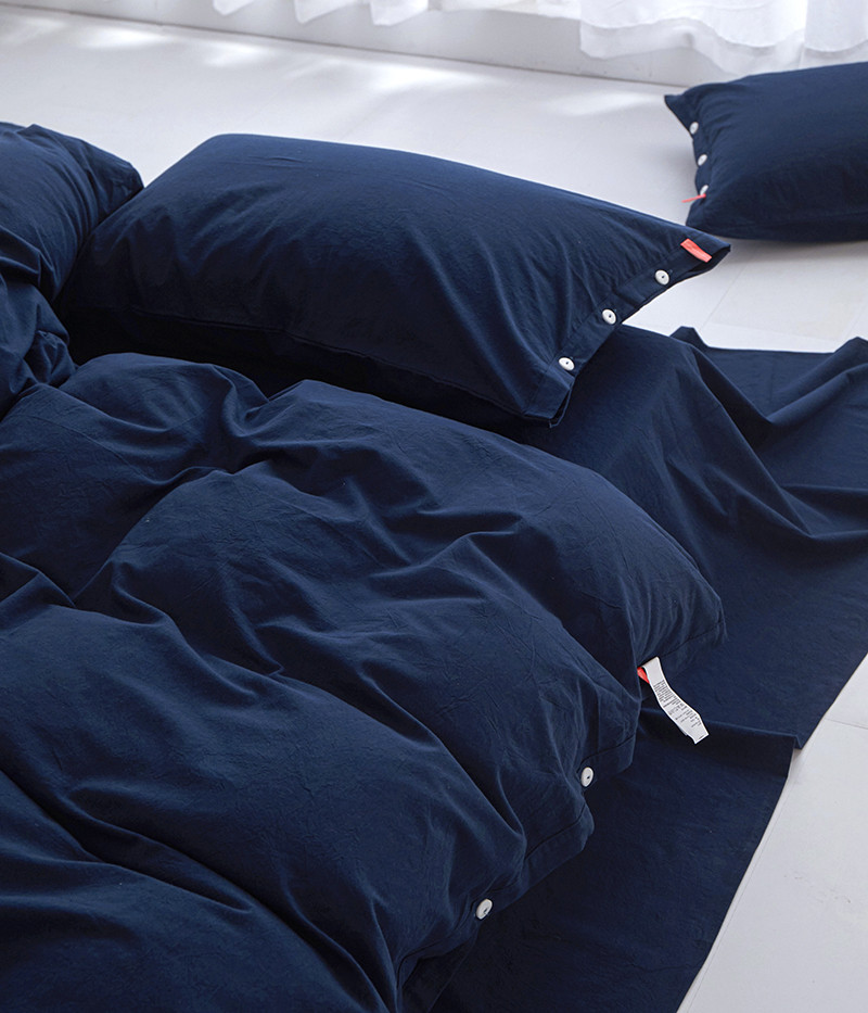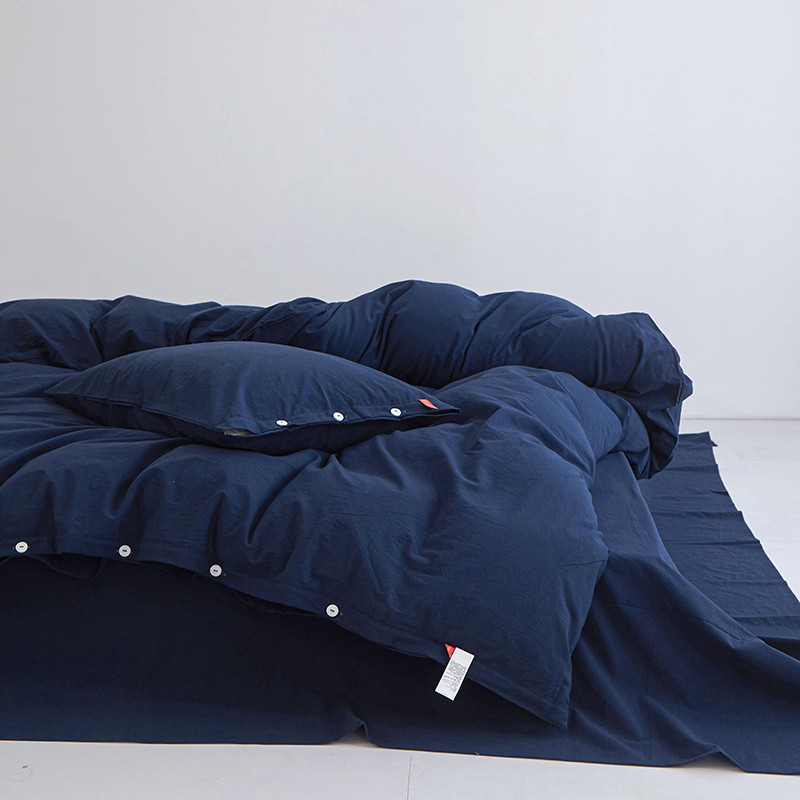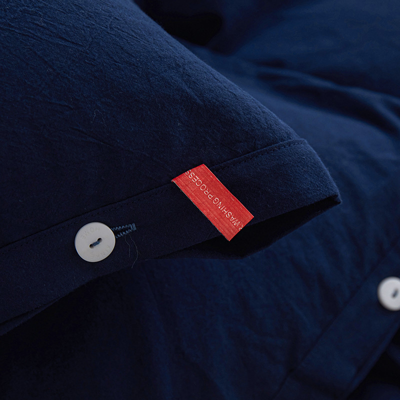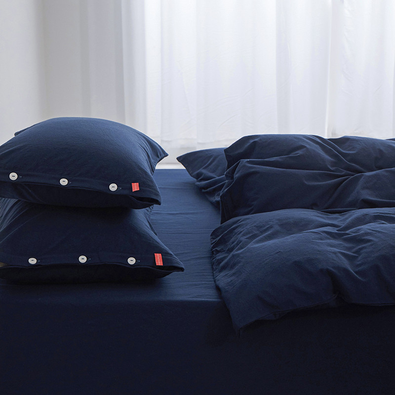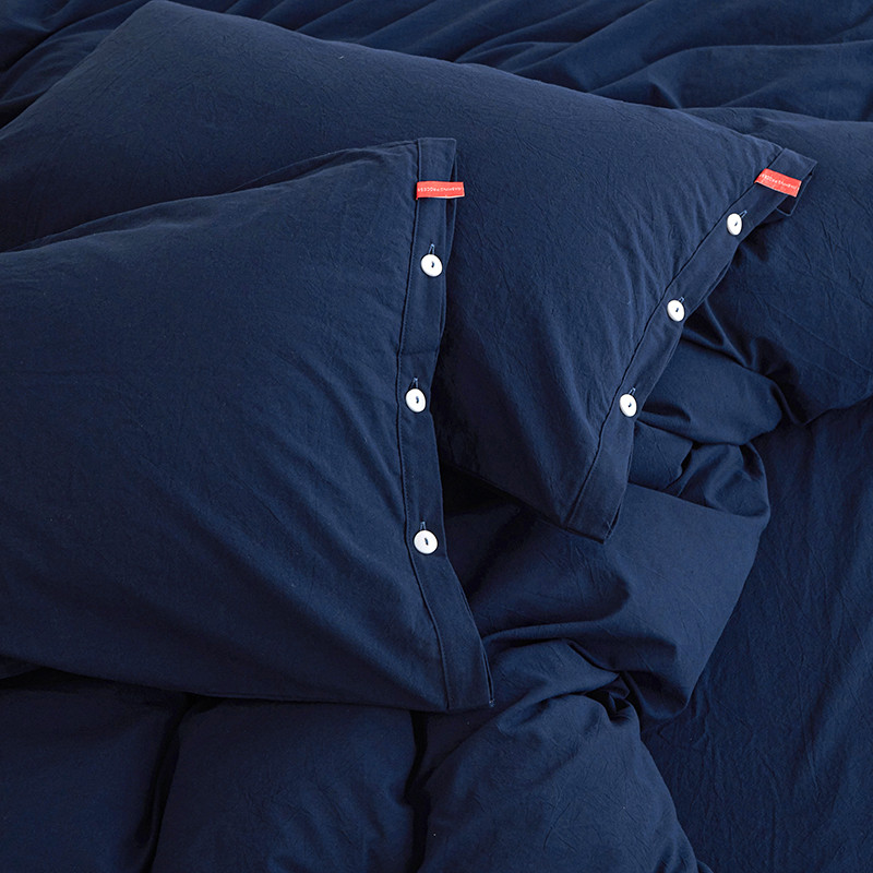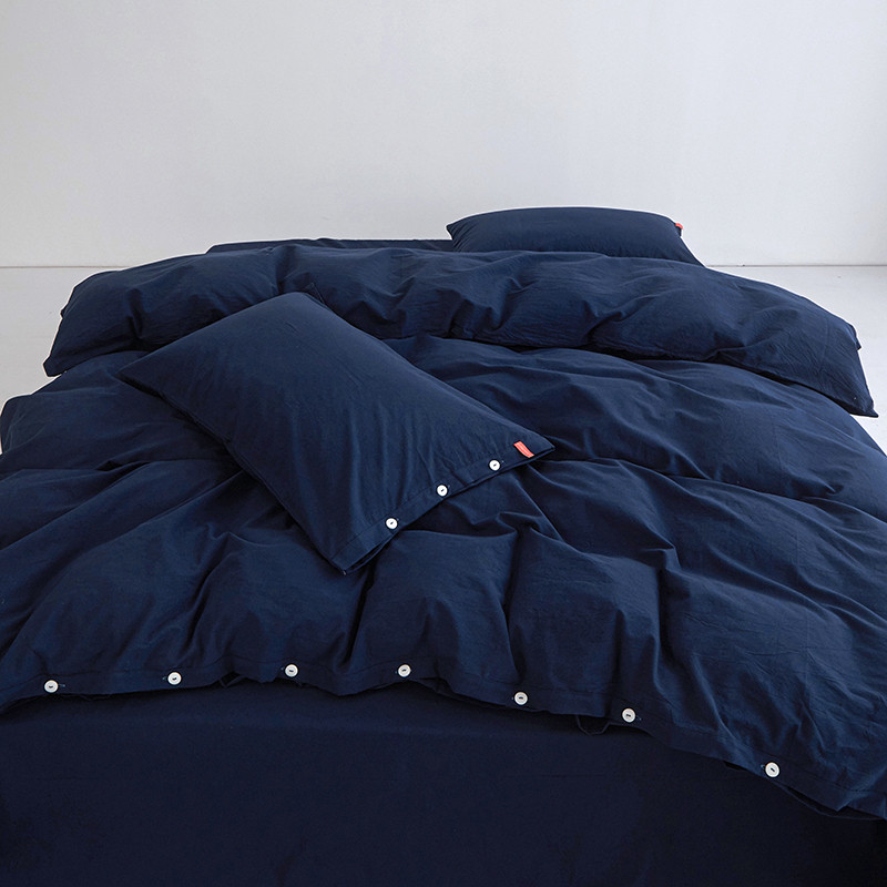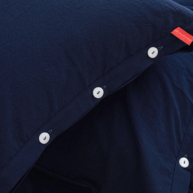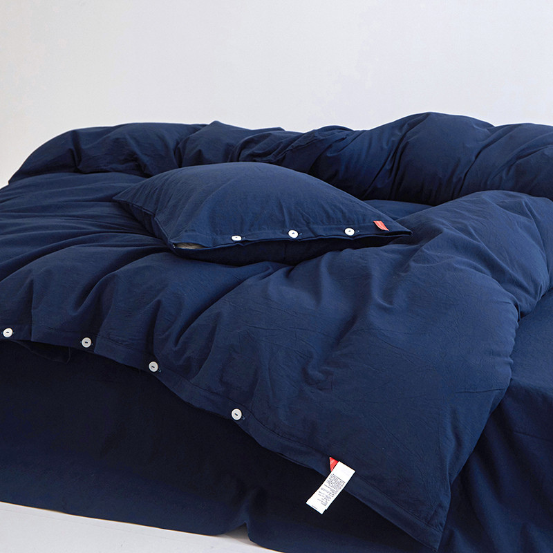 当前位置: 91家纺网 > 商品网购 > 床品套件 > 四件套 > 全棉普通四件套 > 安莱生活 2023年水洗棉全棉色经色纬高支高密纽扣款工艺四件套 藏青