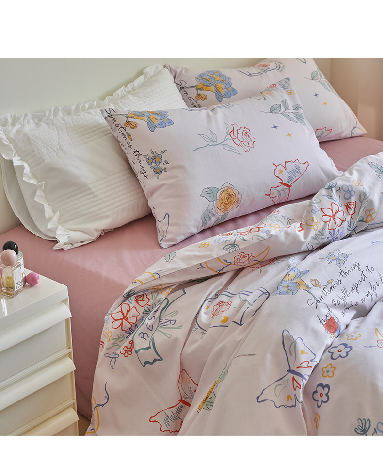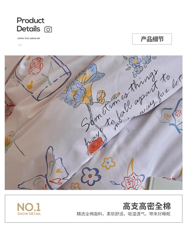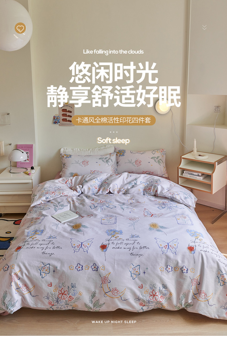 当前位置: 91家纺网 > 商品网购 > 床品套件 > 四件套 > 全棉普通四件套 > 窝米 2023新款13370全棉卡通风系列四件套 浮蝶儿粉