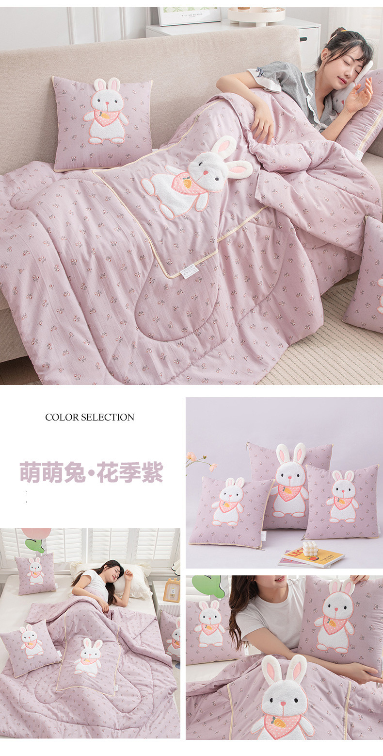 (总)翰轩家居 2025新款卡通牛奶绒贴布绣抱枕被-梦幻兔系列,梦幻兔-高级灰,梦幻兔-咖啡棕,梦幻兔-魔芋紫,梦幻兔-天空蓝,梦幻兔-樱花粉