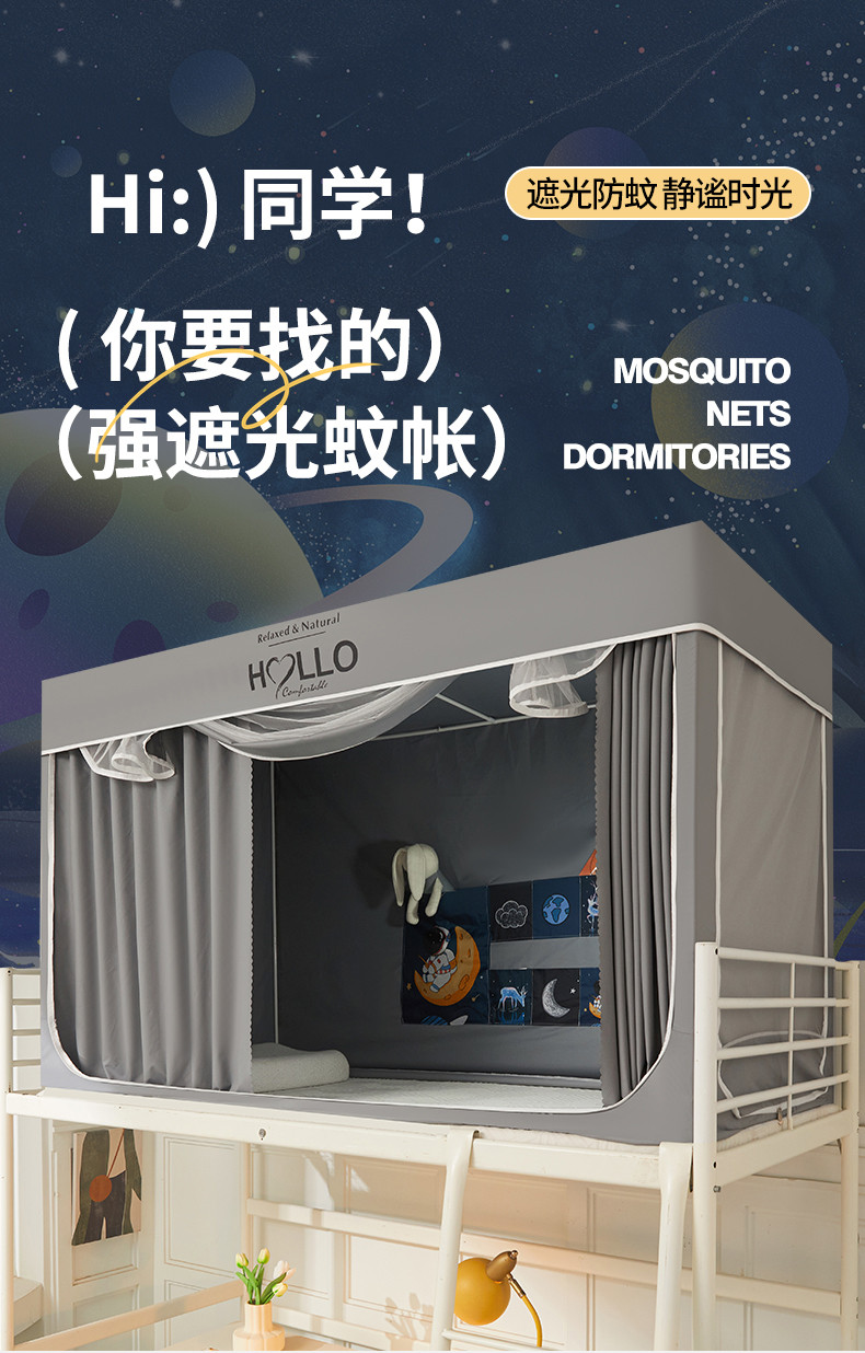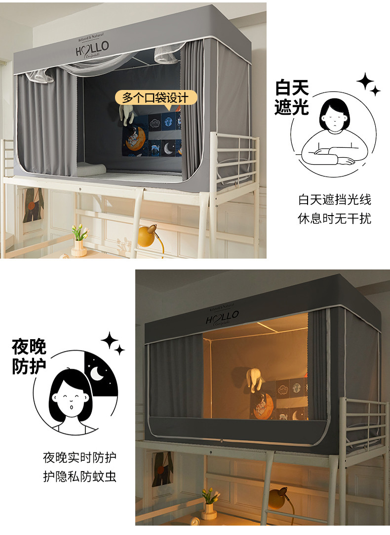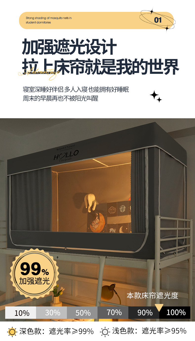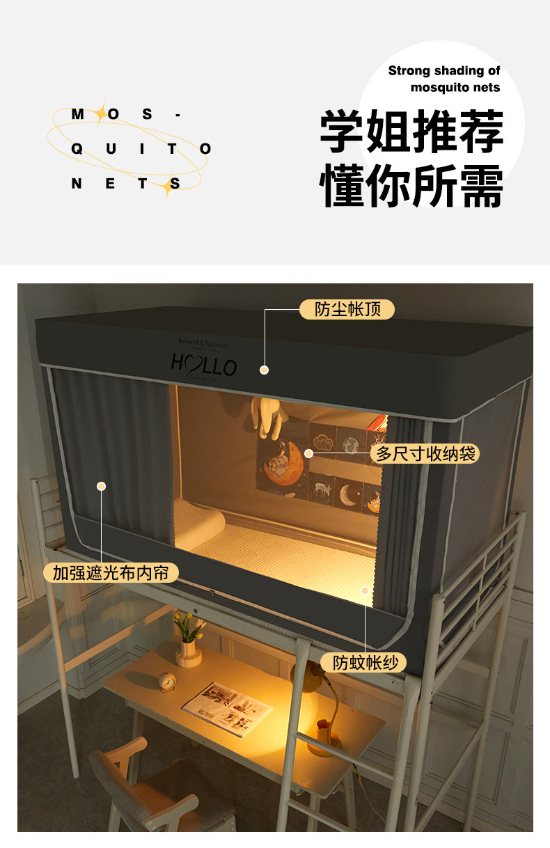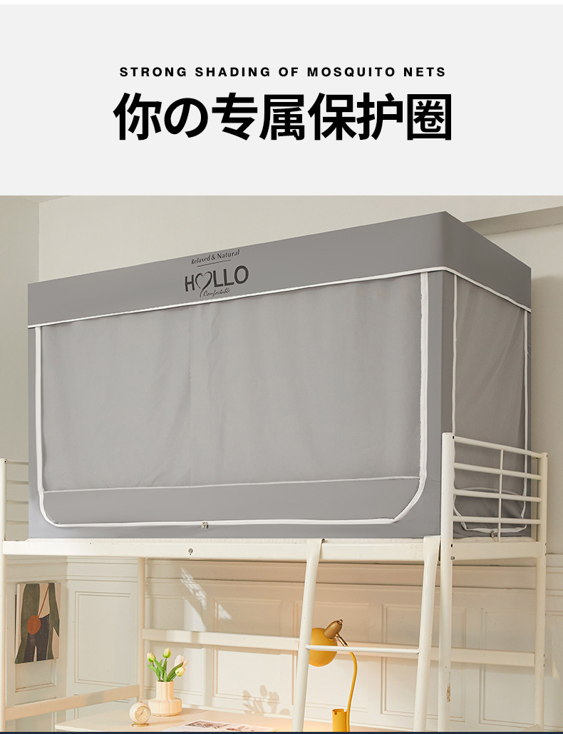 商品名称:世婕 2025新款超强涂层遮光学生床帘式蚊帐 涂层全灰