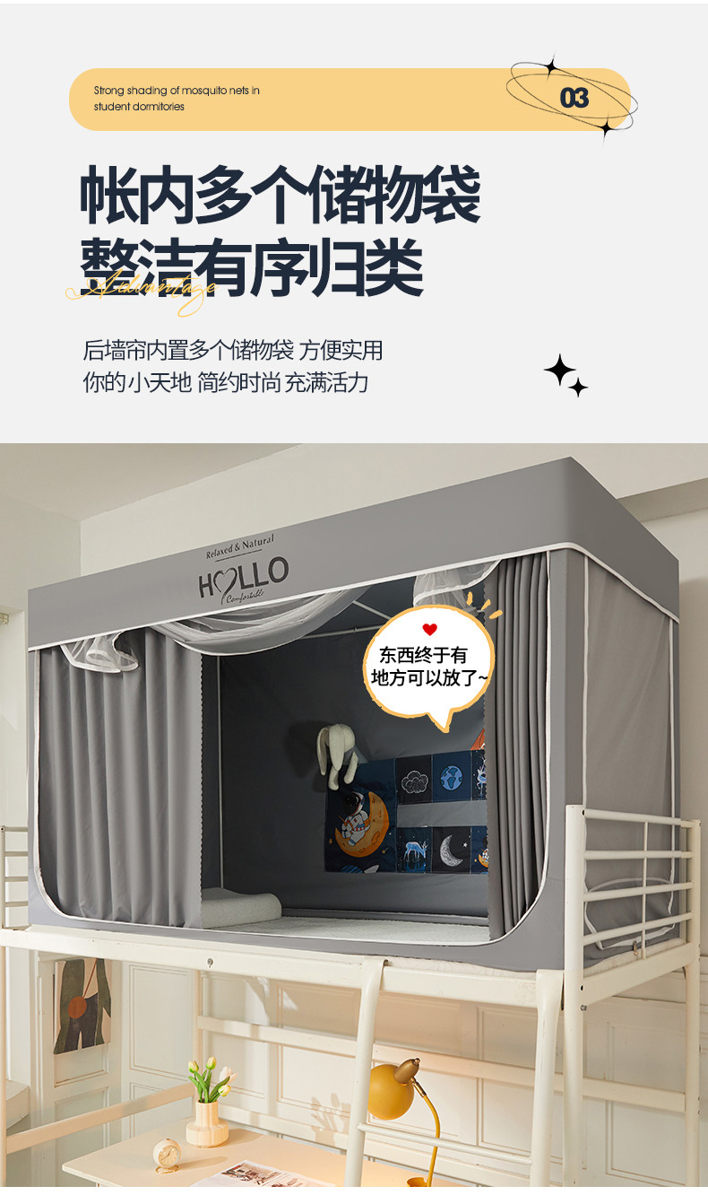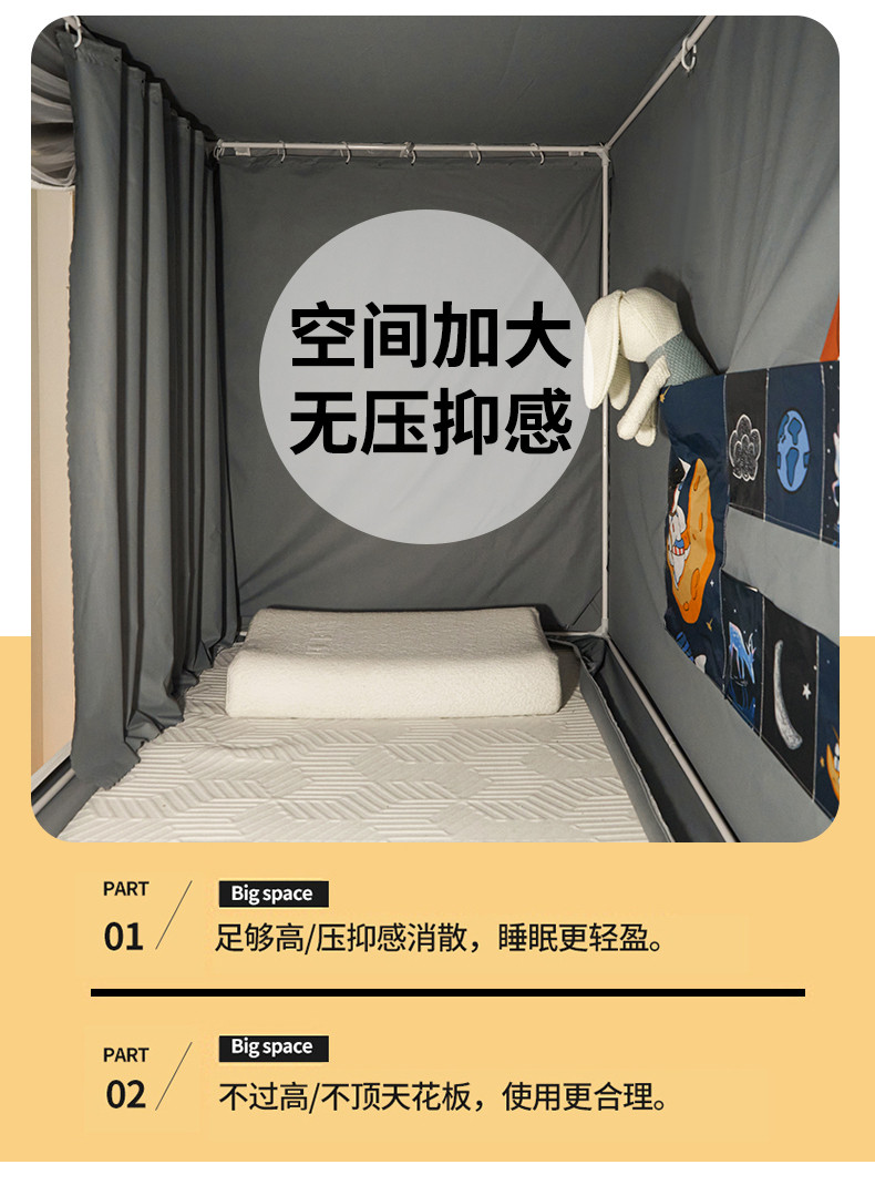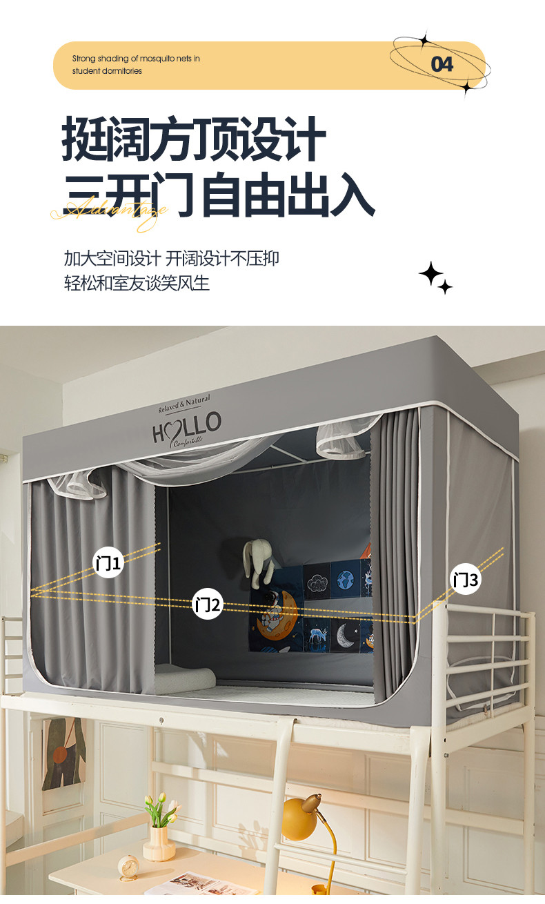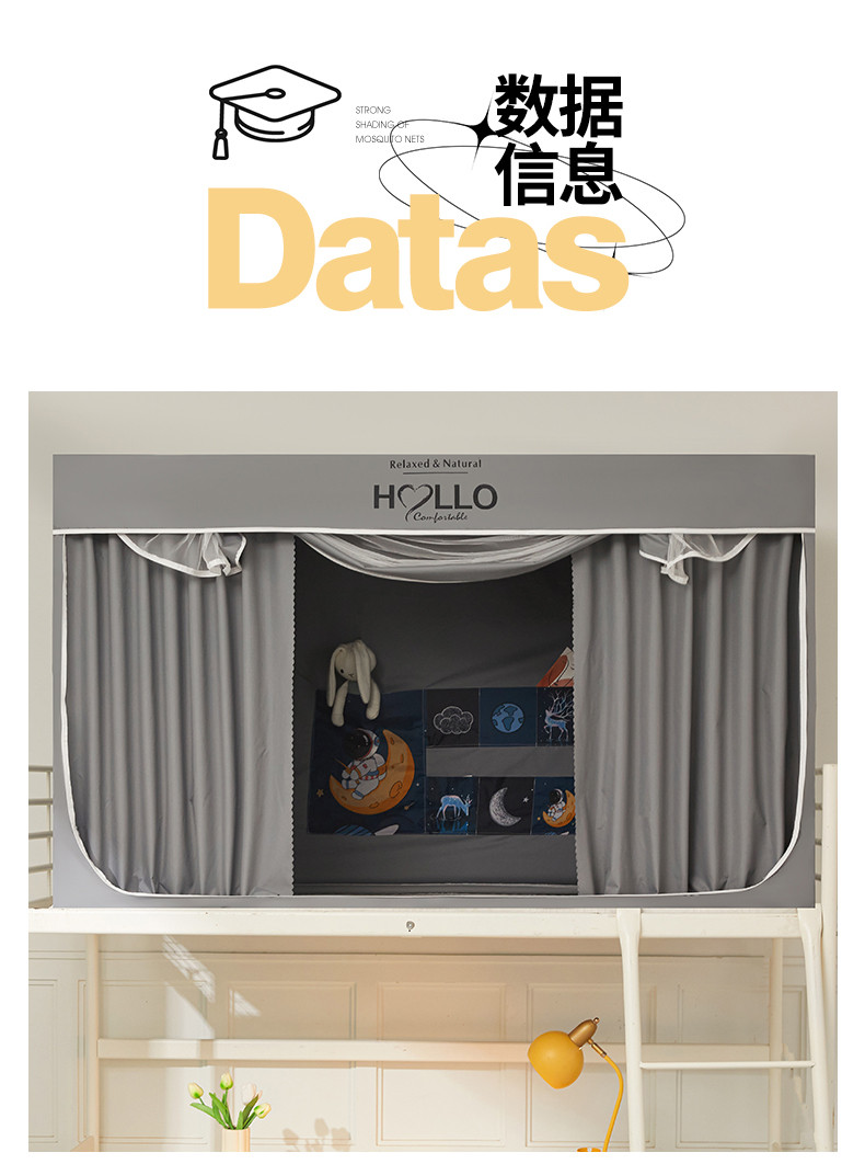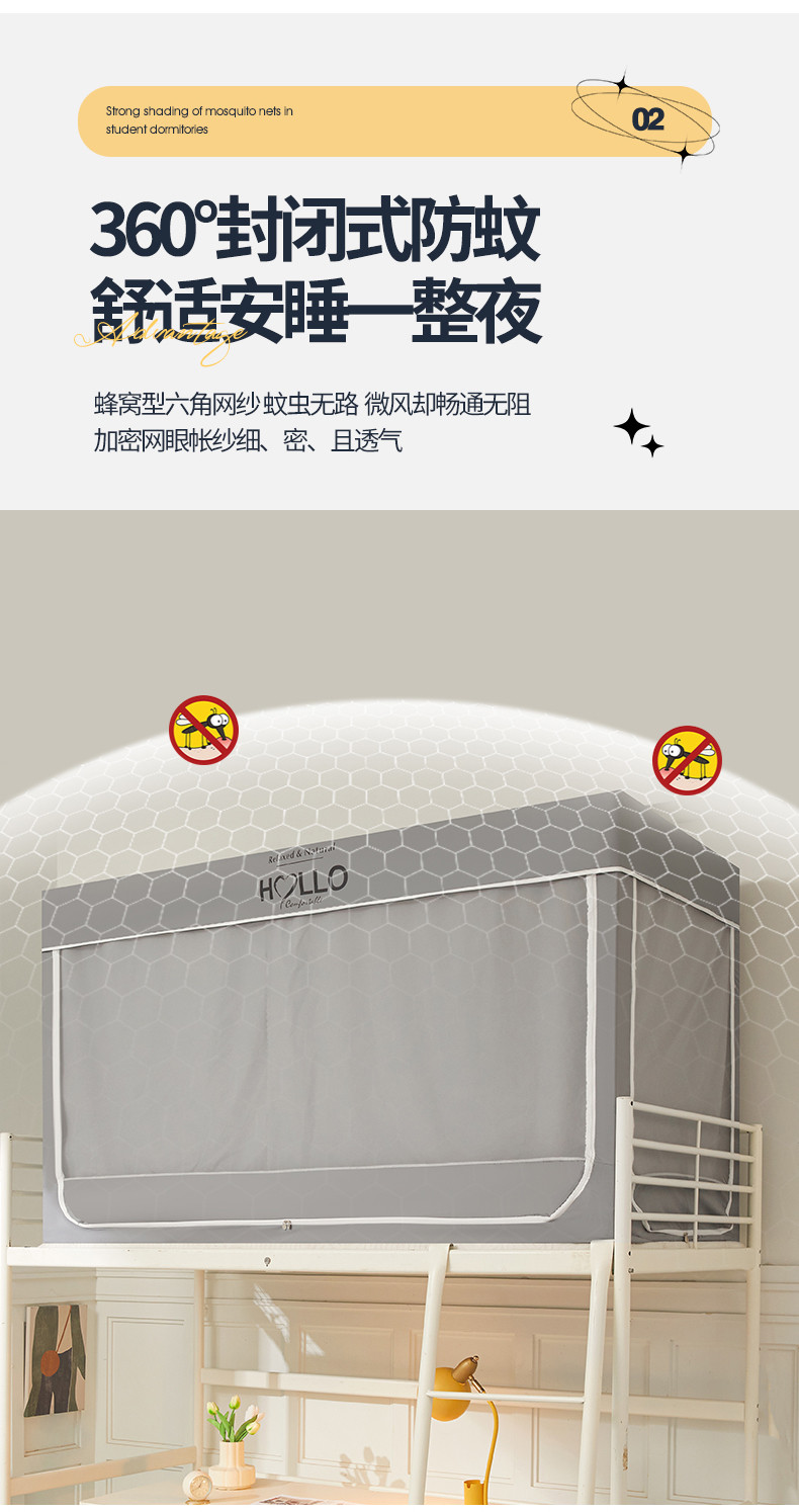 商品名称:世婕 2025新款超强涂层遮光学生床帘式蚊帐 涂层全灰