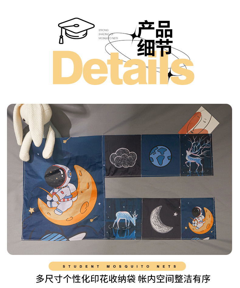 (总)世婕 2025新款学生床幔超强涂层遮光学生蚊帐宿舍蚊帐床帘式蚊帐,兔仙子,探索宇宙,涂层藏青,涂层全粉,涂层全灰,星月传奇,一路有你