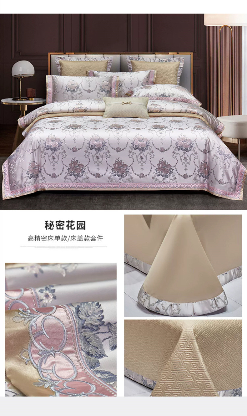 当前位置: 91家纺网 > 商品网购 > 床品套件 > 四件套 > 提花四件套 > 嘉恋 2023新款欧式高精密绣边锦缎提花四六件套 秘密花园