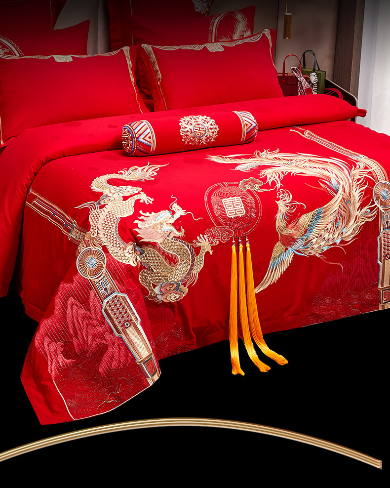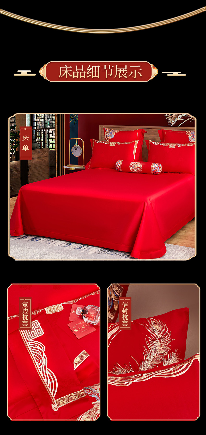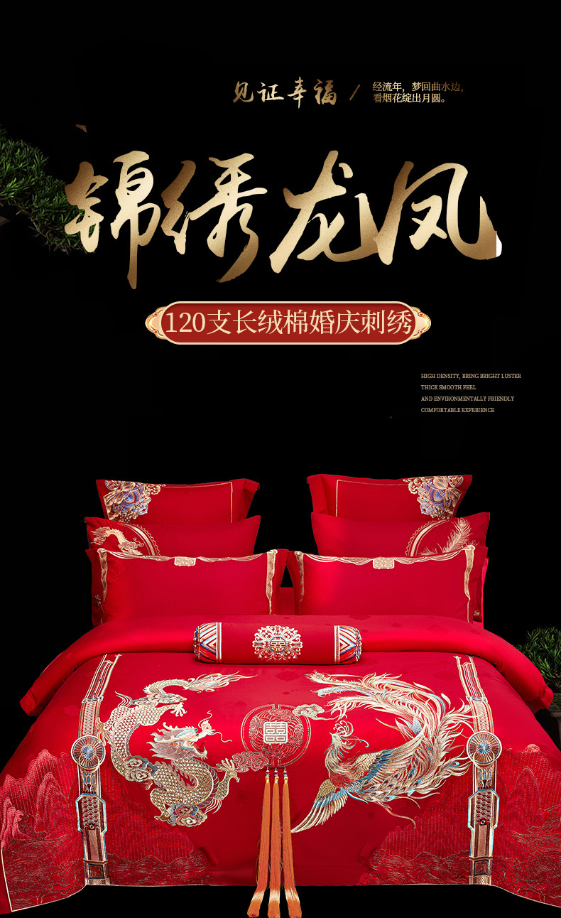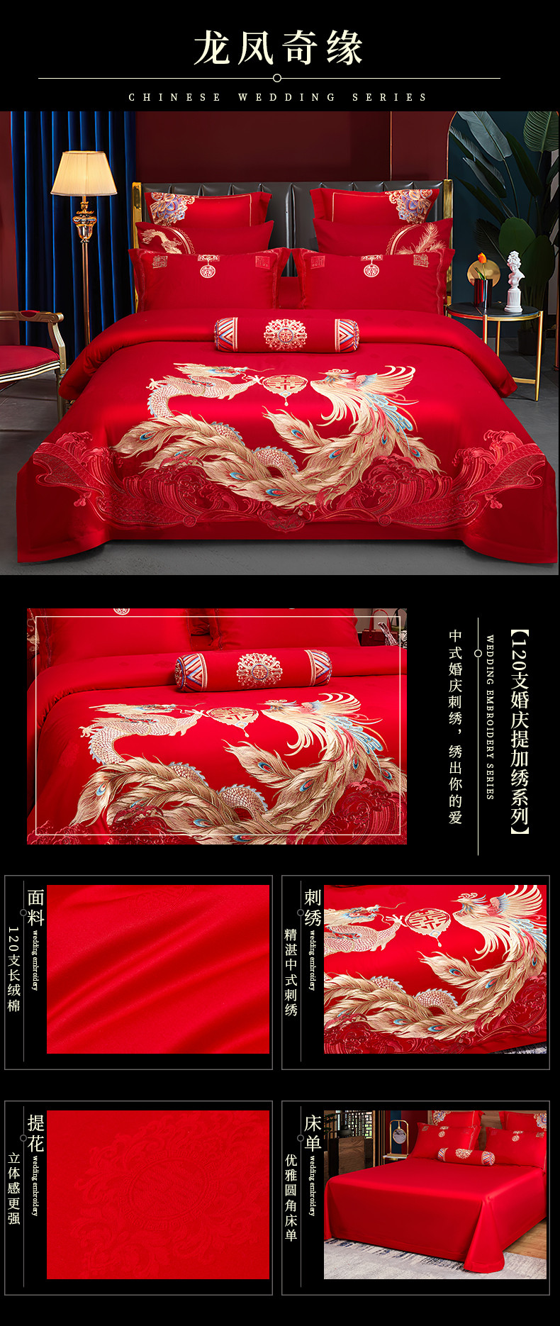 当前位置: 91家纺网 > 商品网购 > 床品套件 > 四件套 > 婚庆四件套 > 总玉雅家纺 2025新款120支长绒棉提花刺绣婚庆四件套结婚大红多件套
