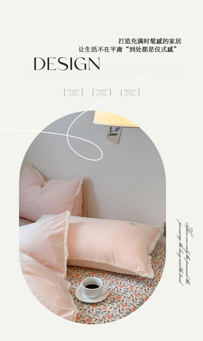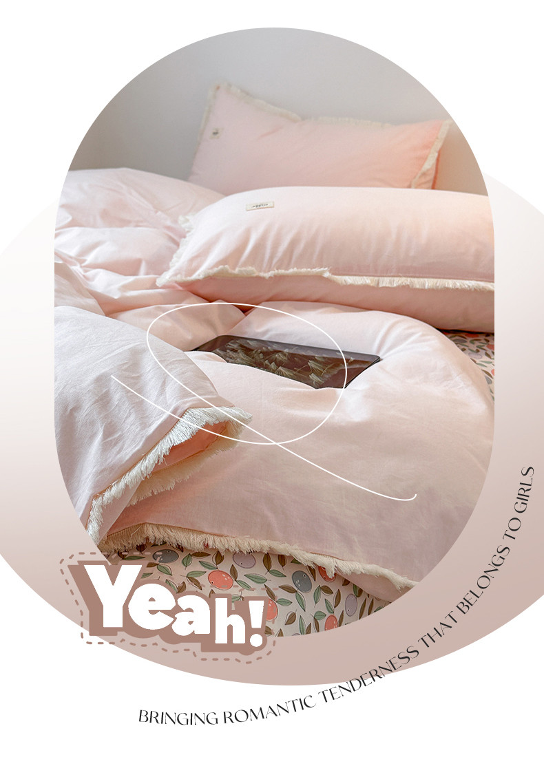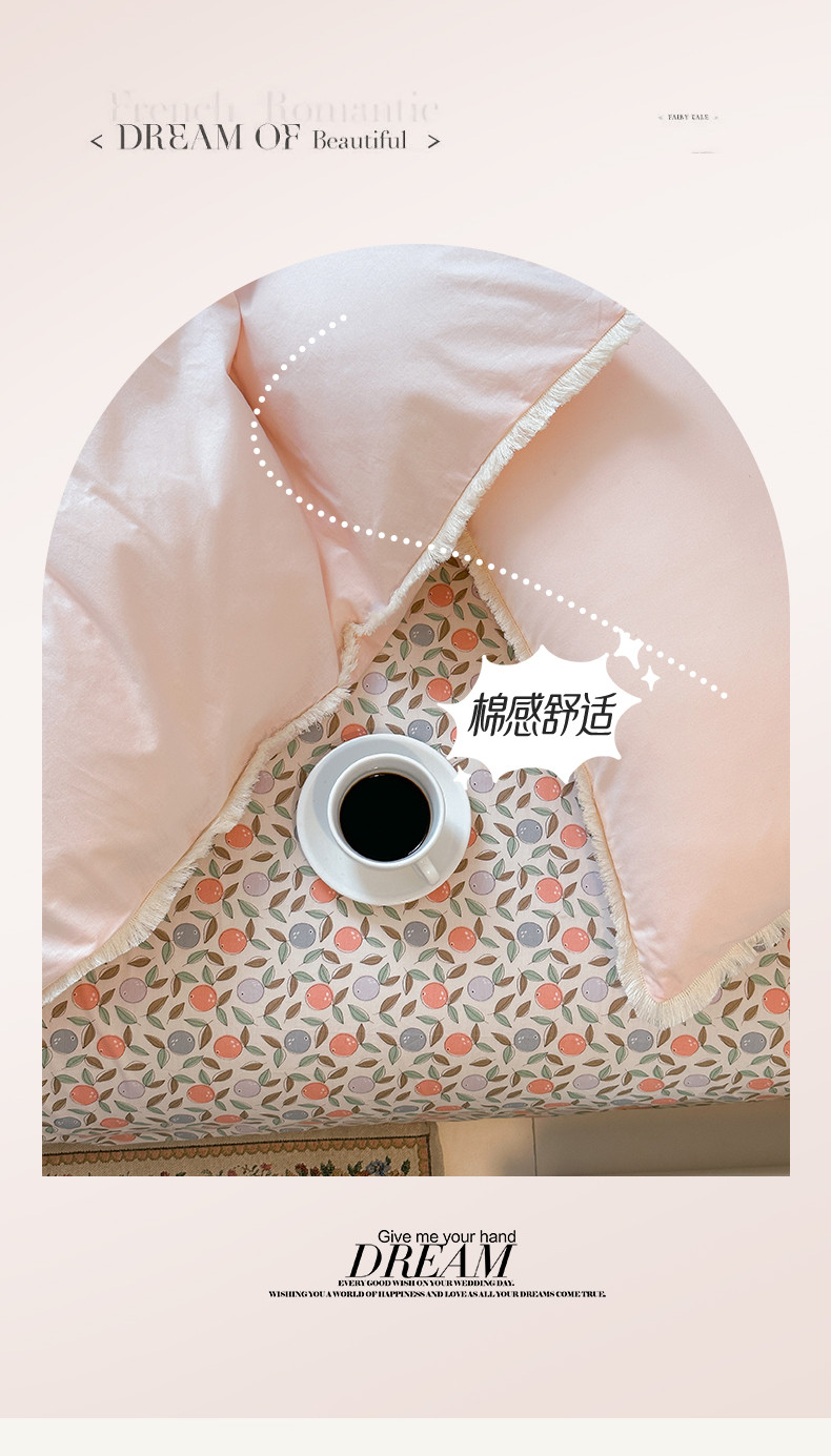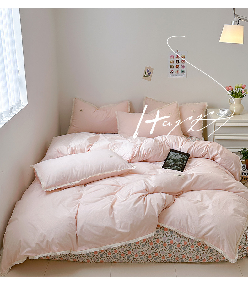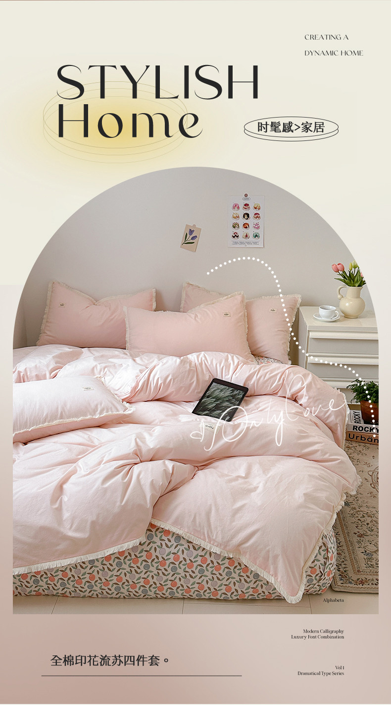 婳庭 2023新款全棉印花流苏四件套 粉墨