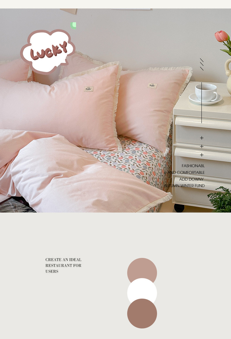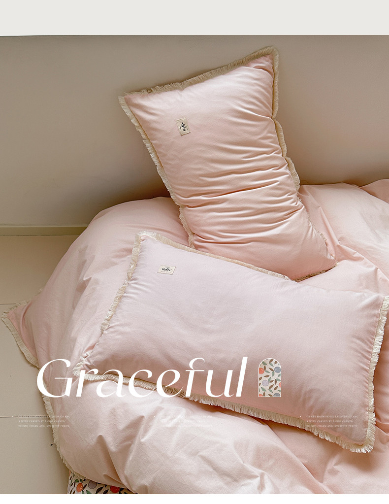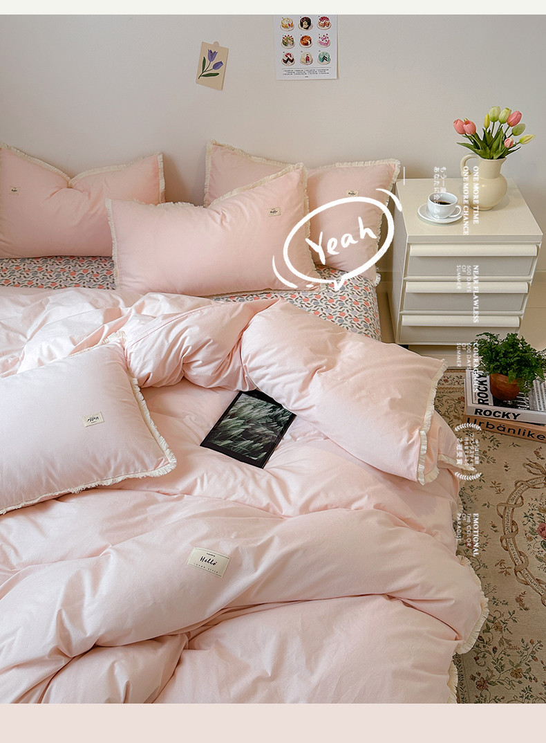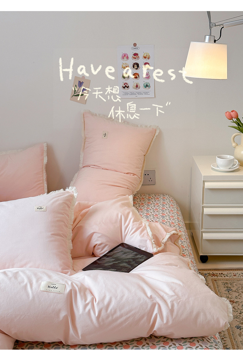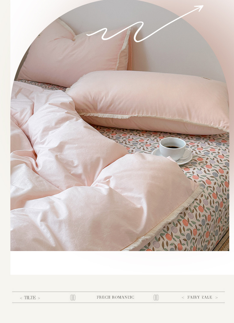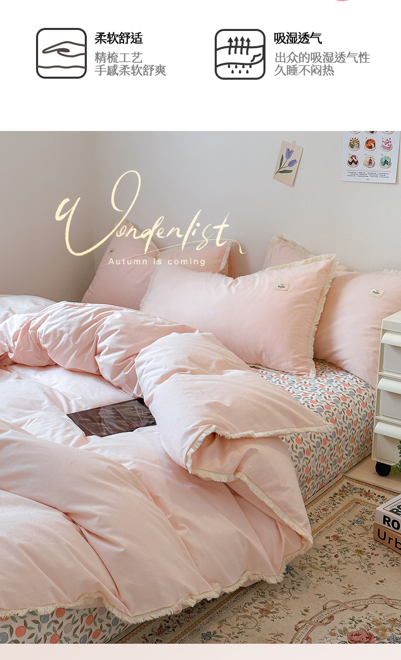 婳庭 2023新款全棉印花流苏四件套 粉墨