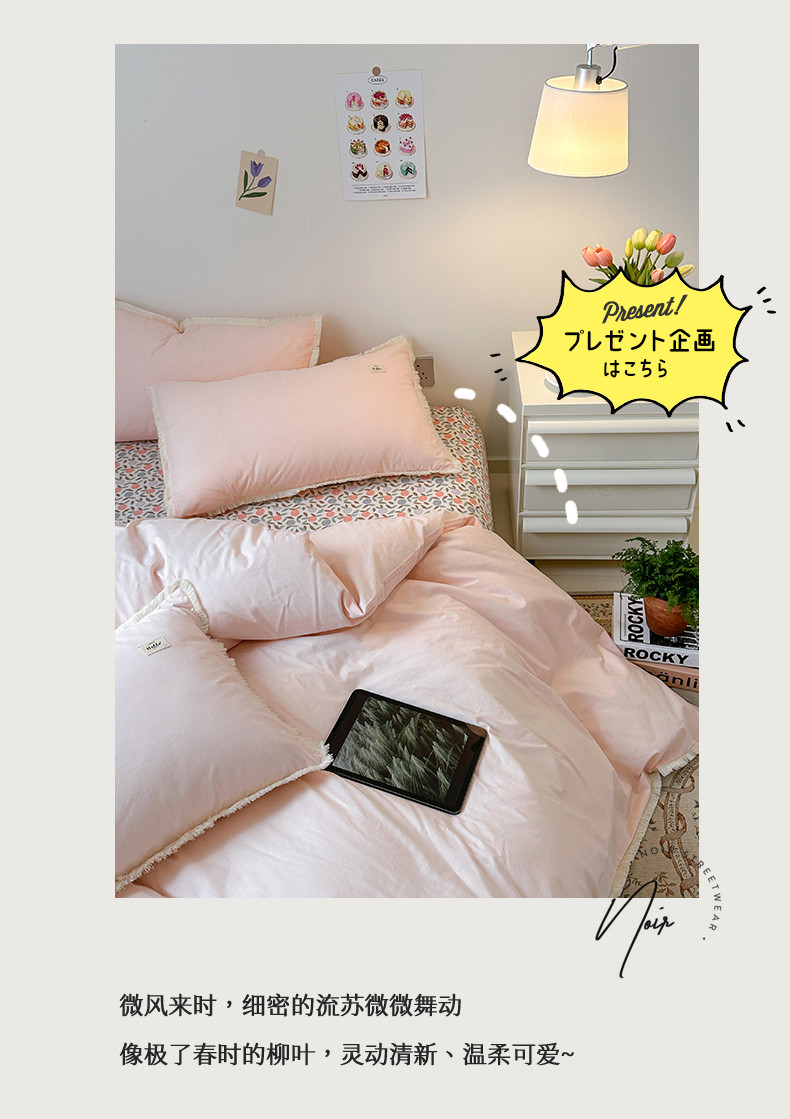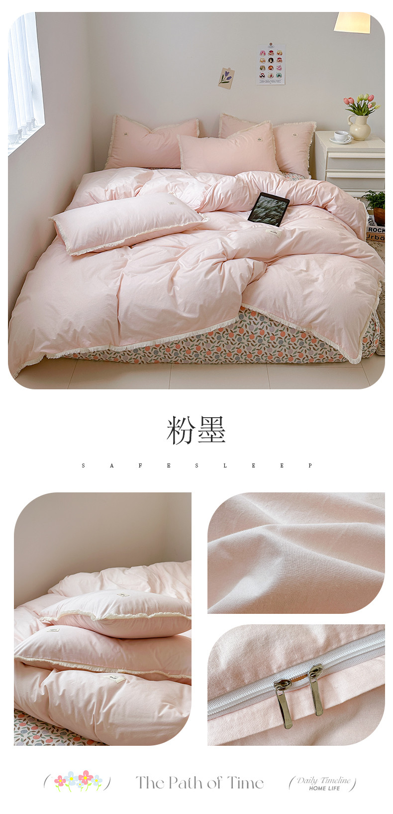 商品名称:婳庭 2023新款全棉印花流苏四件套 粉墨