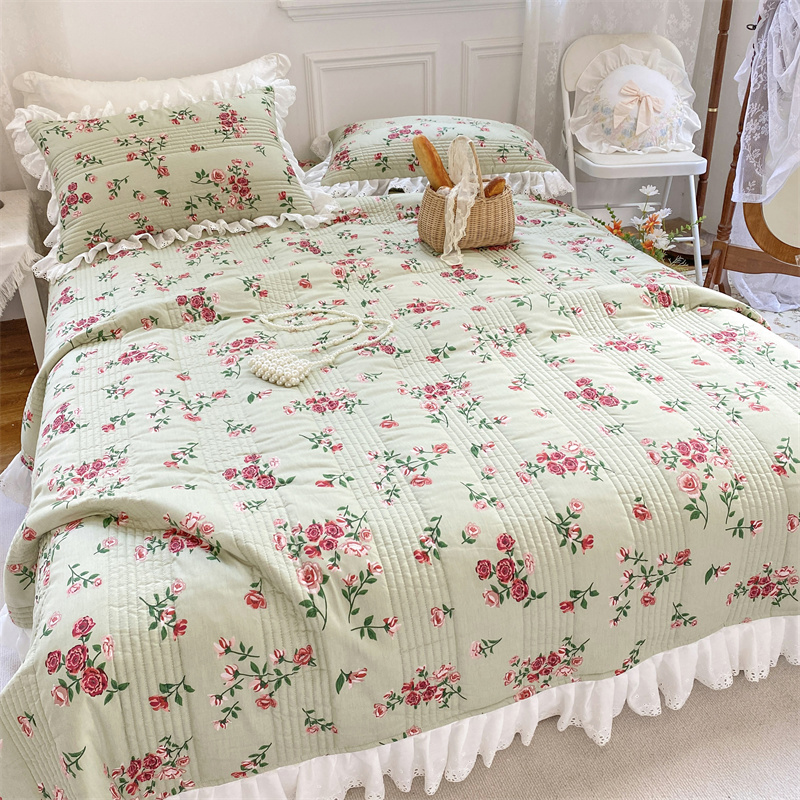 商品名称:菊上家纺 2023秋冬新品法式花边全棉单床盖 伊甸园
