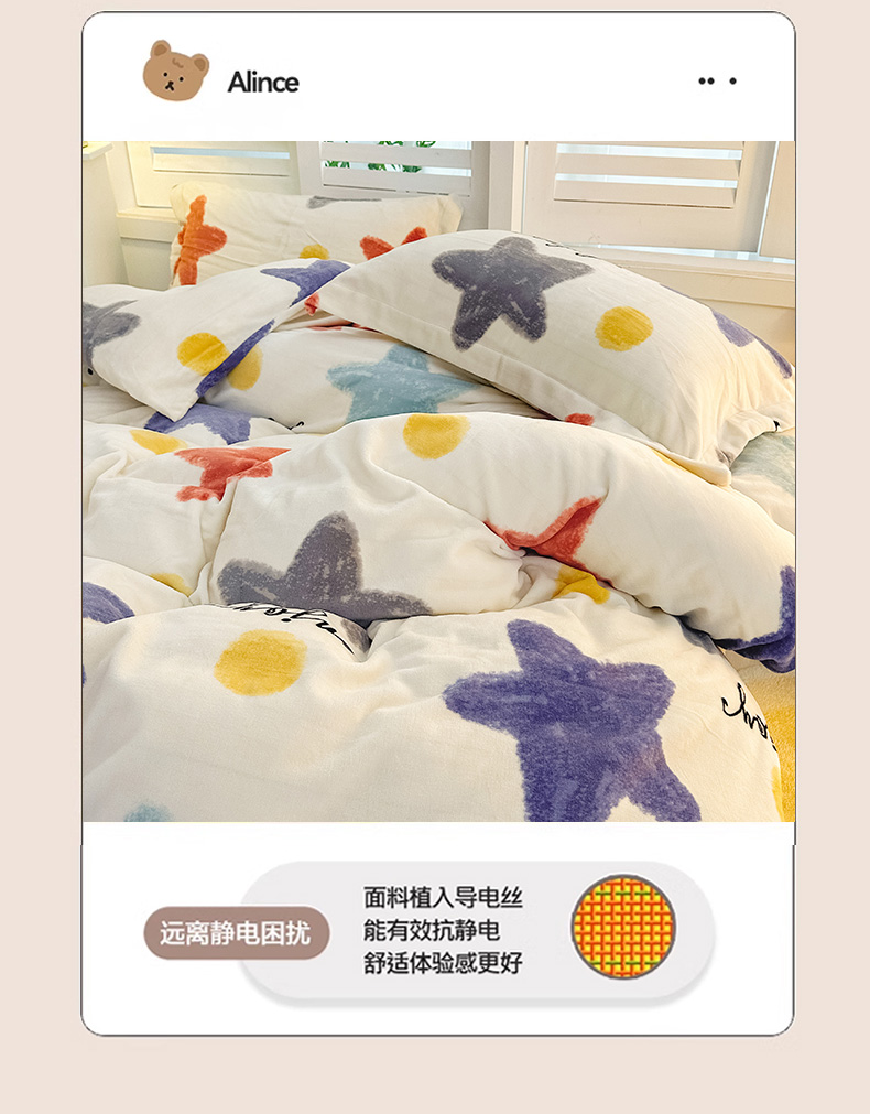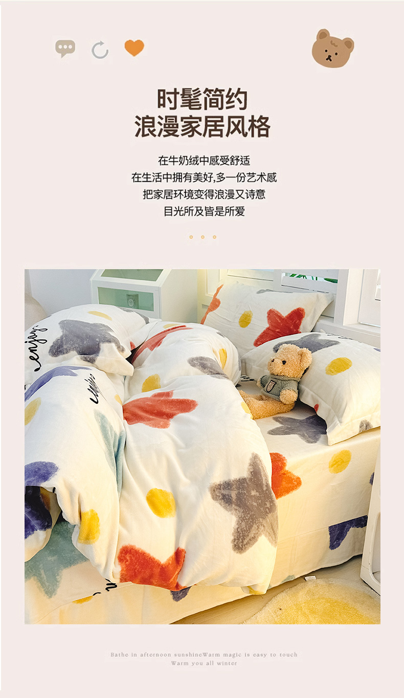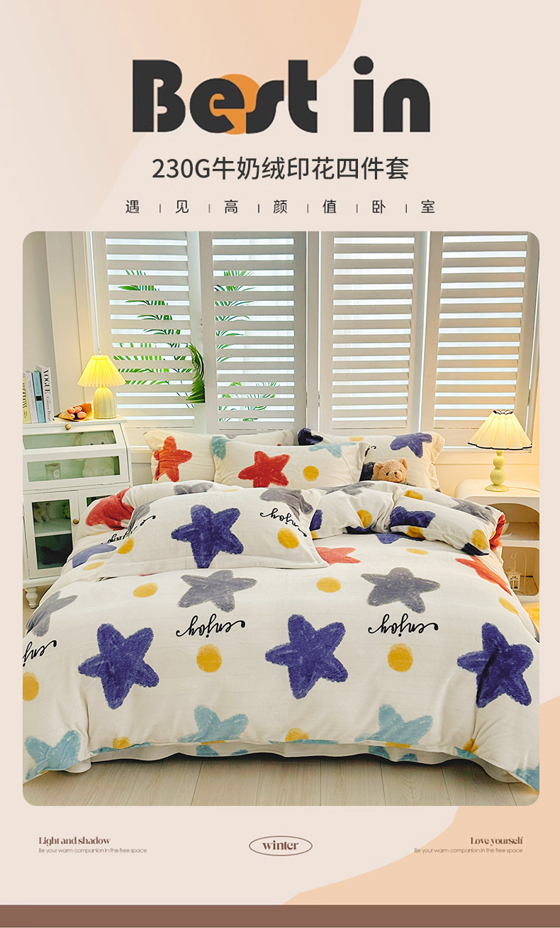 当前位置: 91家纺网 > 商品网购 > 床品套件 > 四件套 > 牛奶绒四件套 > 新款230克高克重印花牛奶绒四件套定做定制尺寸 星空