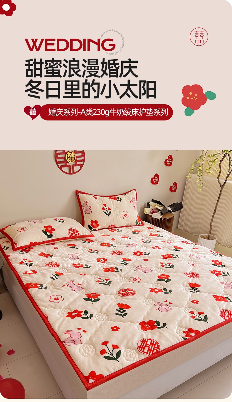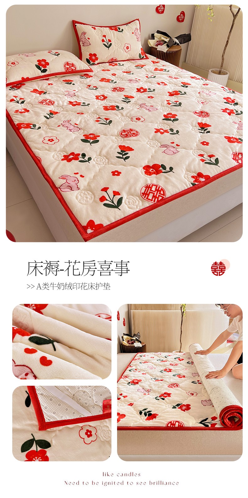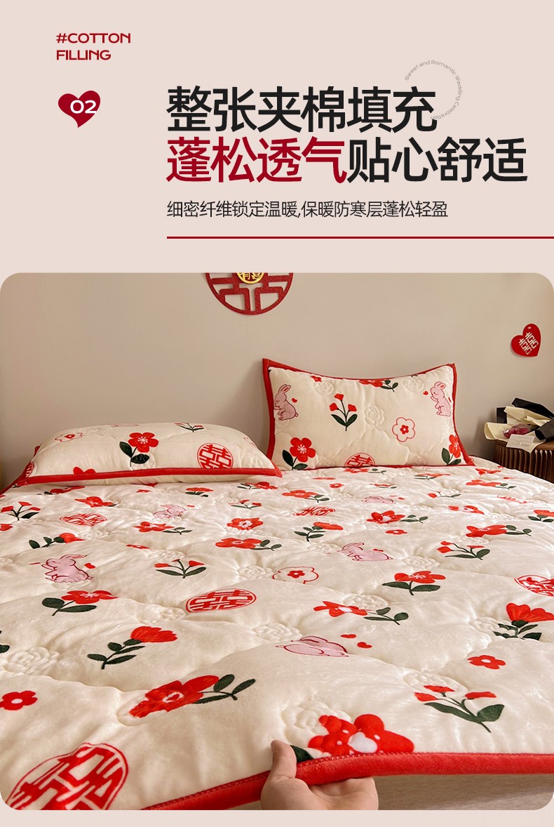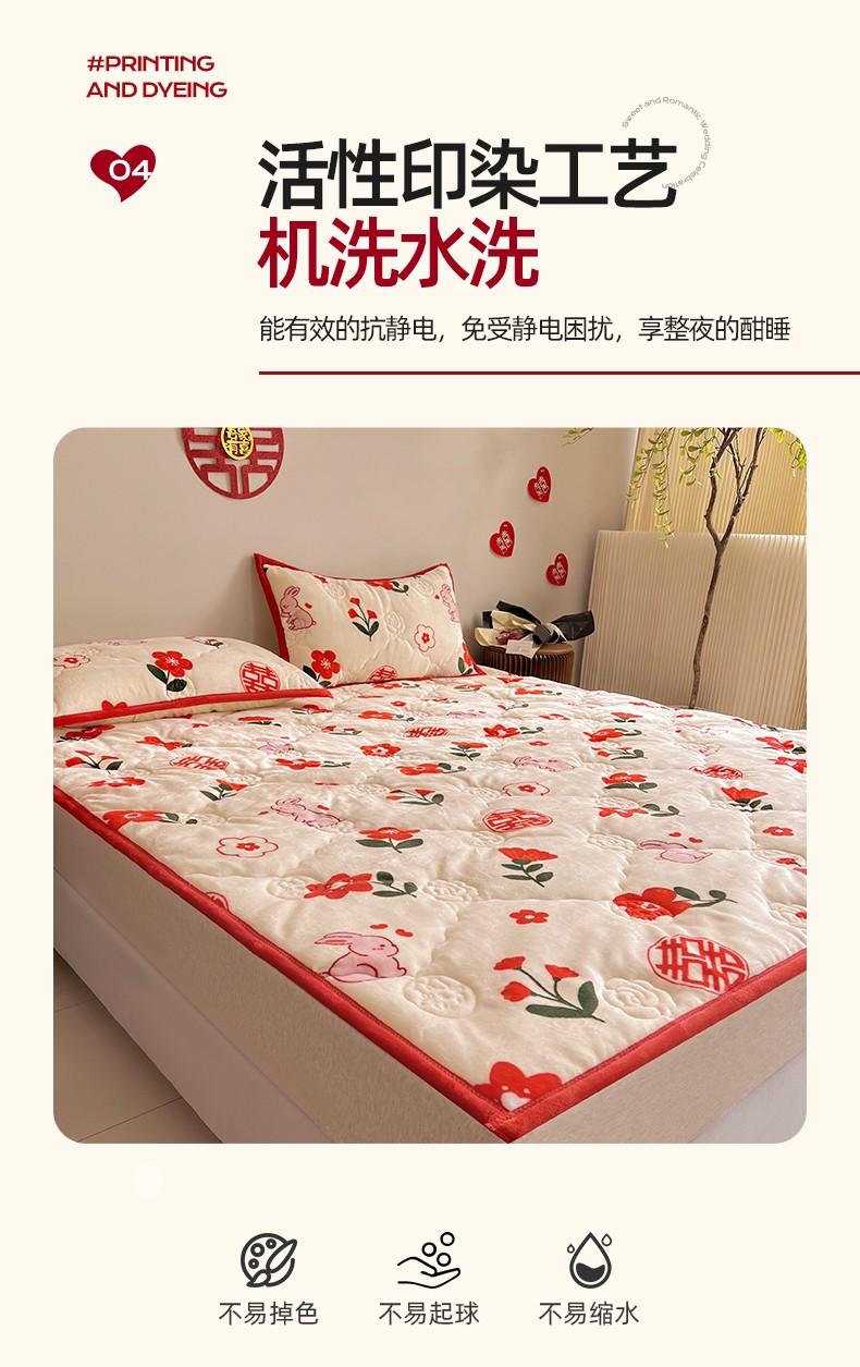 兄弟坊 2023新款婚庆牛奶绒床护垫薄床垫 床褥-花房喜事