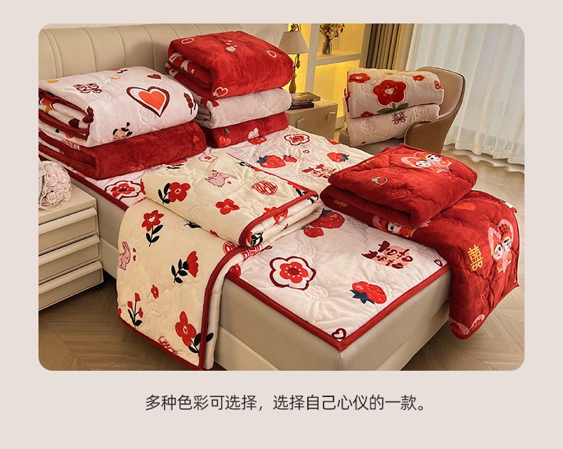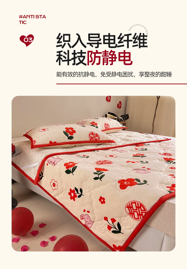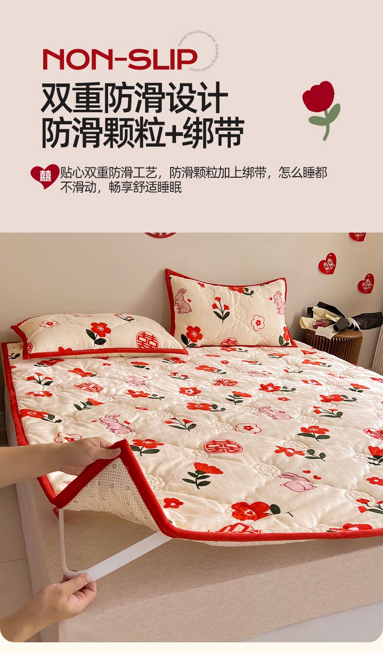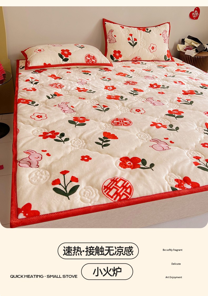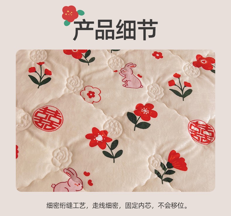 兄弟坊 2023新款婚庆牛奶绒床护垫薄床垫 床褥-花房喜事