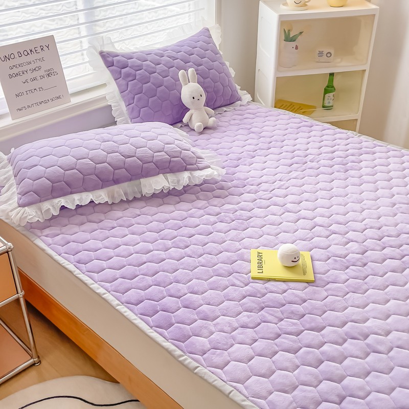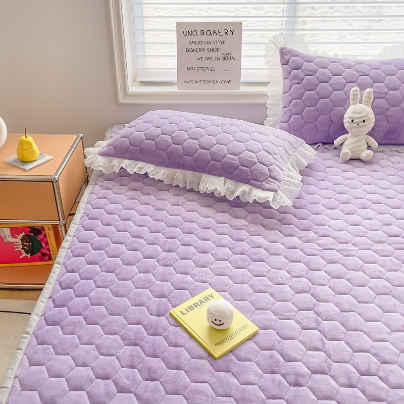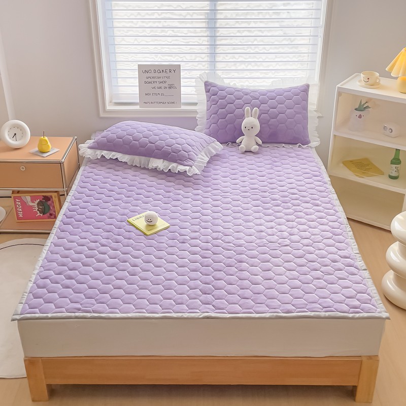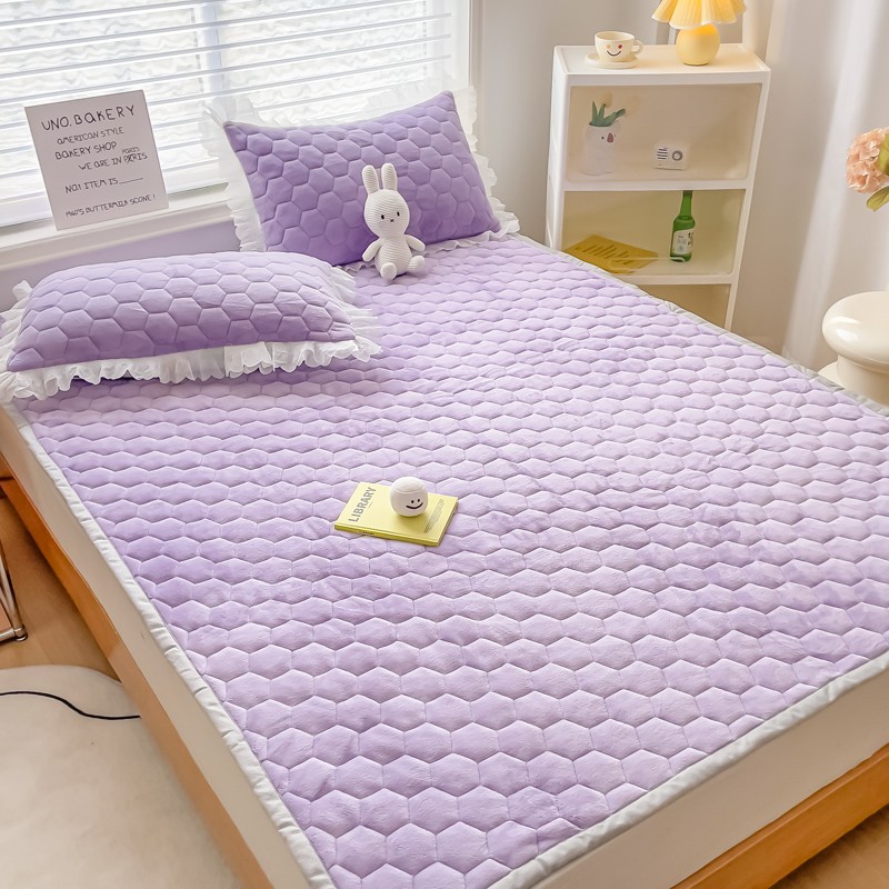 缦卡琳 2023新款夹棉牛奶绒薄床垫 轻奢紫