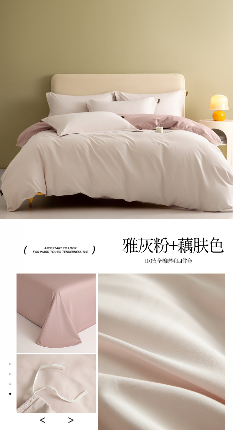 当前位置: 91家纺网 > 商品网购 > 床品套件 > 四件套 > 普通磨毛四件套 > 莱阁亿 2023新款高支高密全棉磨毛四件套 雅灰粉+藕肤色