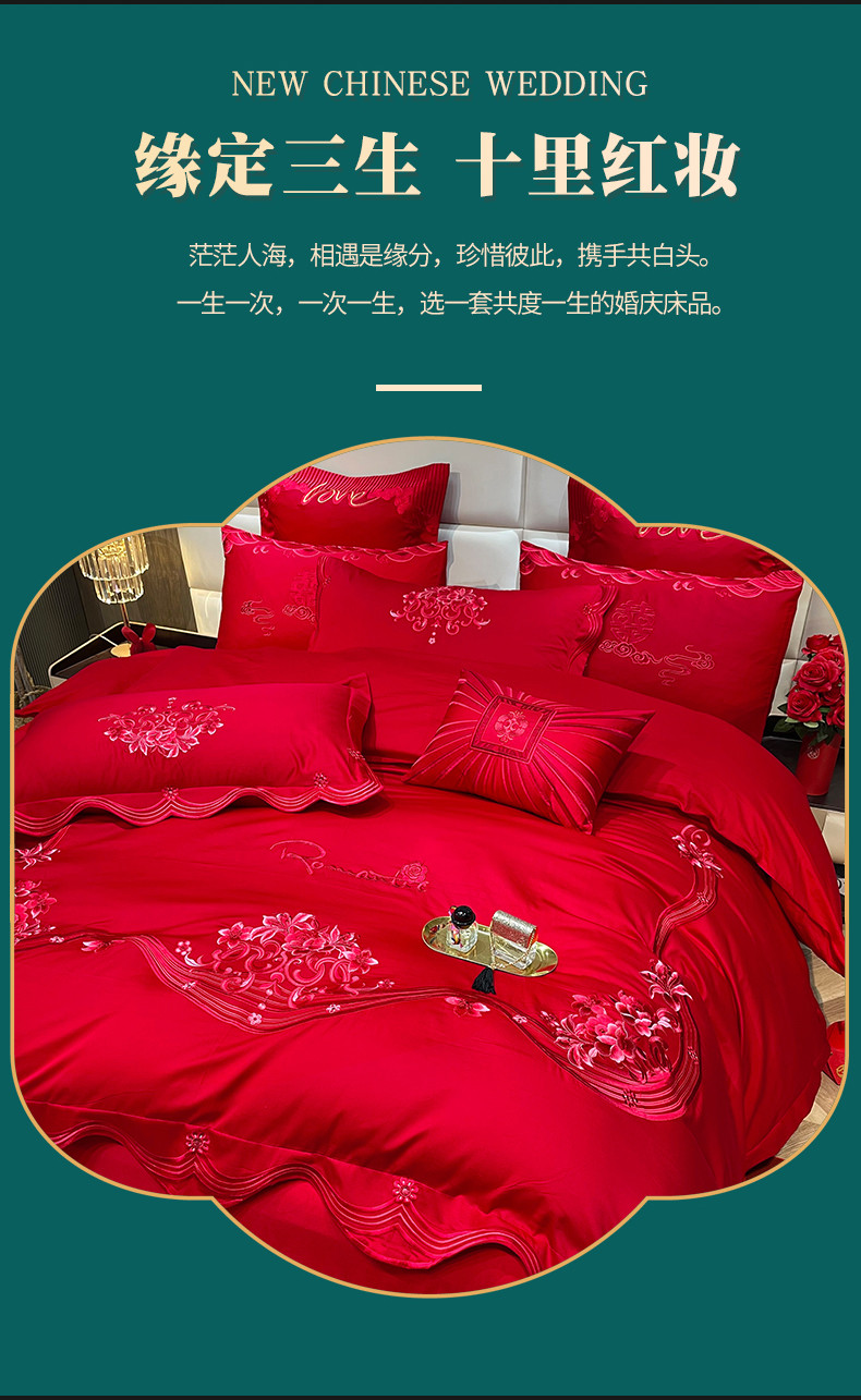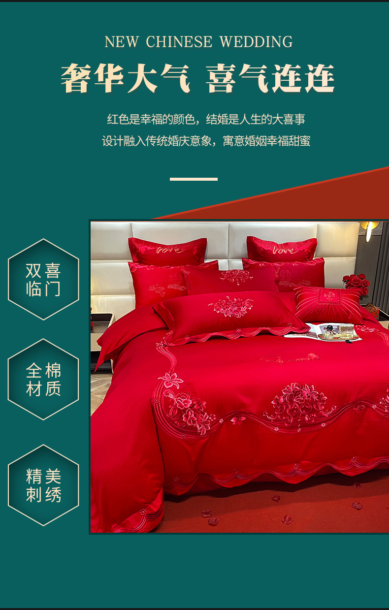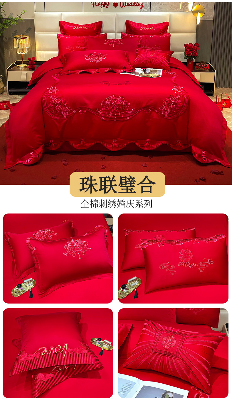 当前位置: 91家纺网 > 商品网购 > 床品套件 > 多件套 > 多件套 > 宏羽纺 2024新款纯棉新中式刺绣婚庆多件套 珠联璧合-红