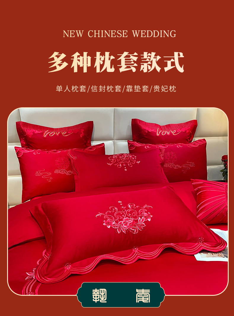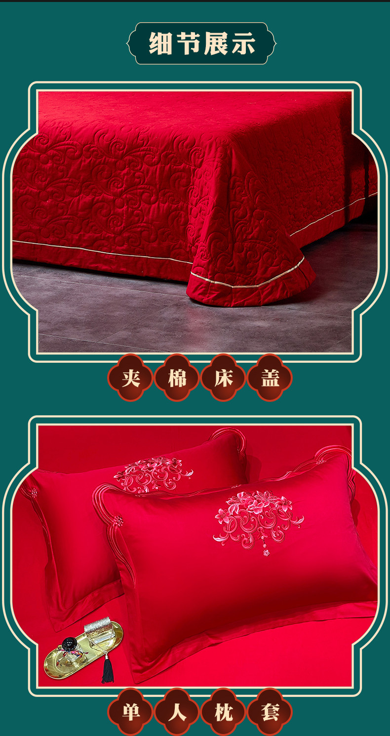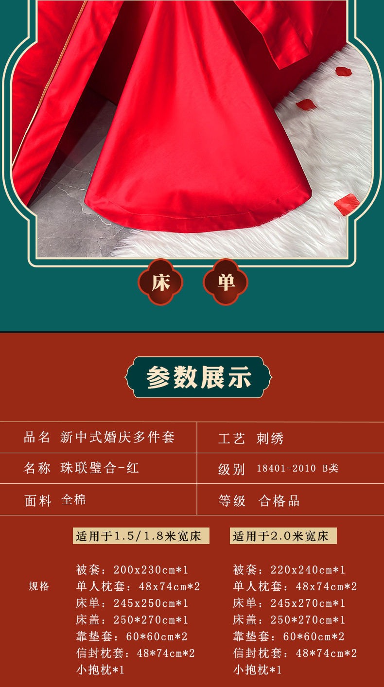 当前位置: 91家纺网 > 商品网购 > 床品套件 > 多件套 > 多件套 > 宏羽纺 2024新款纯棉新中式刺绣婚庆多件套 珠联璧合-红