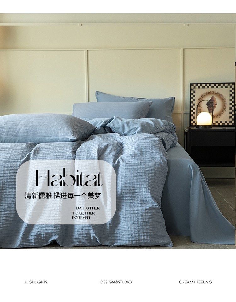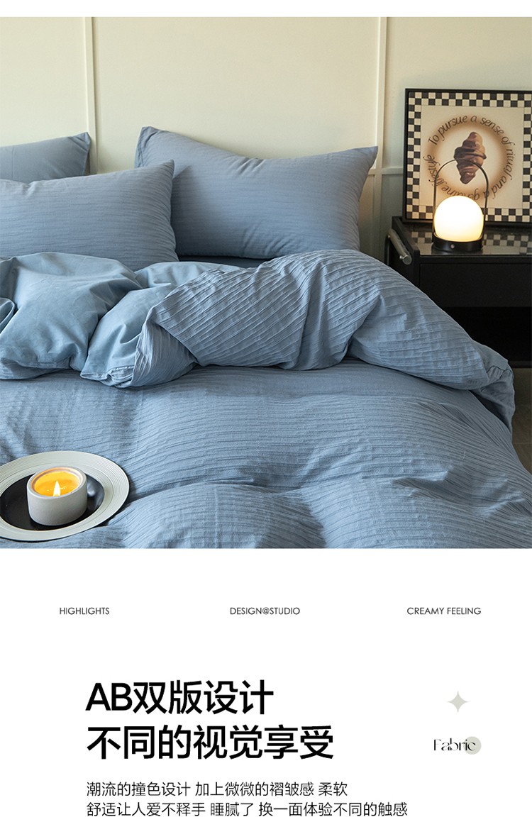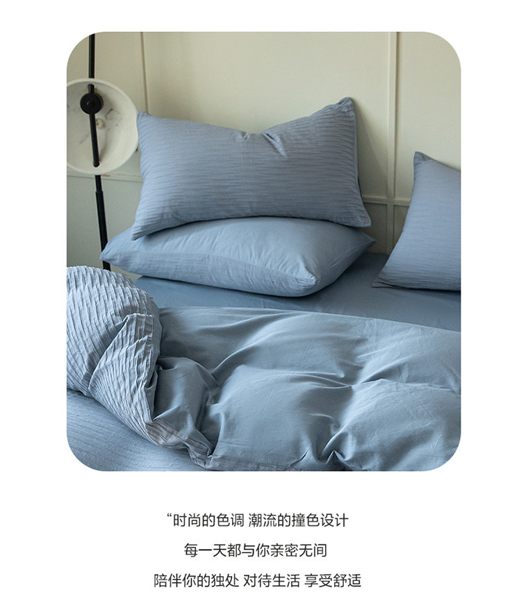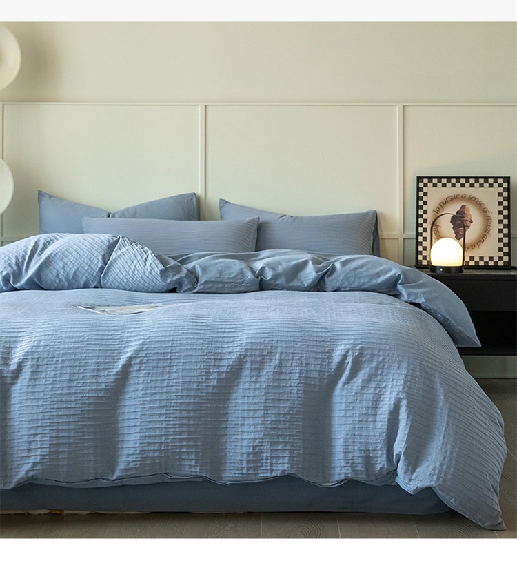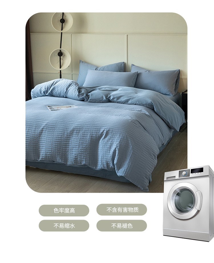 雅居纺2023新款系全棉泡泡纱四件套 泡泡纱-海天蓝