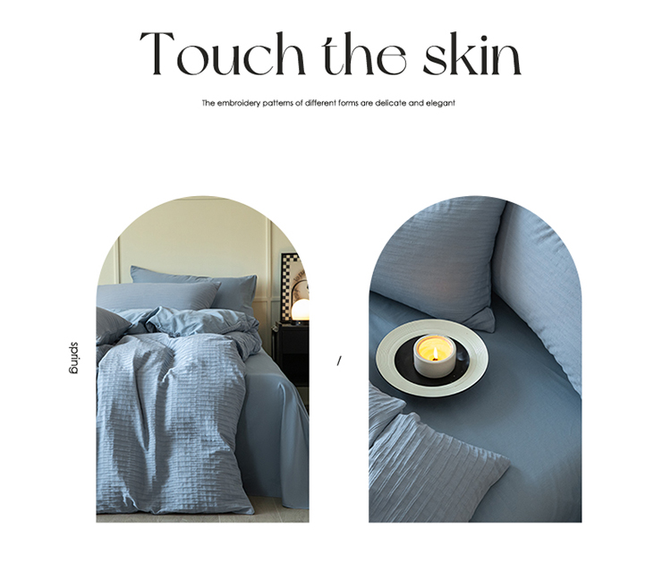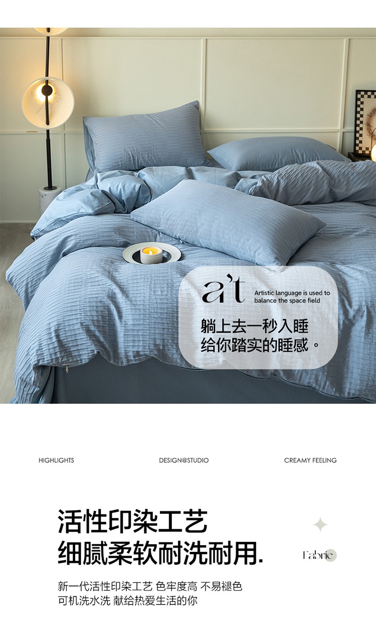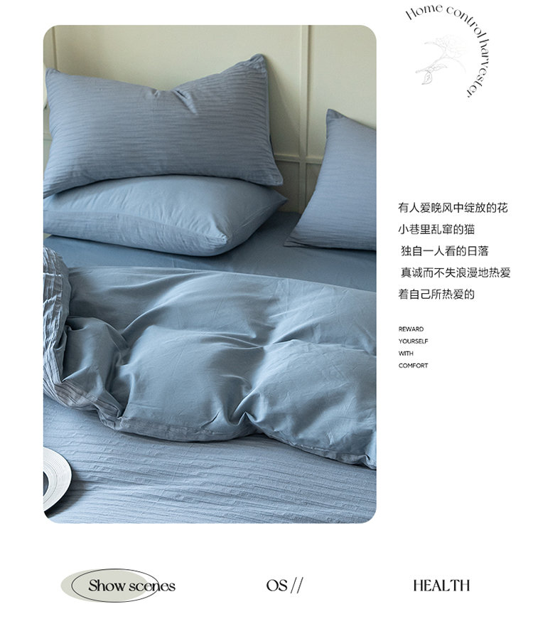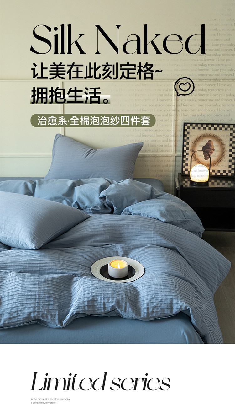 雅居纺2023新款系全棉泡泡纱四件套 泡泡纱-海天蓝