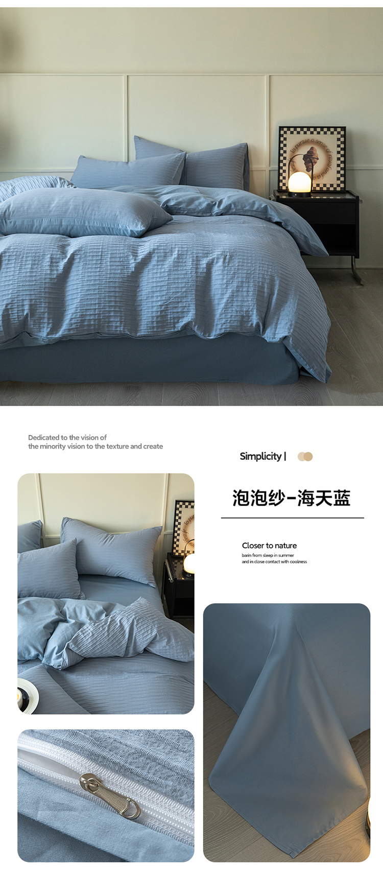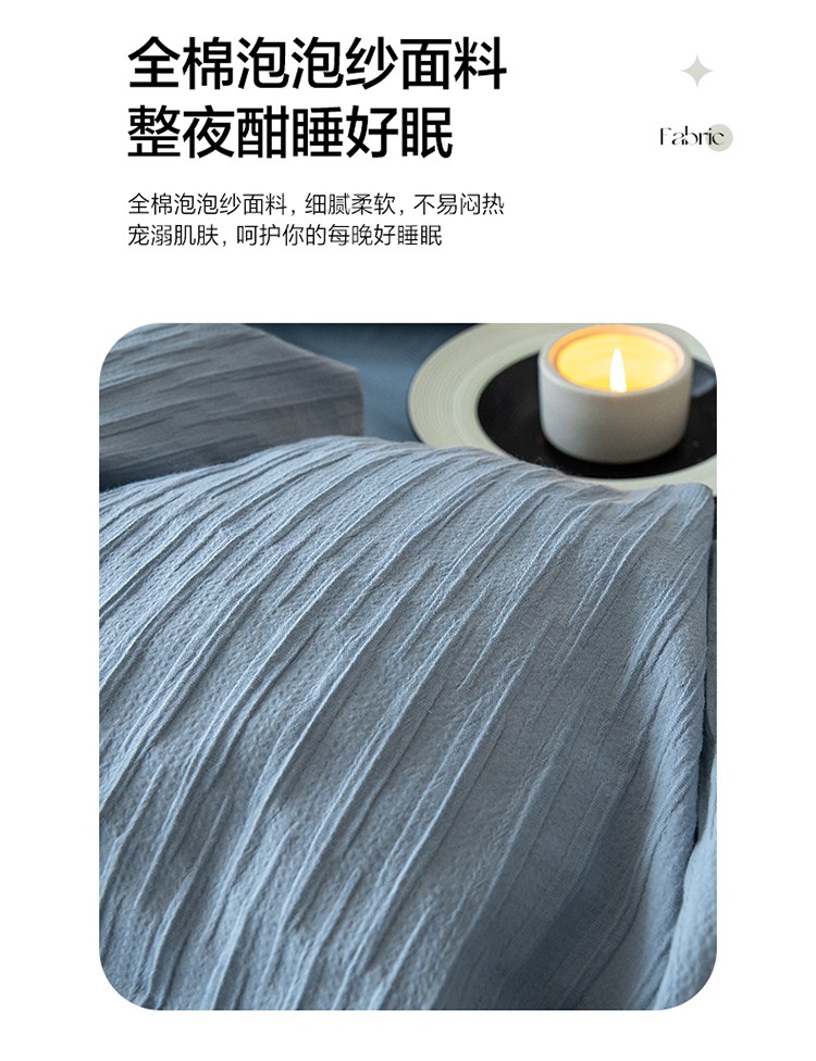 商品名称:雅居纺2023新款系全棉泡泡纱四件套 泡泡纱-海天蓝