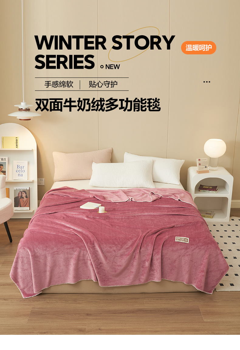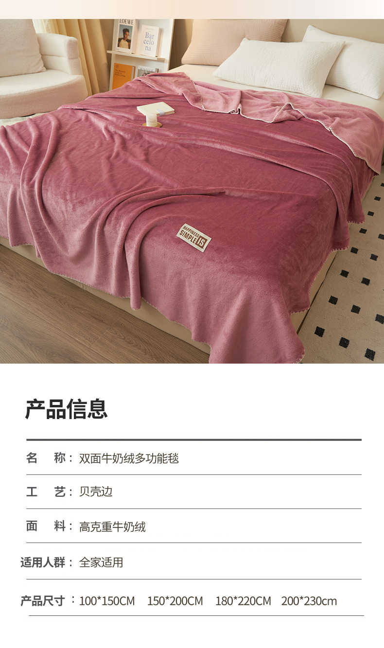 商品名称:畅销被业 2024新款双面牛奶绒多功能毛毯毯子 豆沙